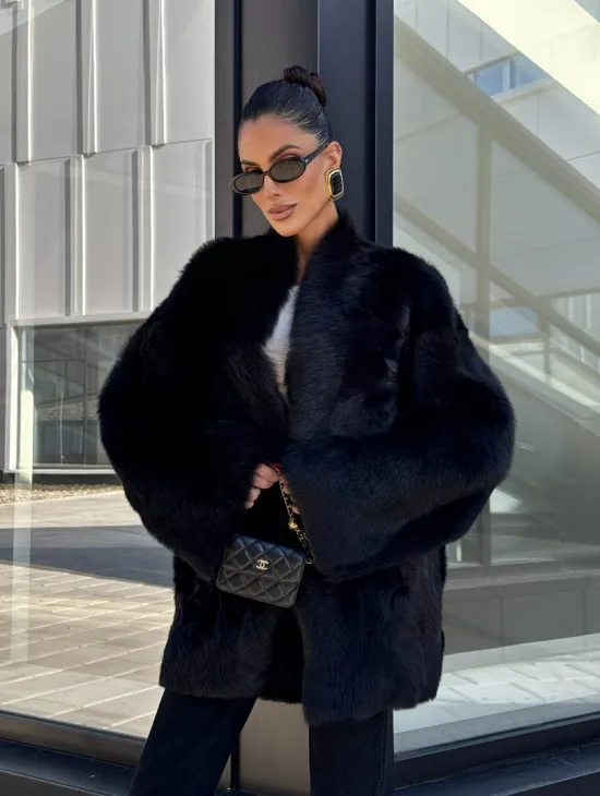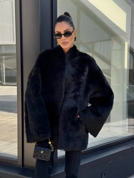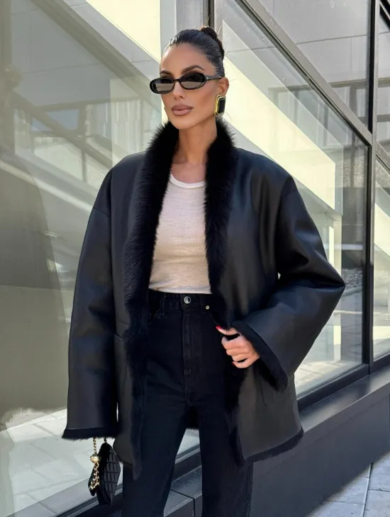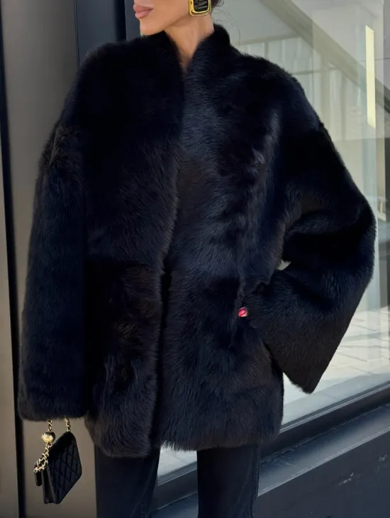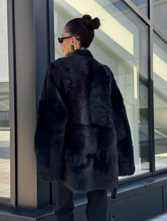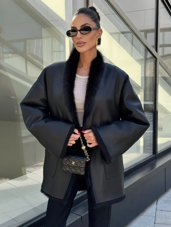 Двухсторонняя черная шуба-дублёнка из итальянской тосканы