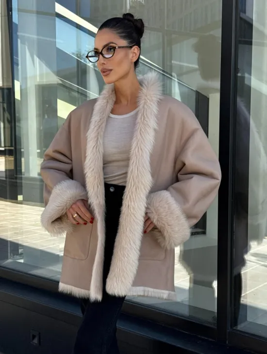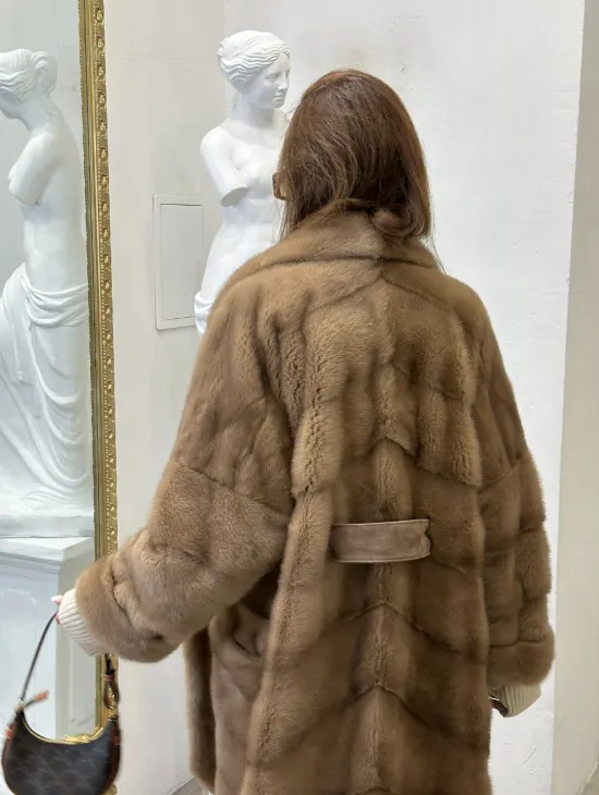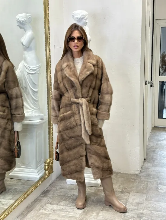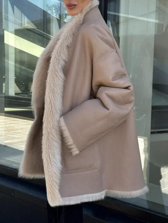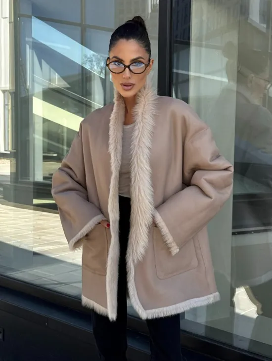 Женская двухсторонняя дубленка-шуба из меха итальянской тосканы