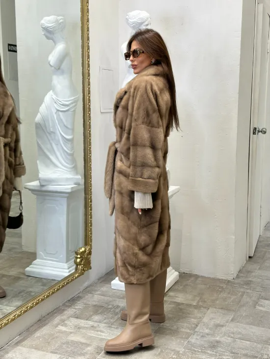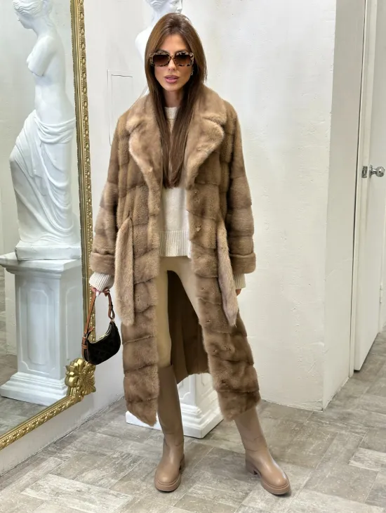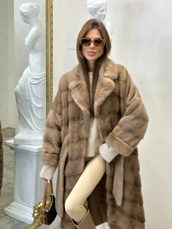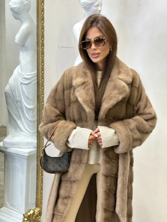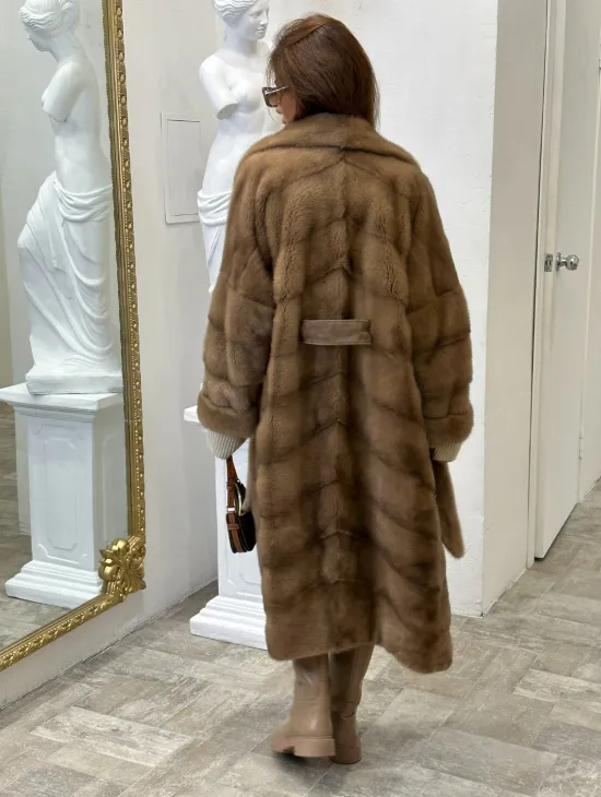Норковый полушубок английский воротник мех NAFA - цвет пастель