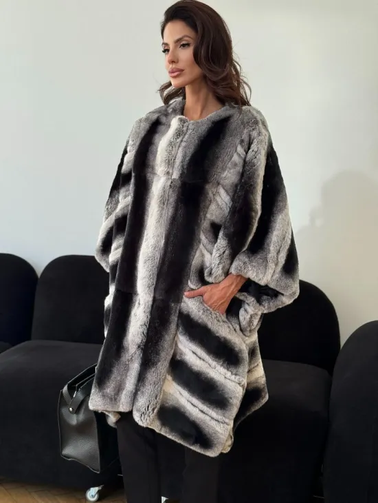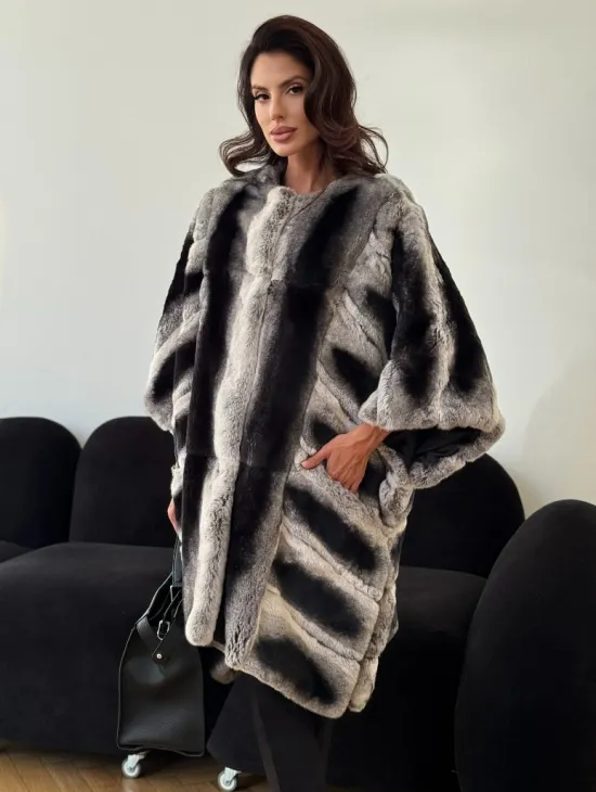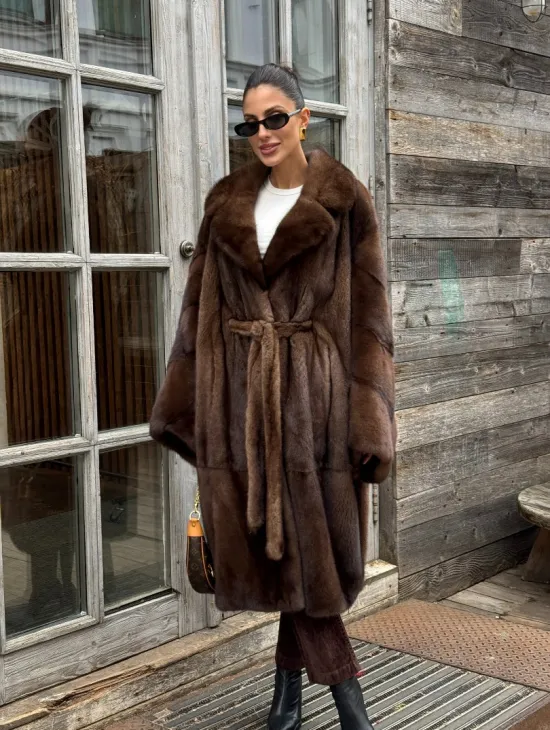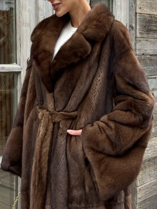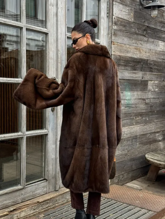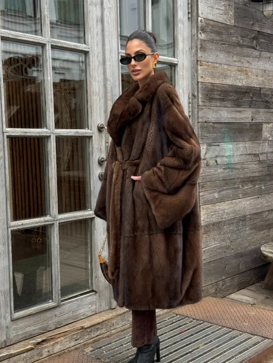 Шуба - кимоно Chic Fashion из норки орех с английским воротником