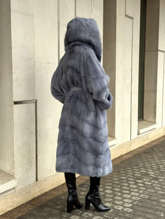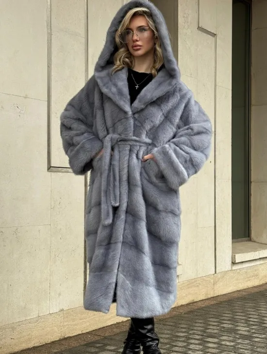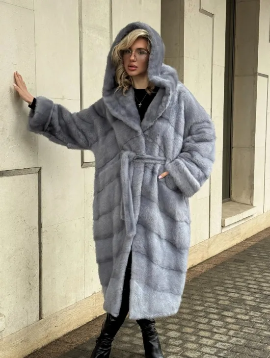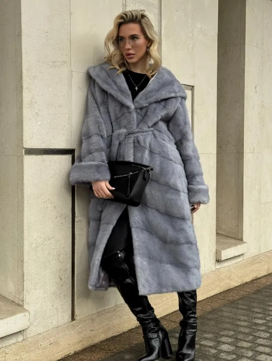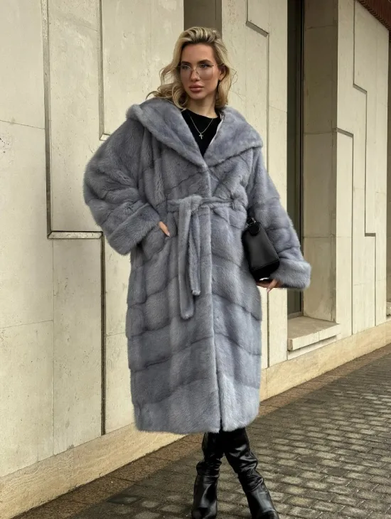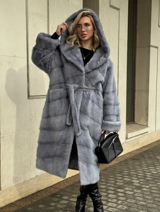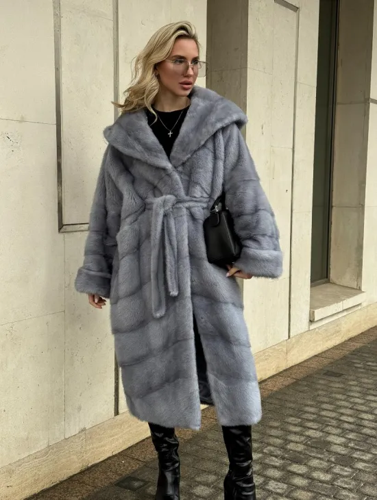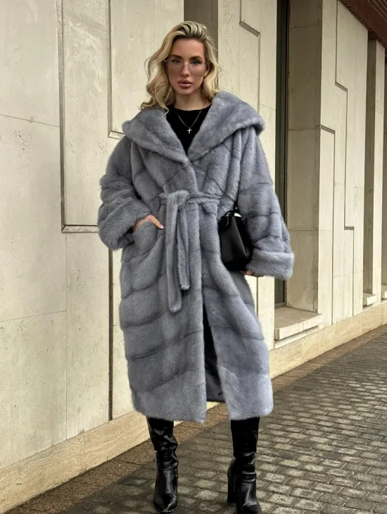 Норковая шуба больших размеров в стиле Бохо с капюшоном под рысь