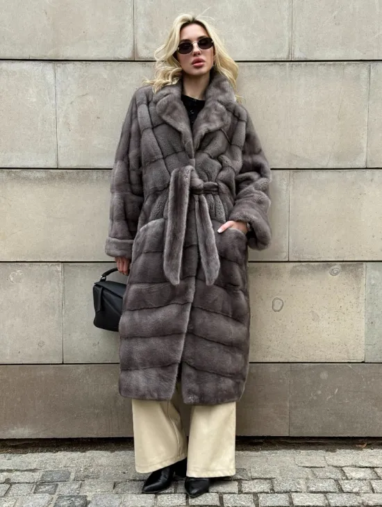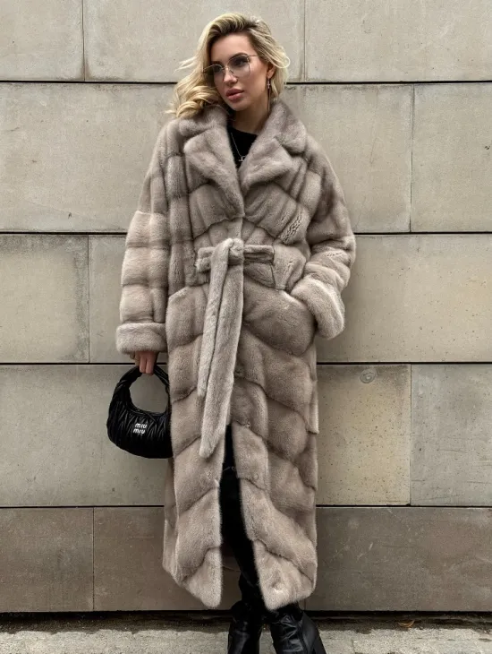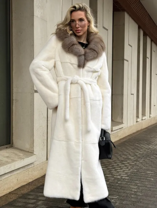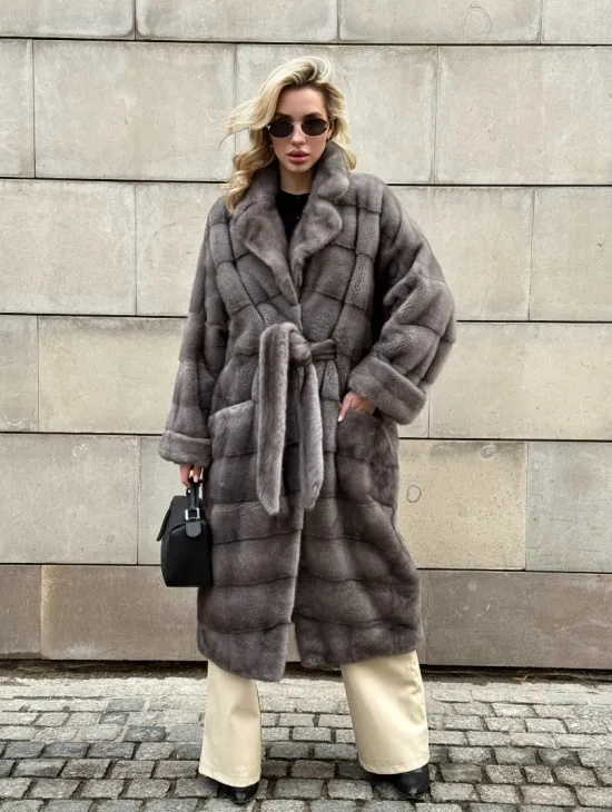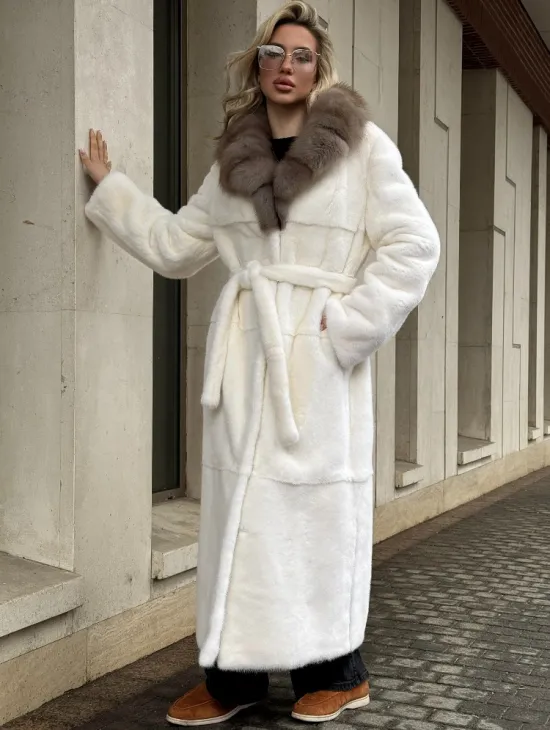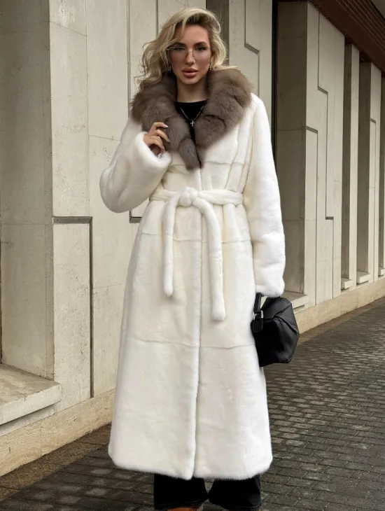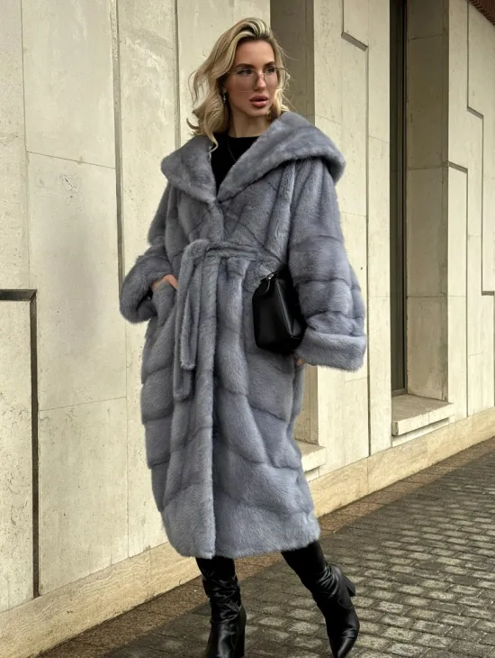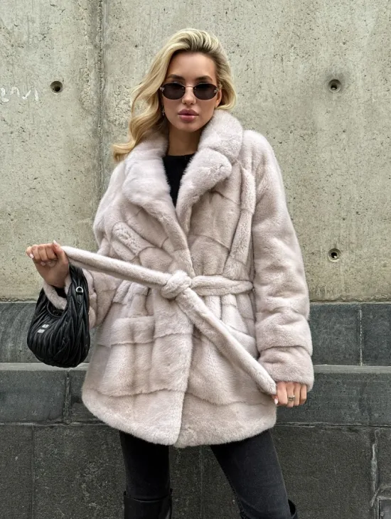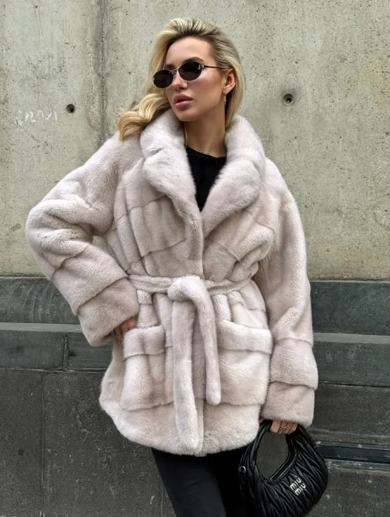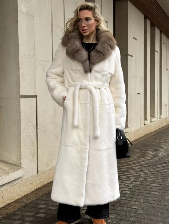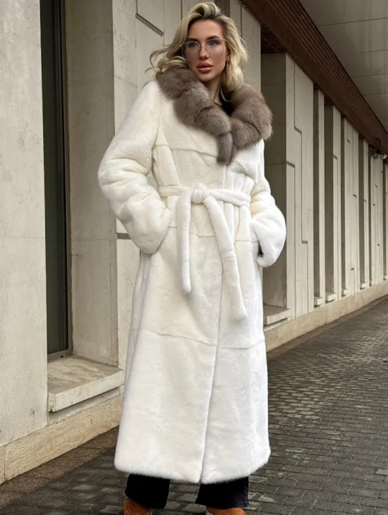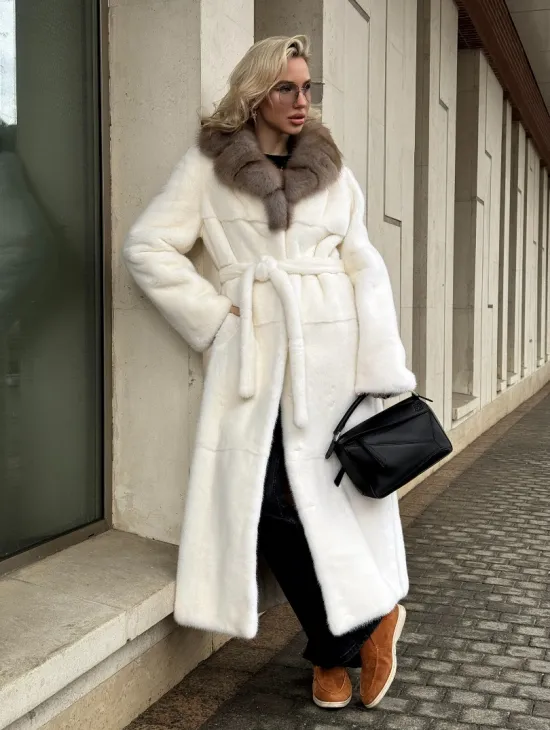 Шуба - кимоно под пояс из меха аукционной норки с английским воротником