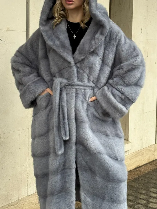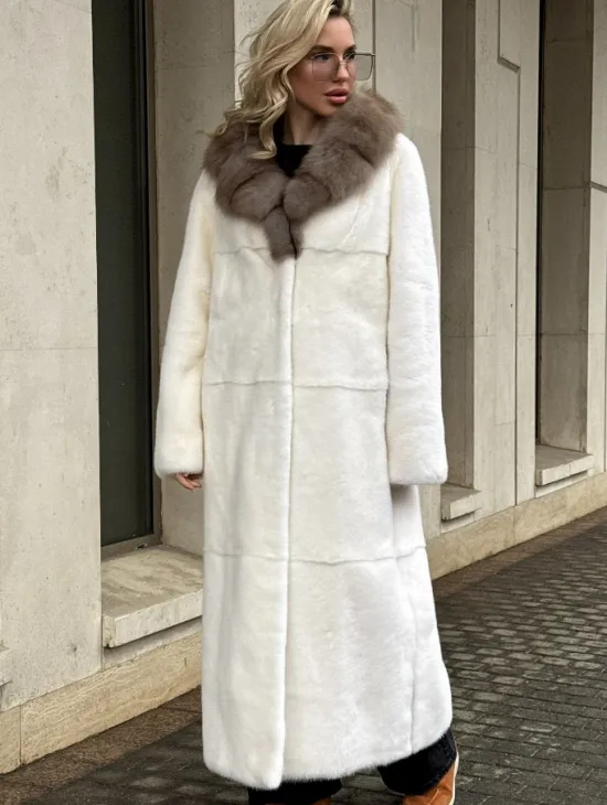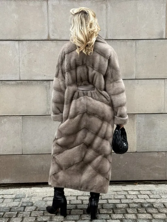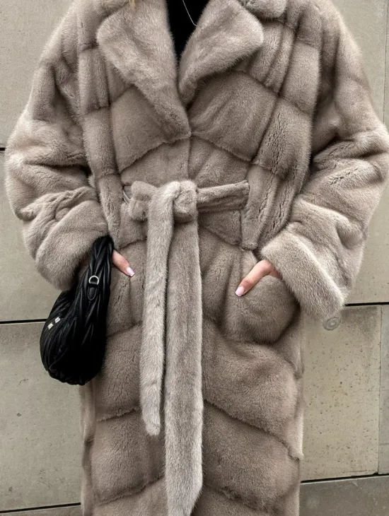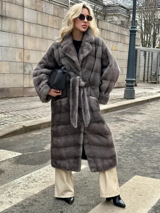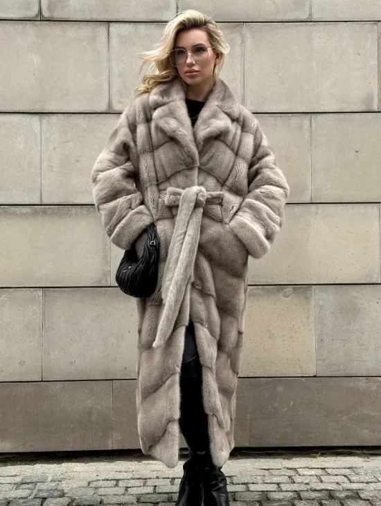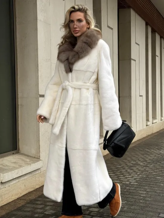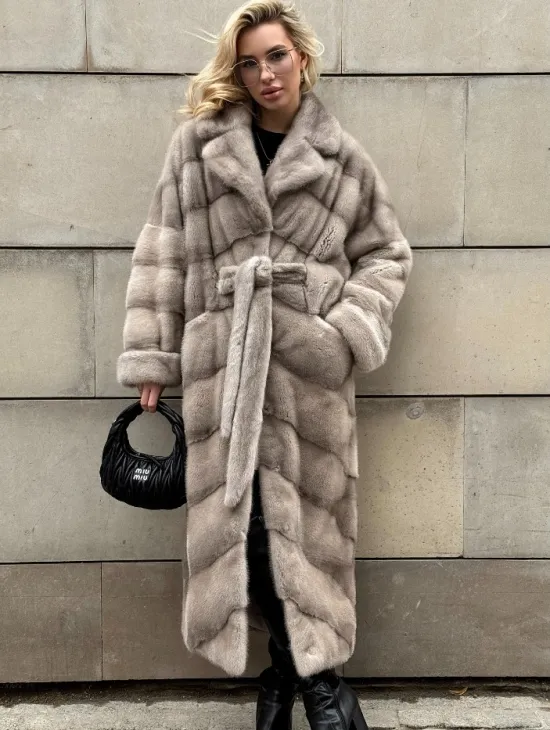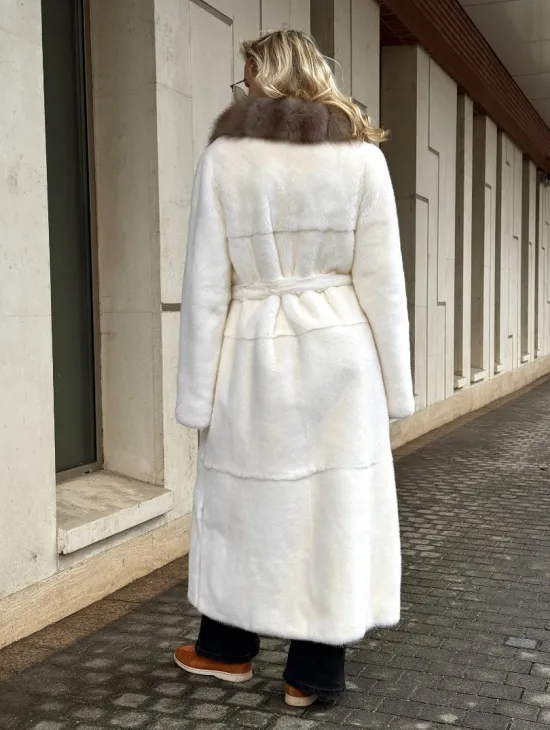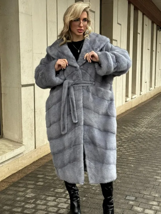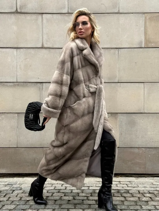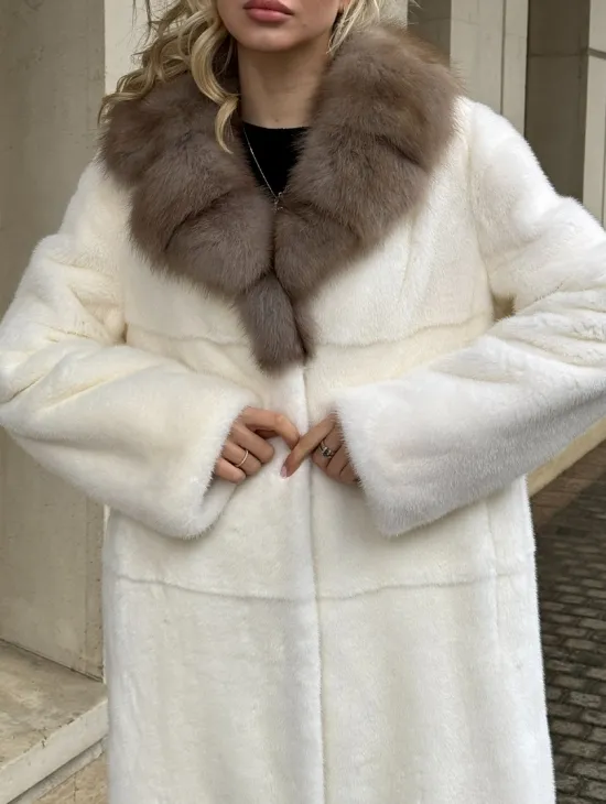 Шуба - кимоно под пояс из меха аукционной норки с английским воротником