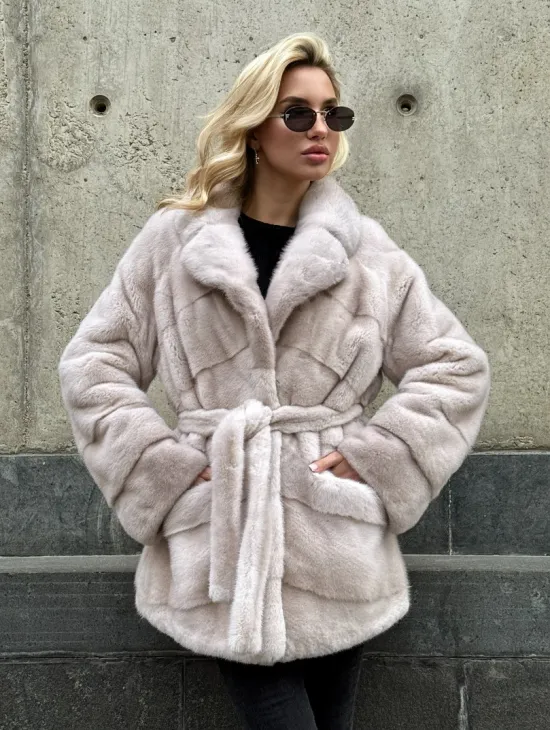 Светлый норковый полушубок PREMIUM FUR с английским воротником