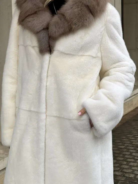 Полушубок норковый автоледи с отделкой из чернобурки на капюшоне