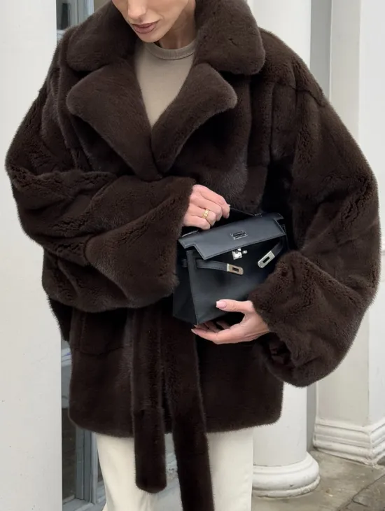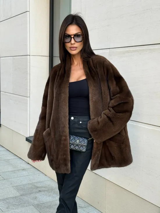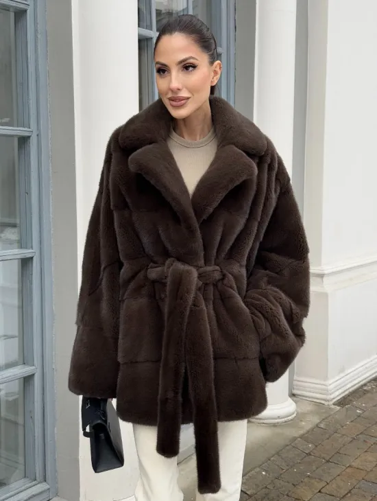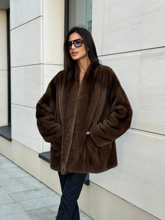 Стильная шубка из меха норки SAGA FURS в цвете соболь