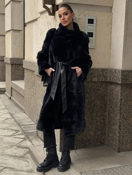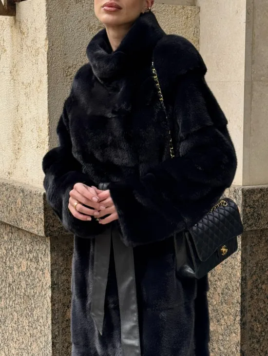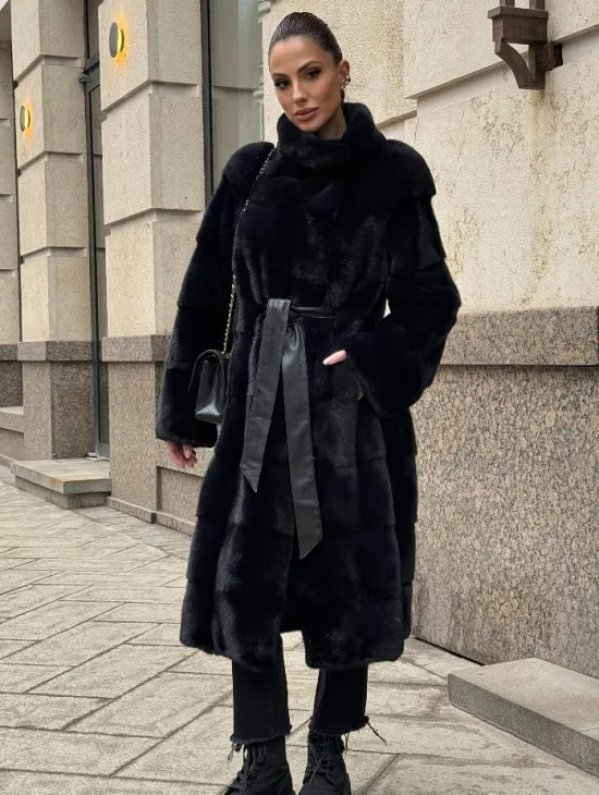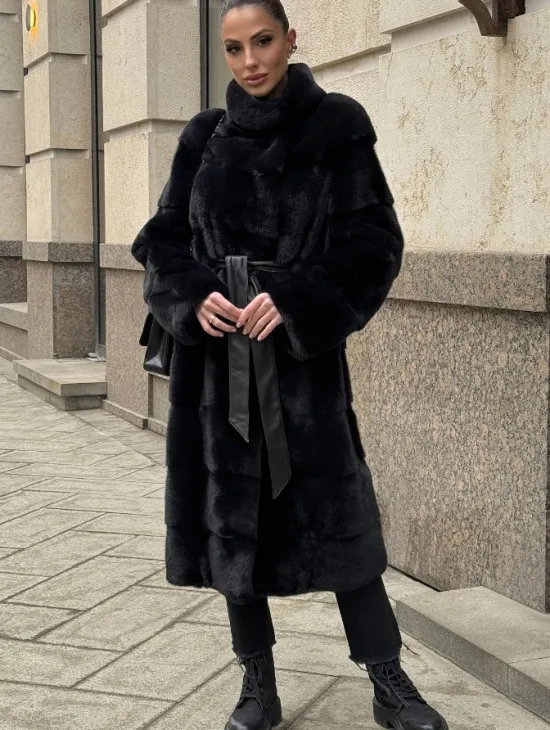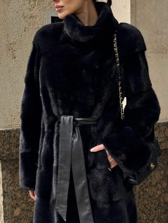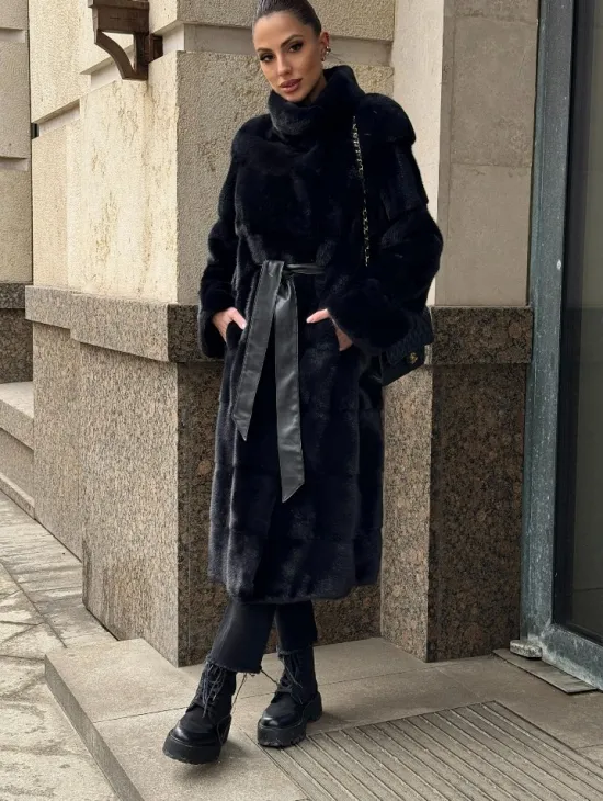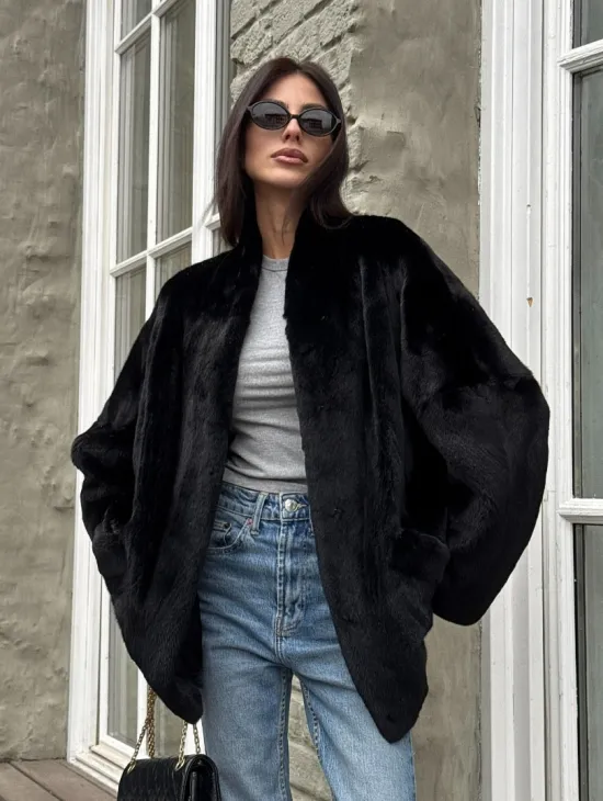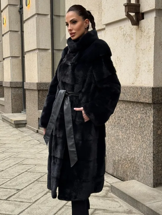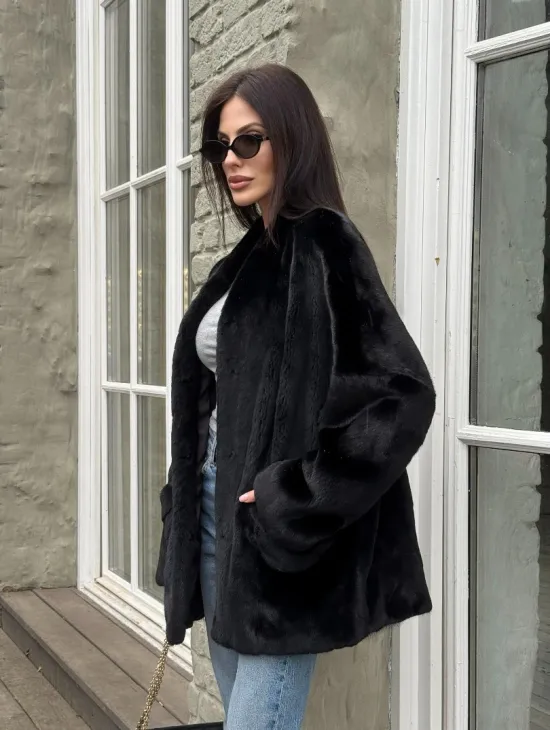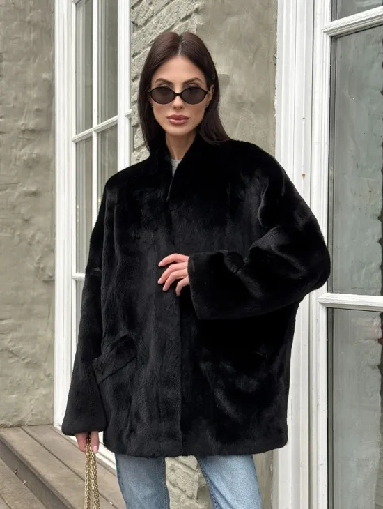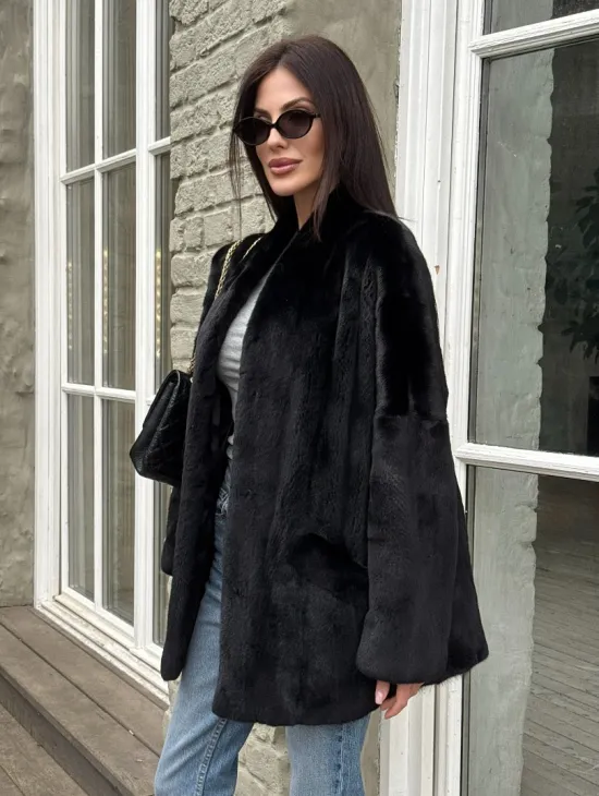 Полушубок норковый с воротником из куницы - фасон летуча мышь
