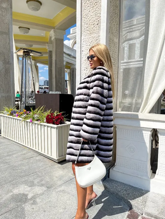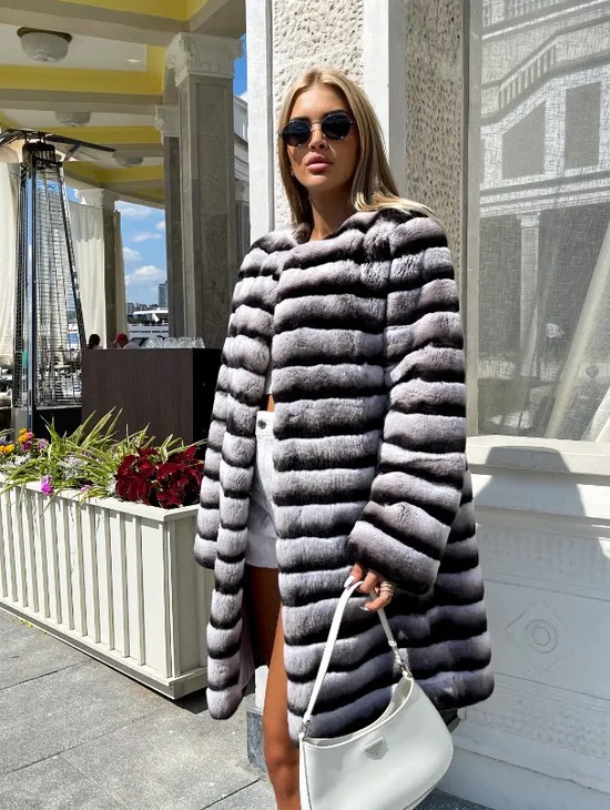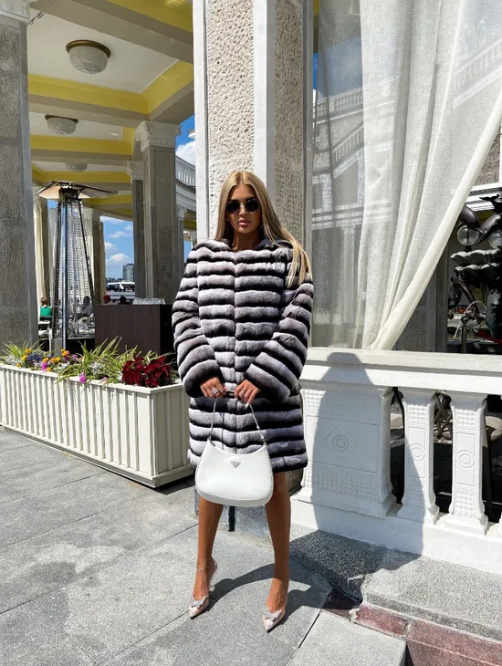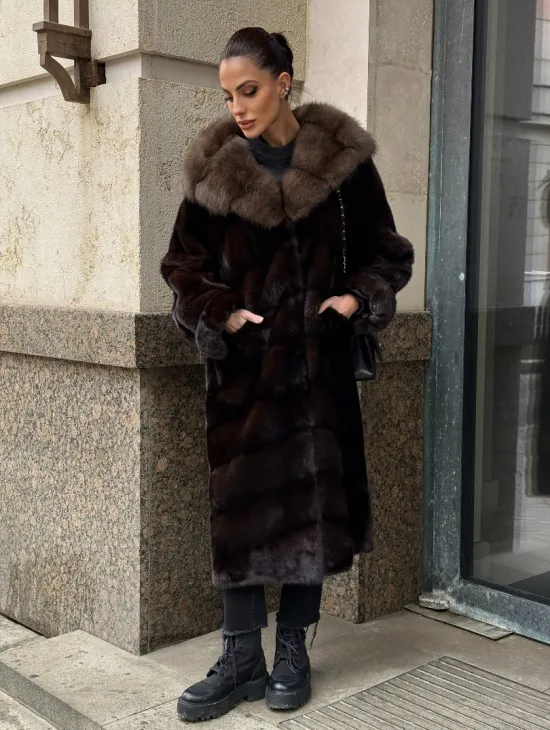 Удлиненная норковая шуба с капюшоном куница, цвет горький шоколад