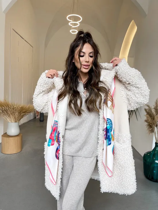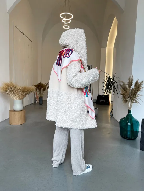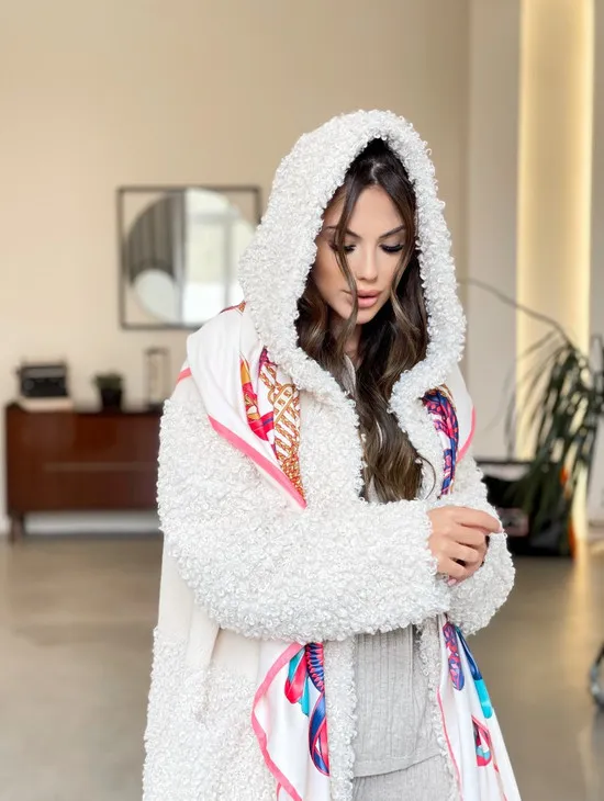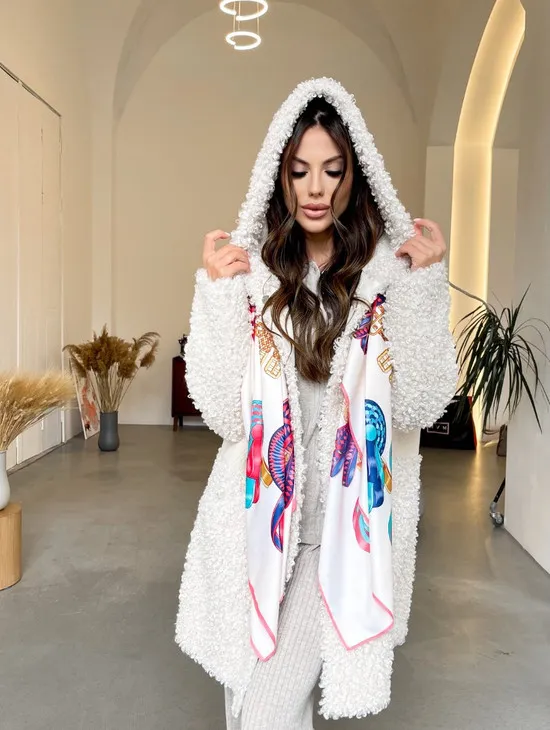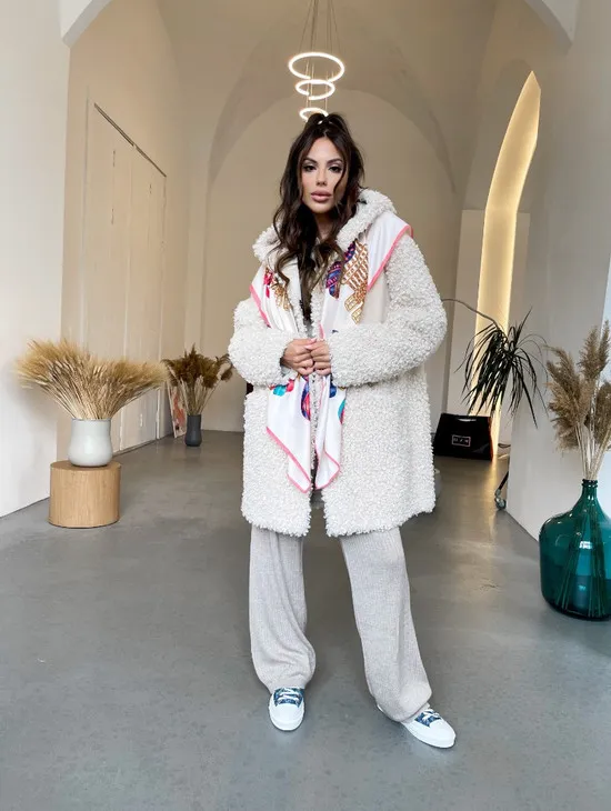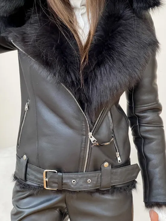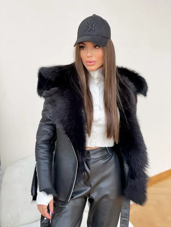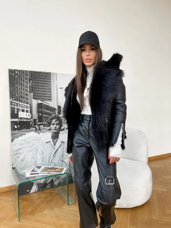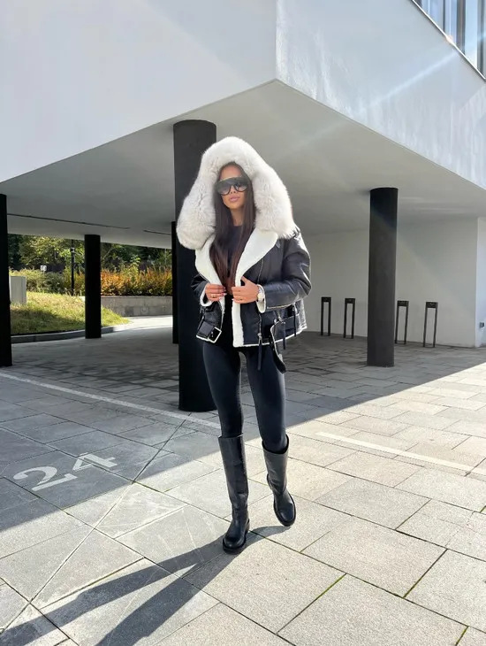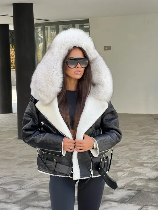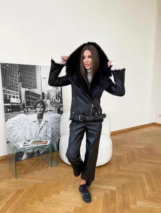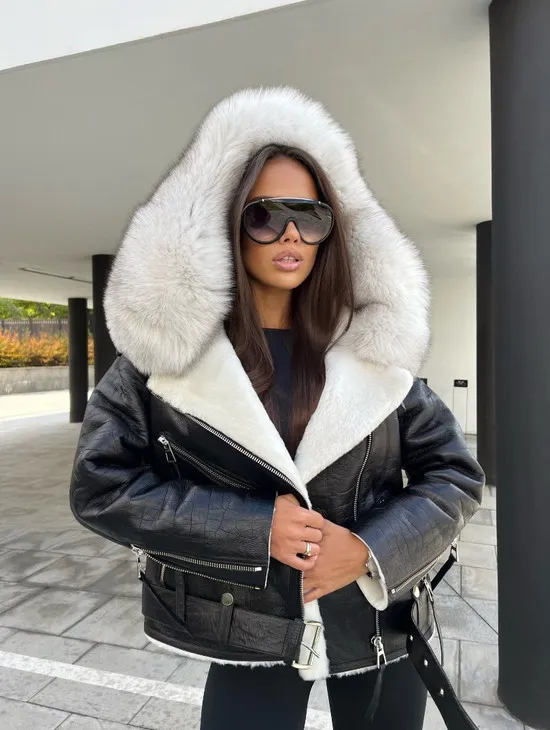 Дублёнка - косуха из натуральной кожи CROCO с капюшоном из финского песца
