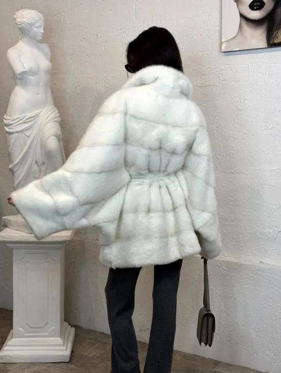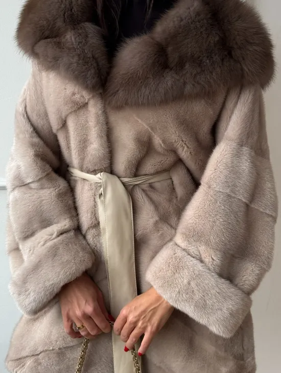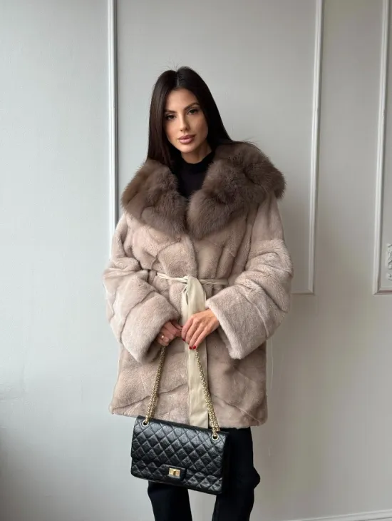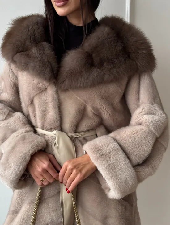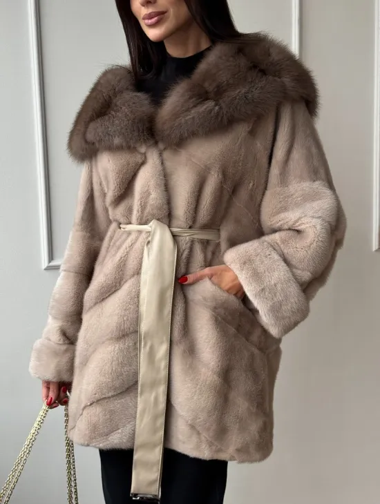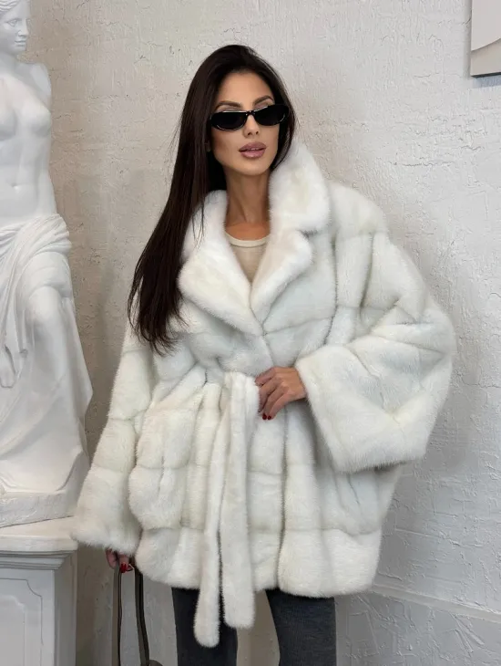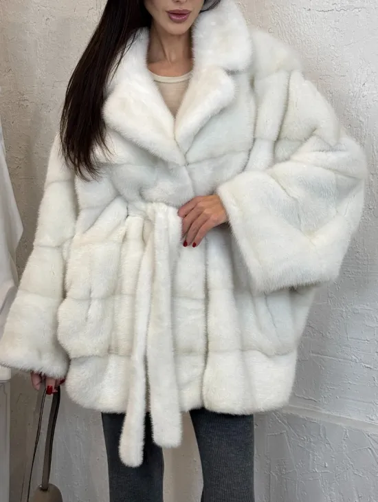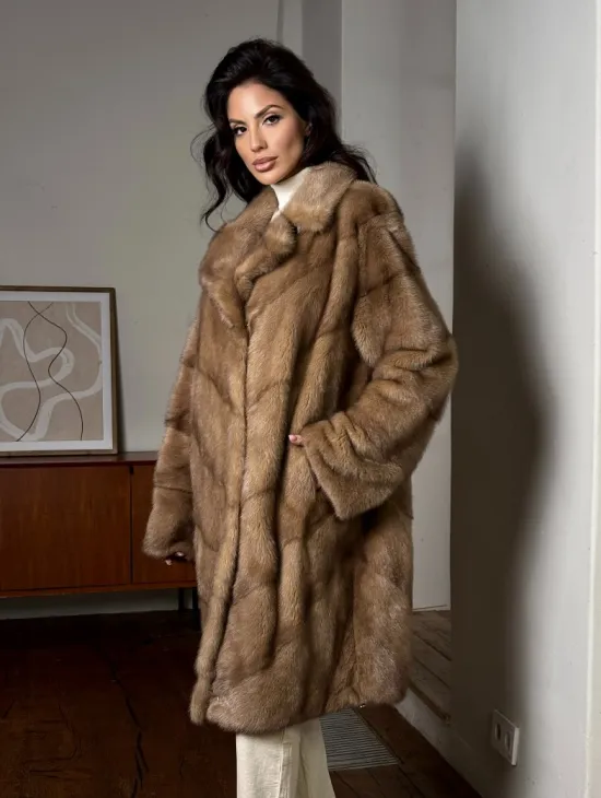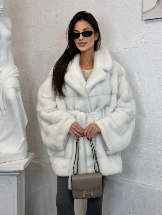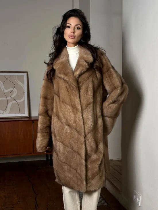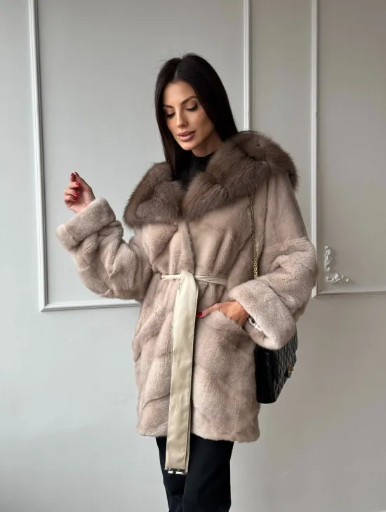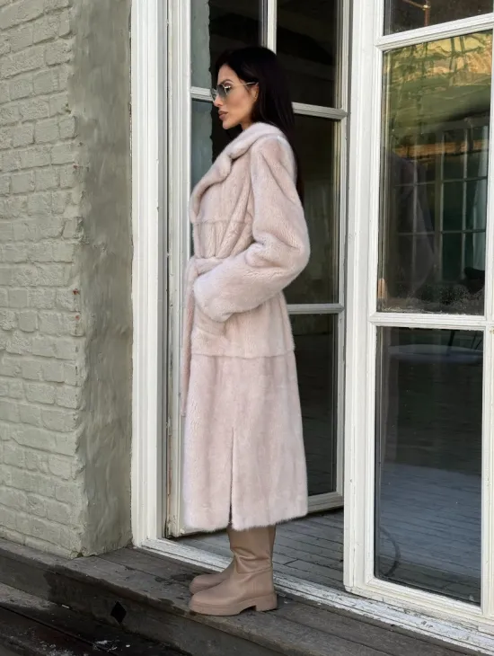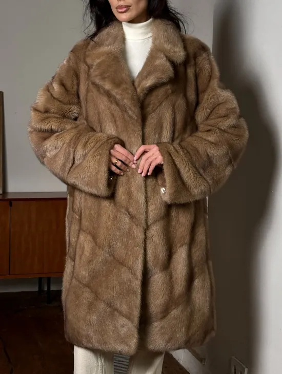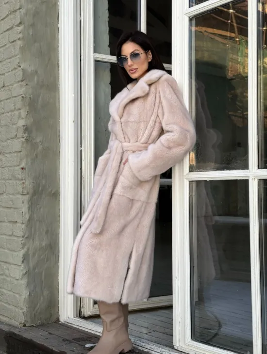 Светлая шуба автоледи из норки Palomino, фасон "Летучая мышь" - английский воротник