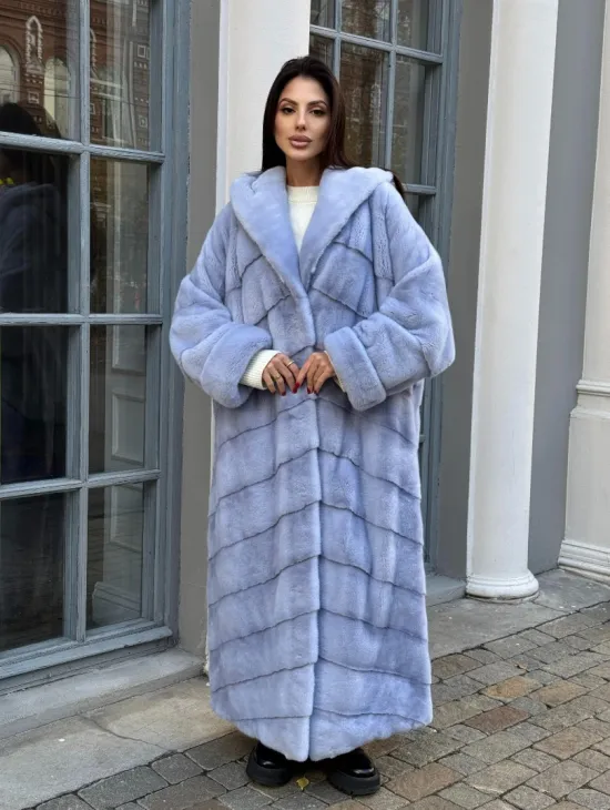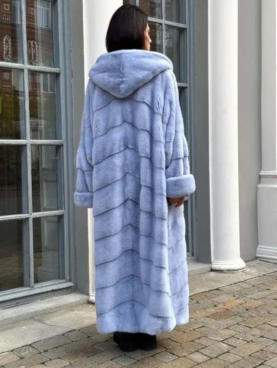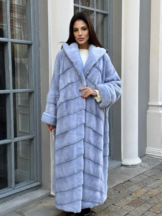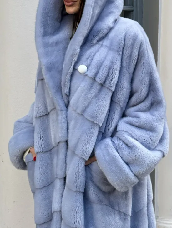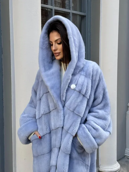 Шуба кимоно LUXURY FASHION из меха голубой норки с капюшоном
