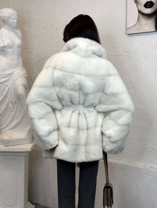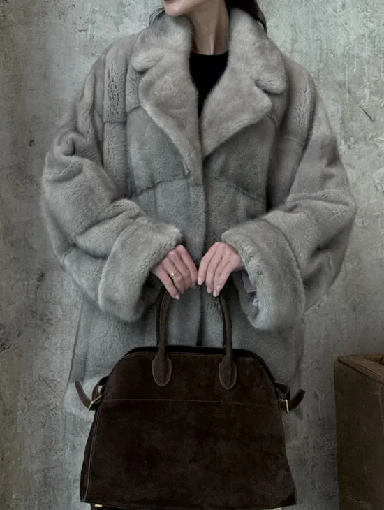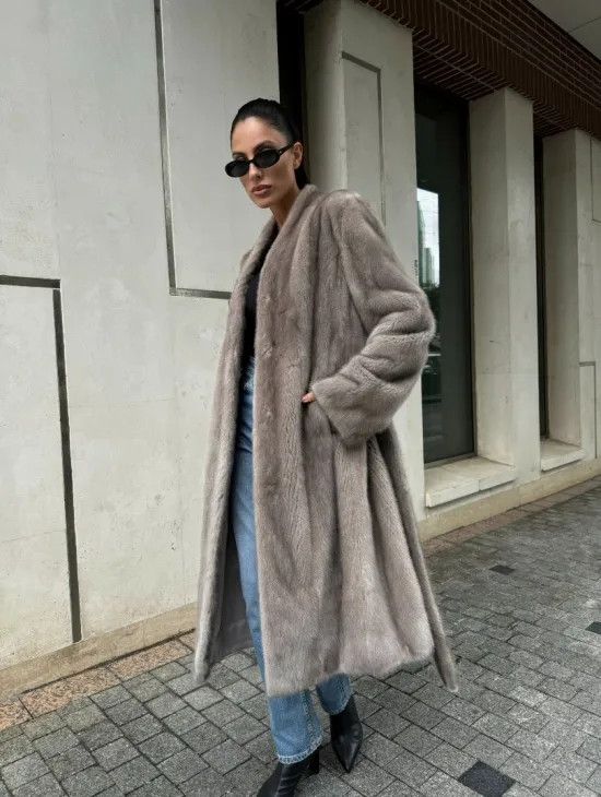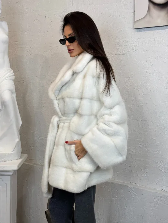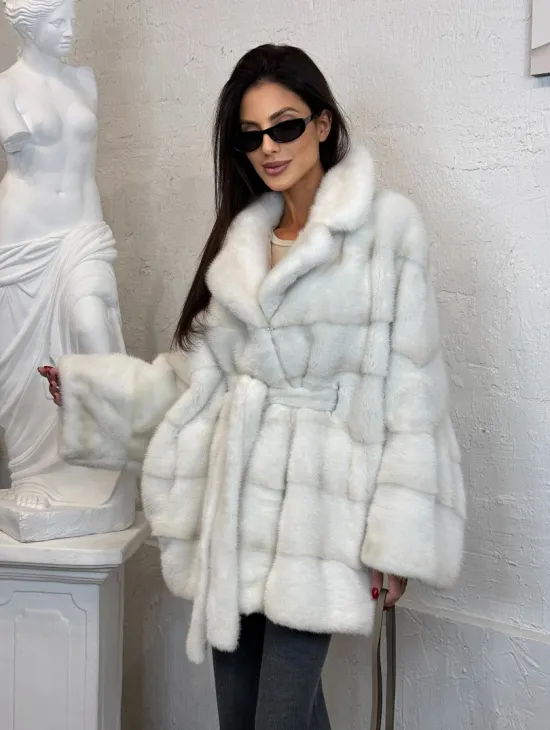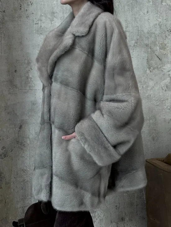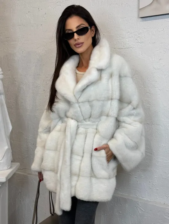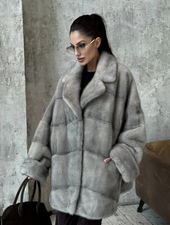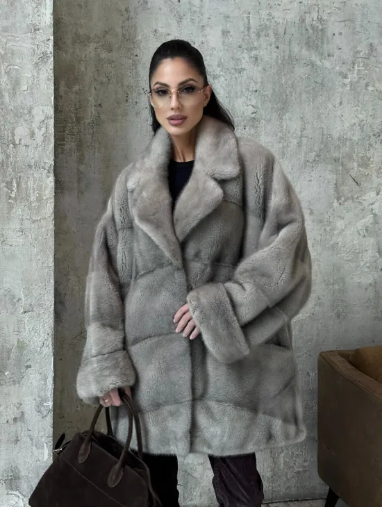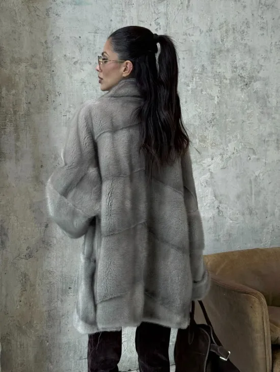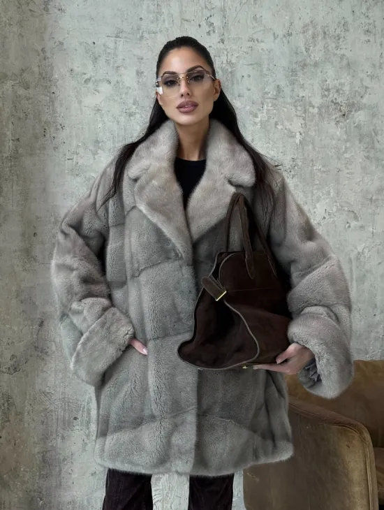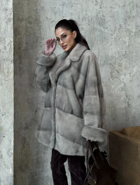 Меховое полупальто из аукционной серо-голубой норки с английским воротником