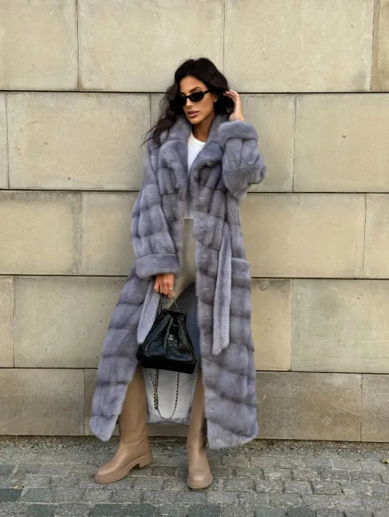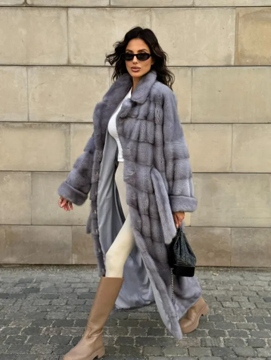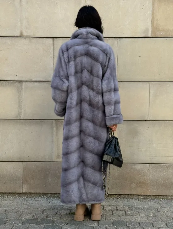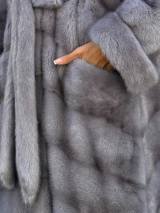 Голубая шуба New Fashion из меха аукционной норки, английский воротник