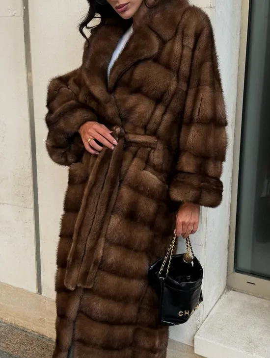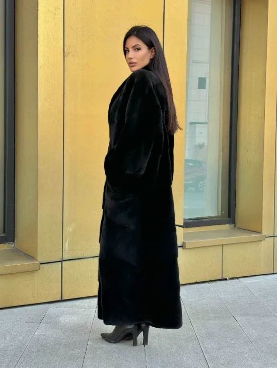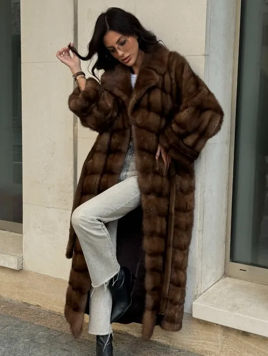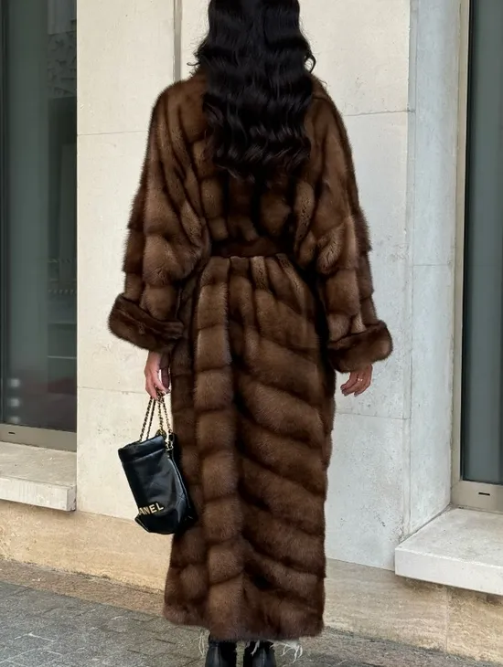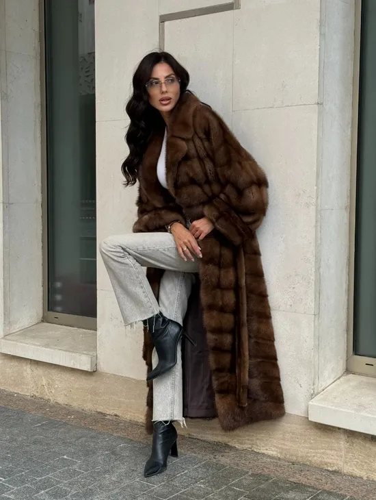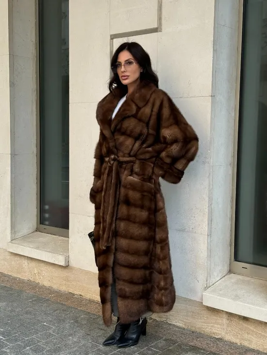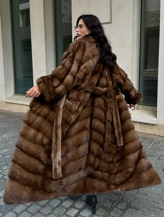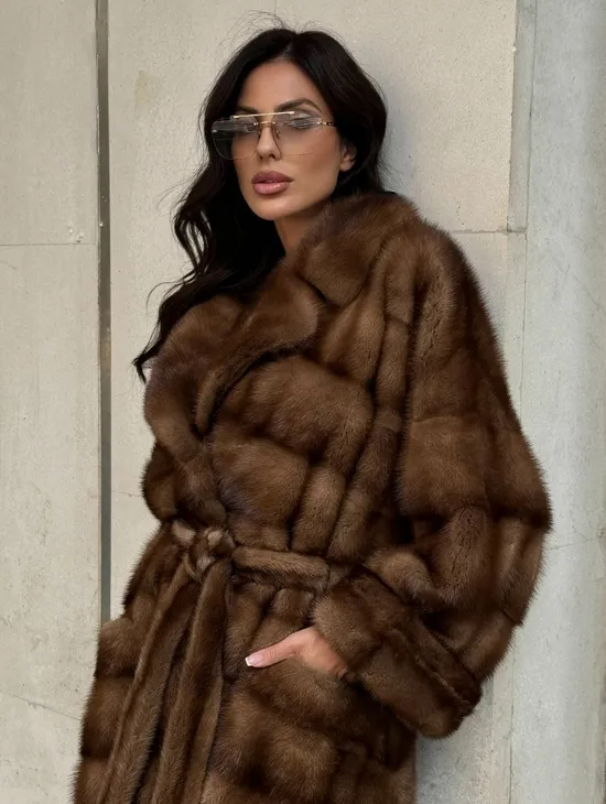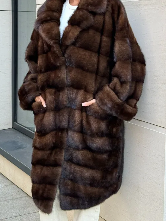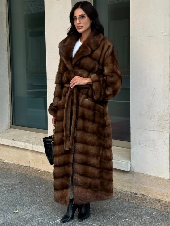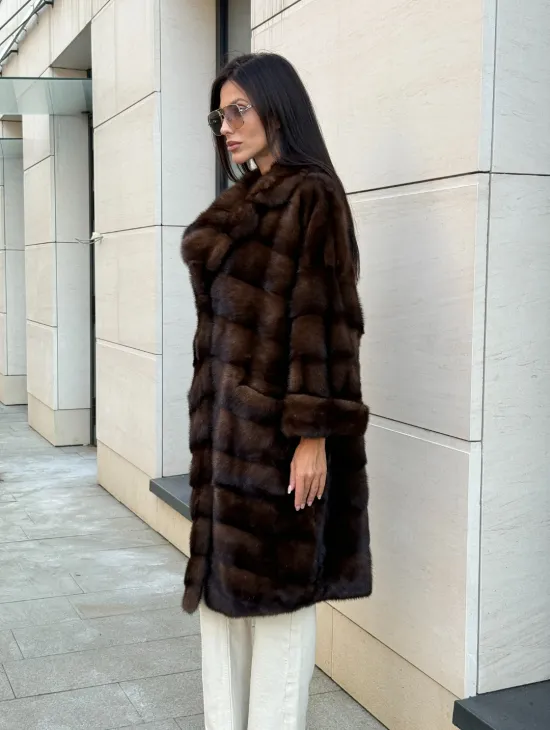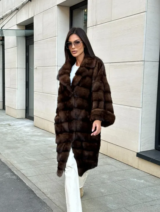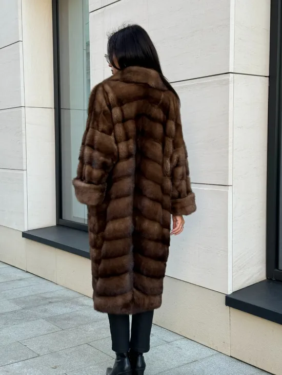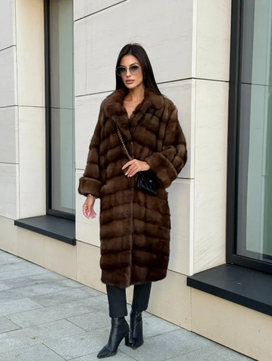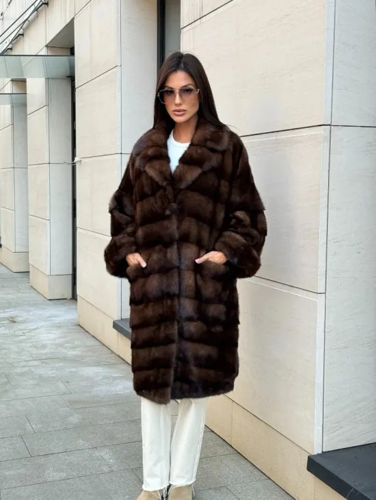 Шуба из меха соболиной норки английский воротник - цвет соболь