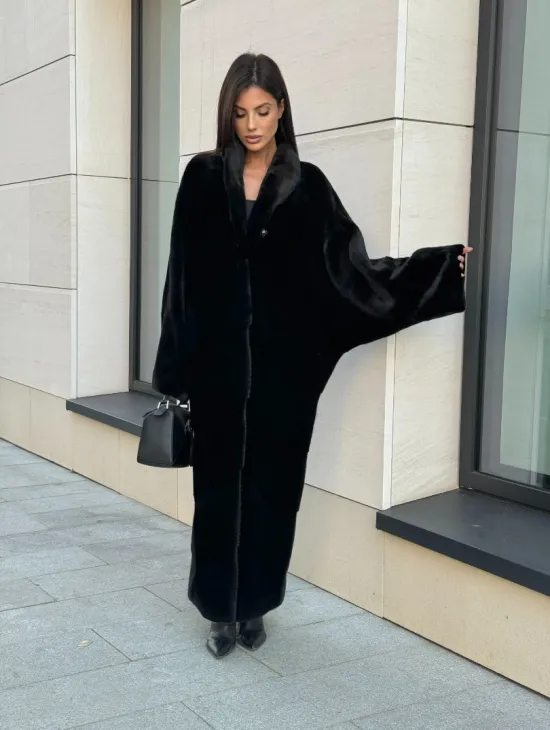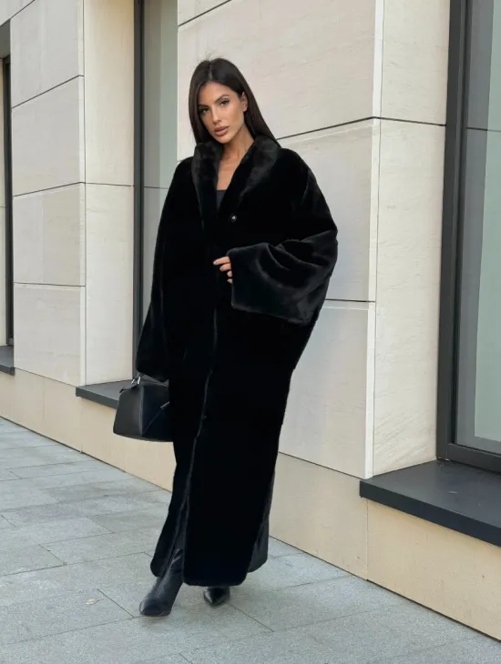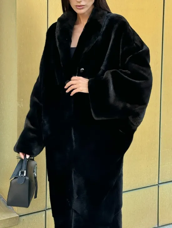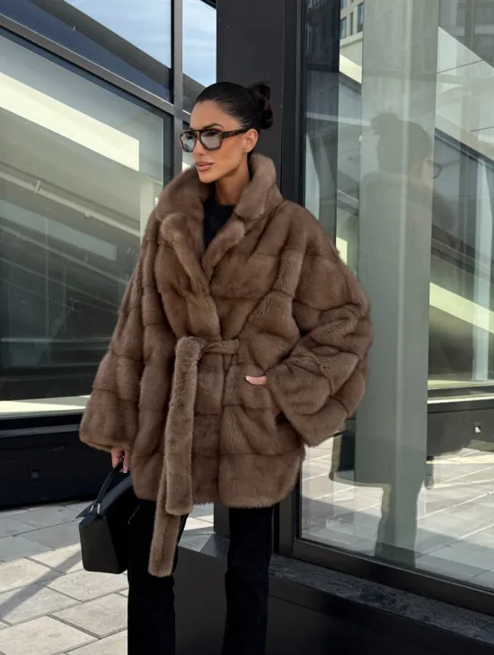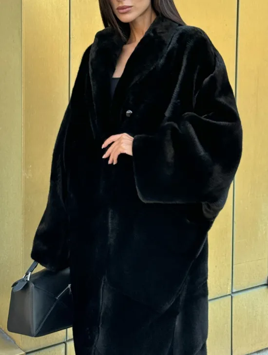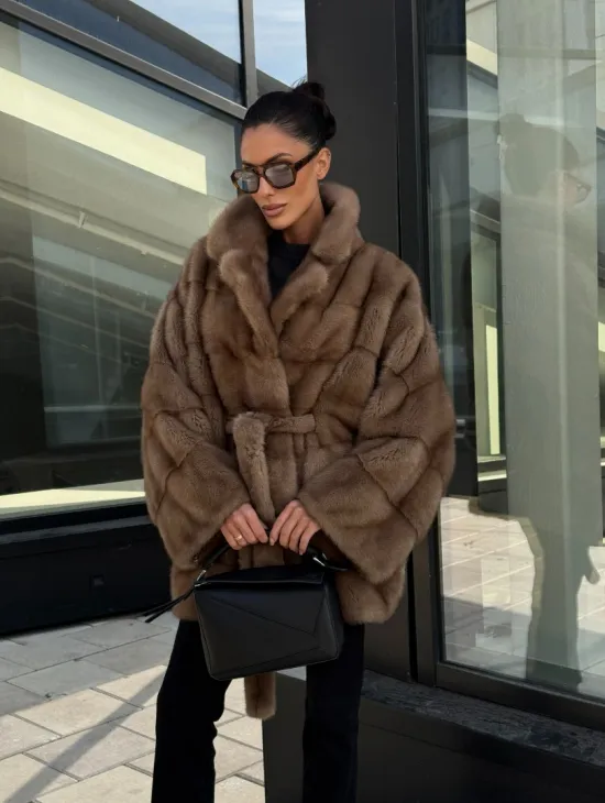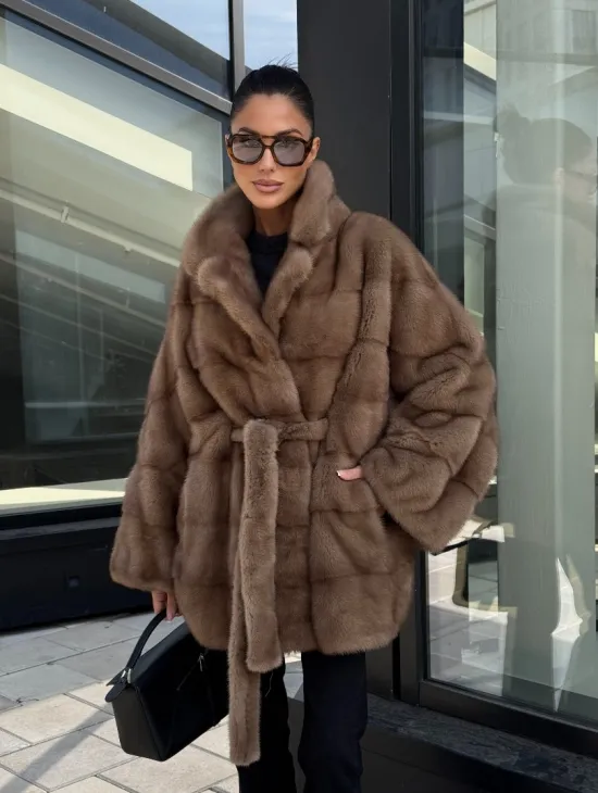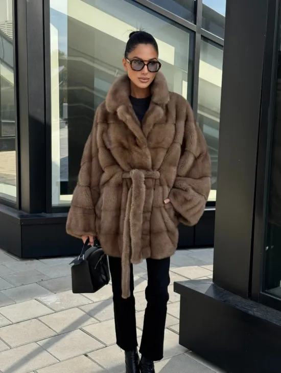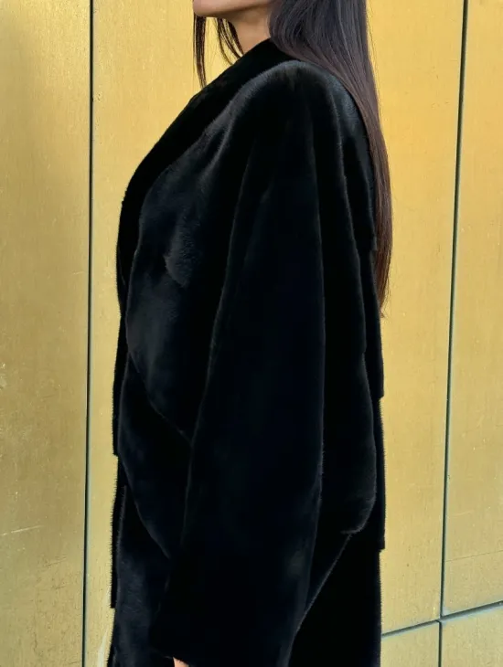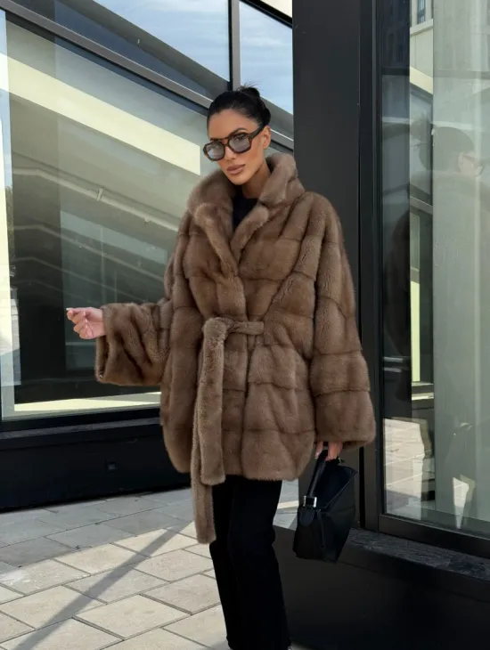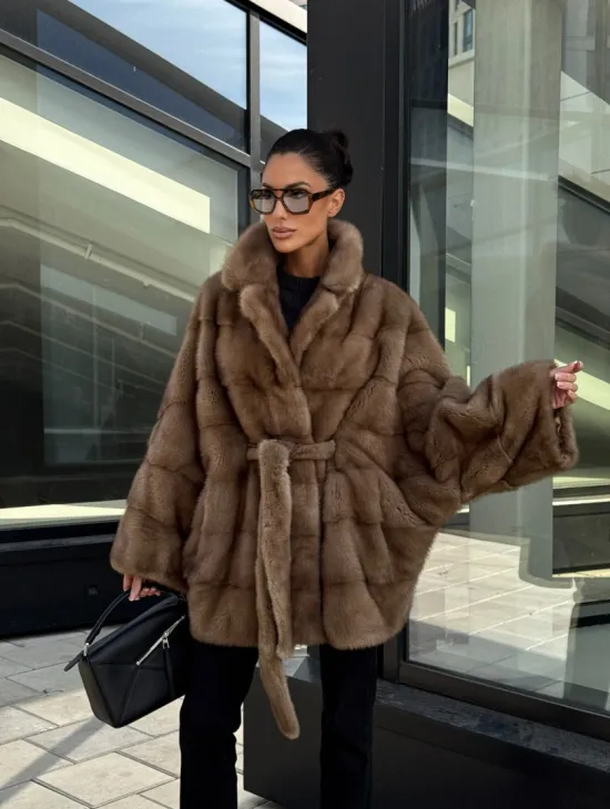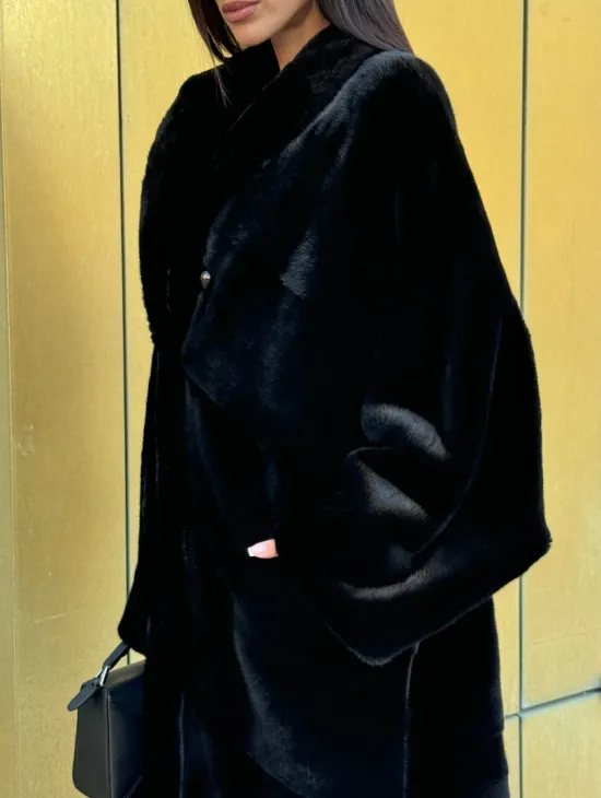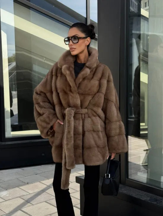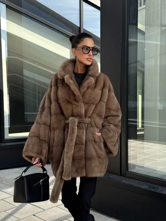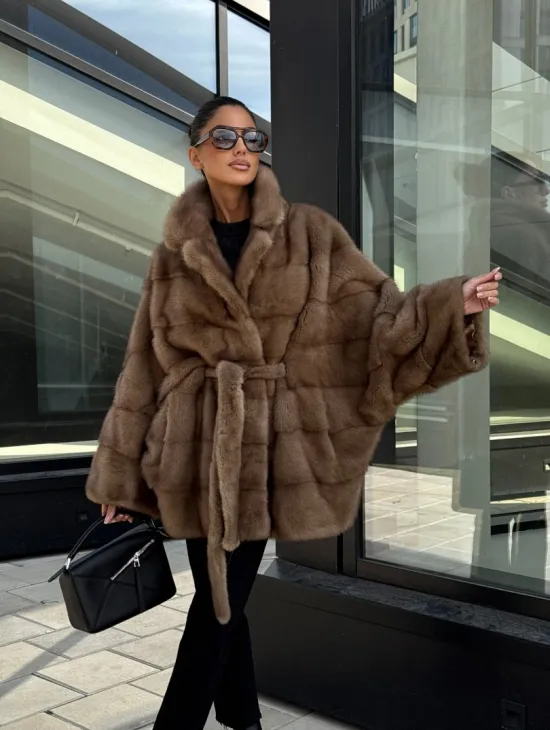 Шуба норковая летучая мышь английский воротник, оверсайз - цвет темный пастель