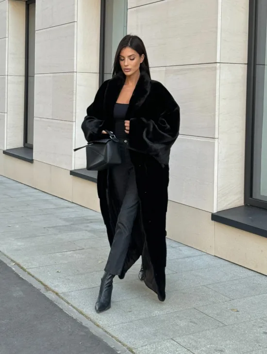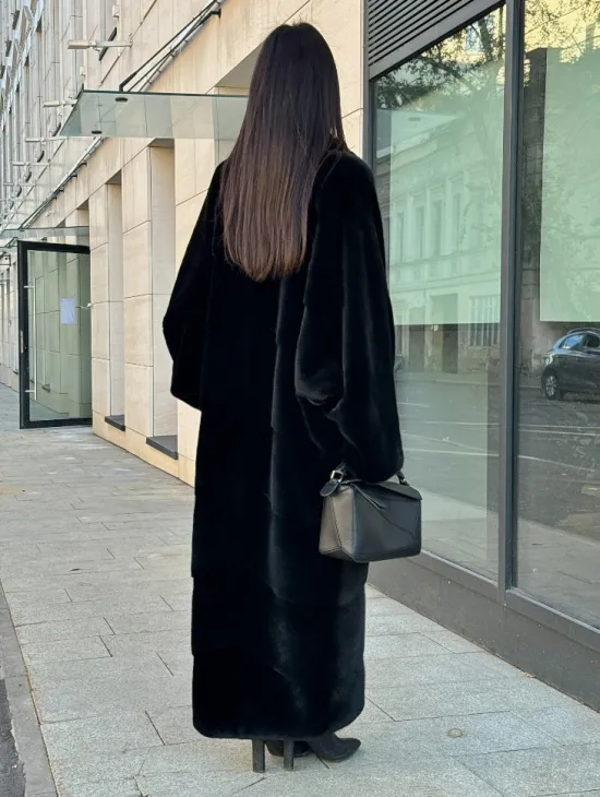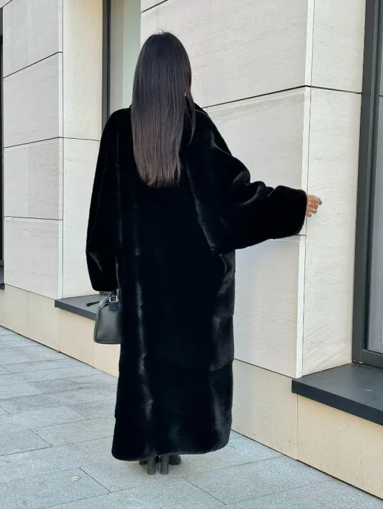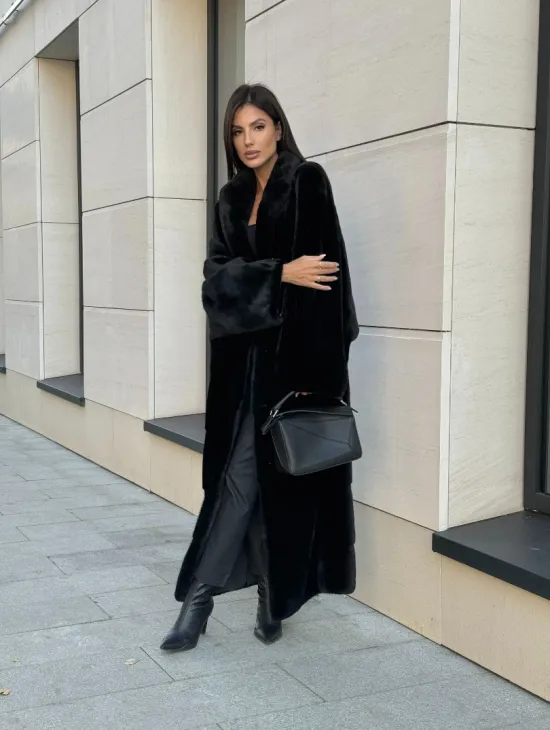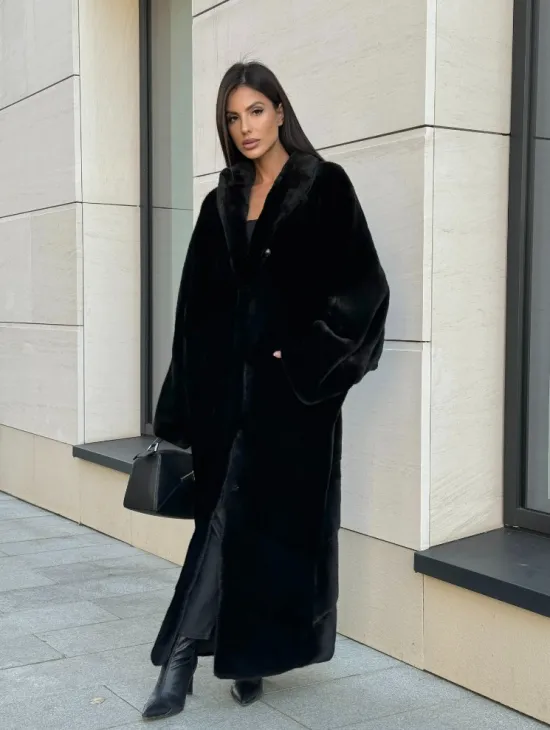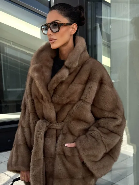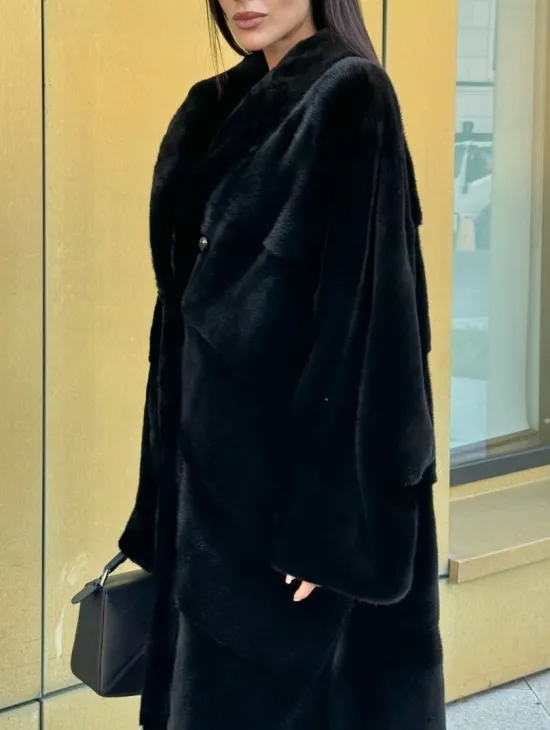 Норковое кимоно - пальто из аукционной норки SAGA FURS, ПРЕМИУМ КАЧЕСТВО - шалевый воротник