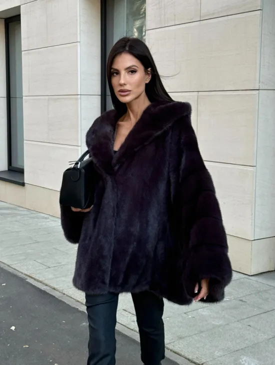 Меховое полупальто из аукционной норки с капюшоном Dark violet