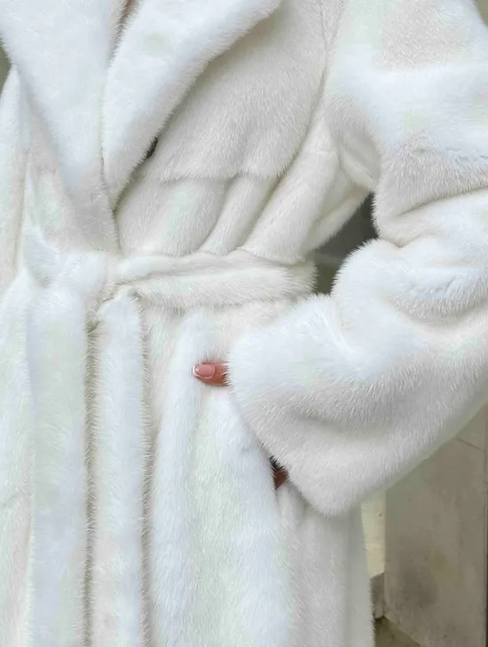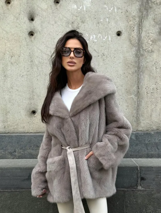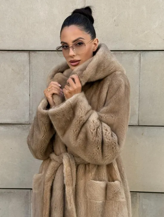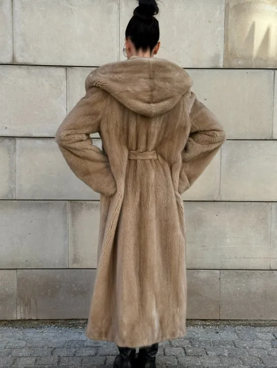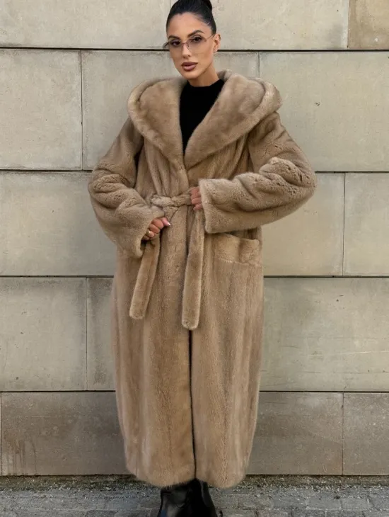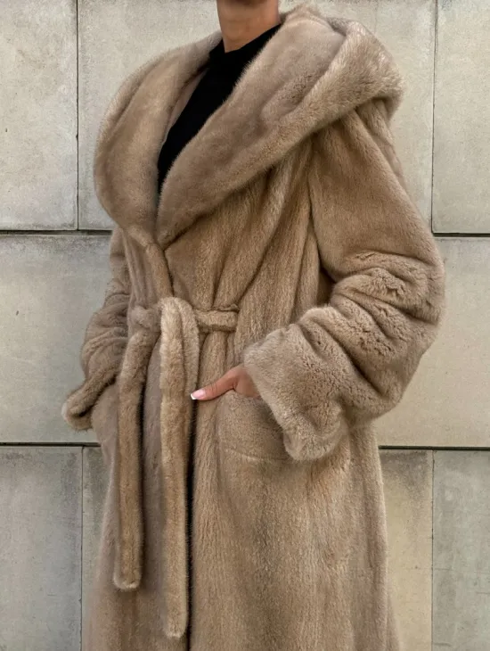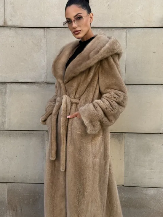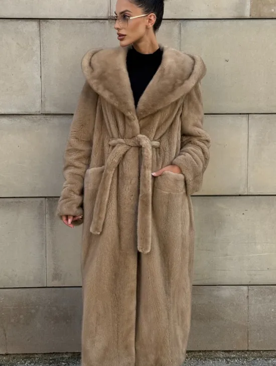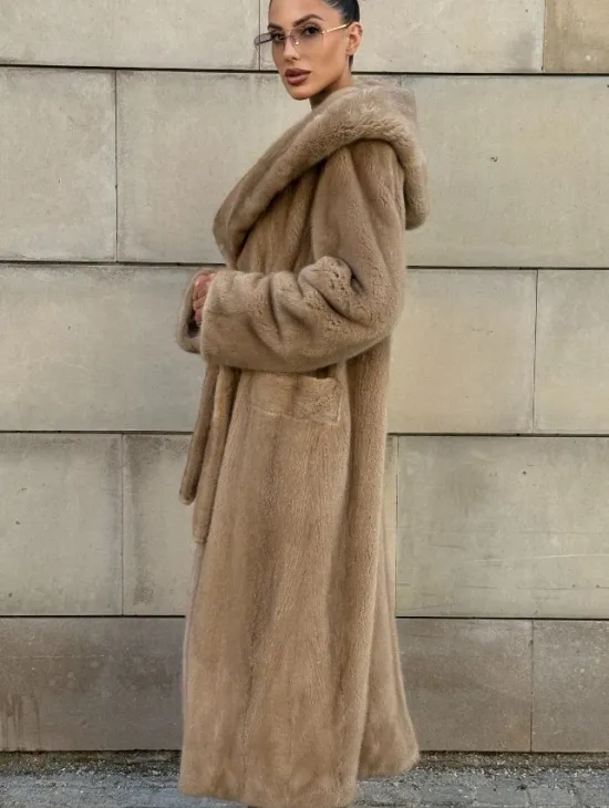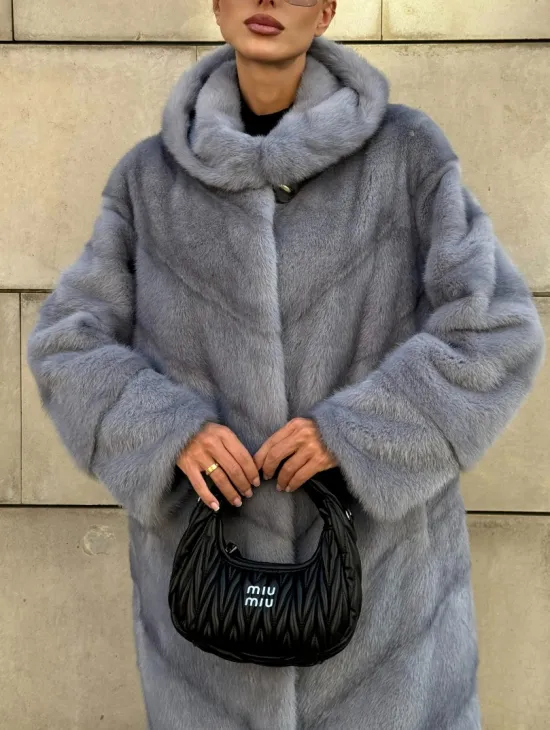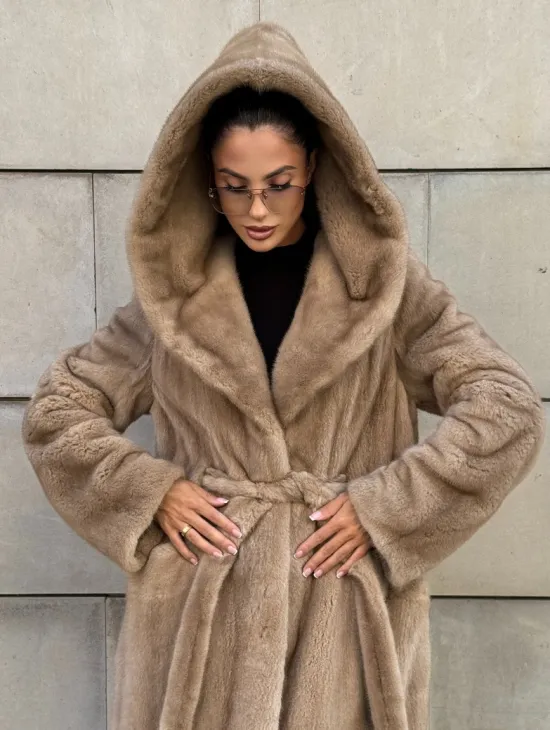 Шуба из скандинавской норки с капюшоном, цельный мех
