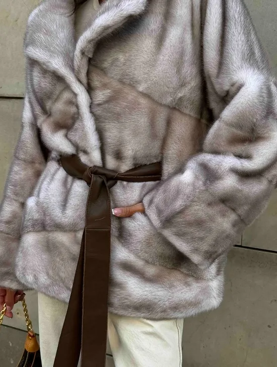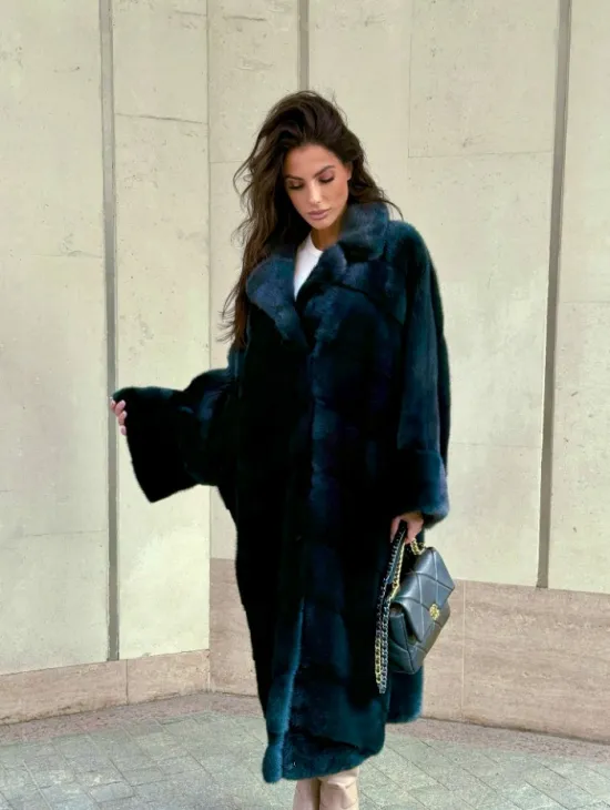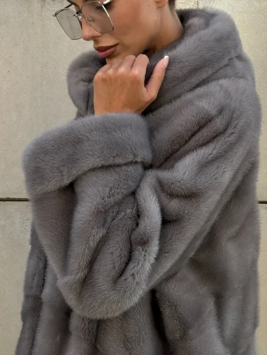 Женская шуба из меха норки в стиле «Oversize» (больших размеров)