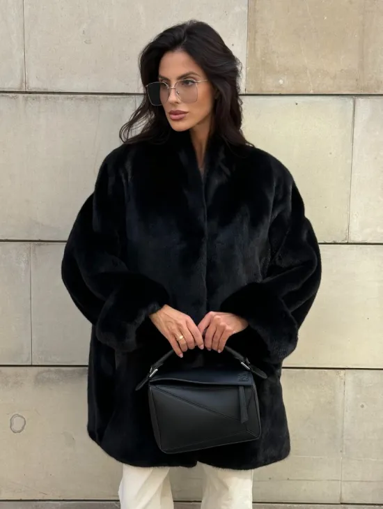 Женское меховое манто - шуба из норки с круглым вырезом, модель «Летучая мышь»