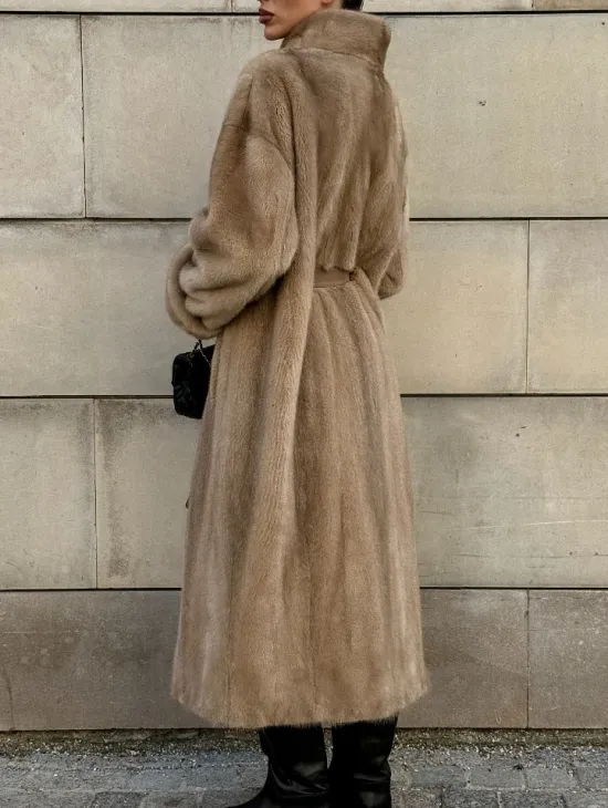 Норковая шуба цельный мех стойка воротник - цвет Caramel