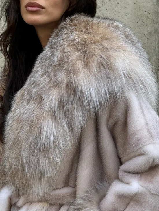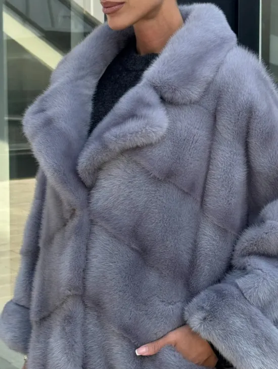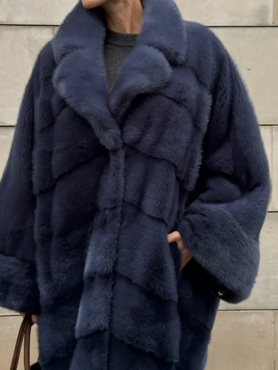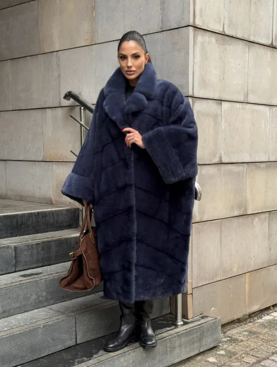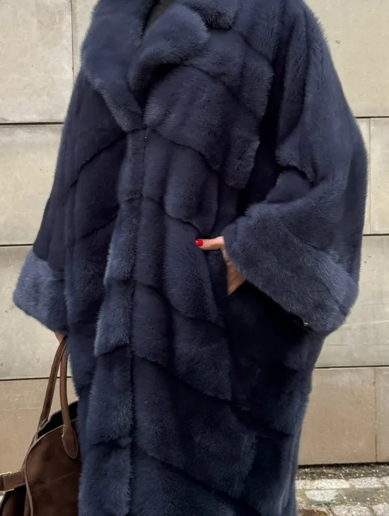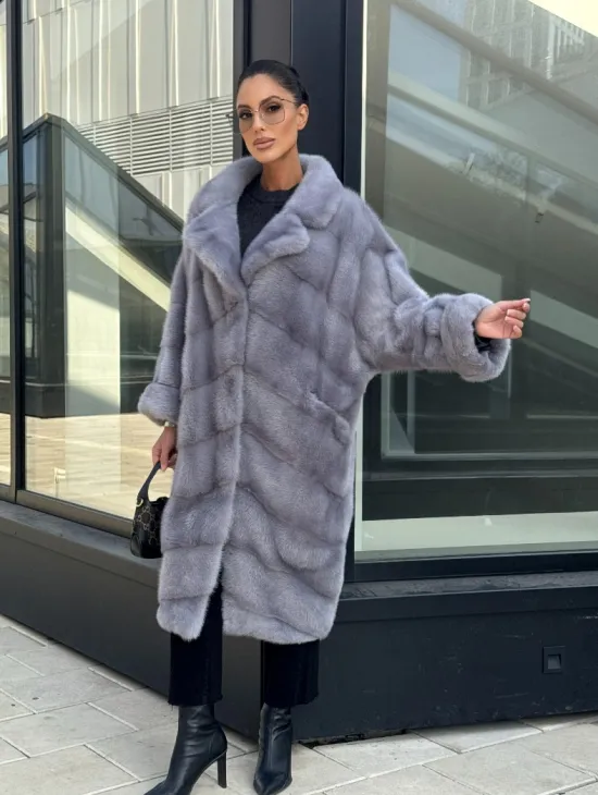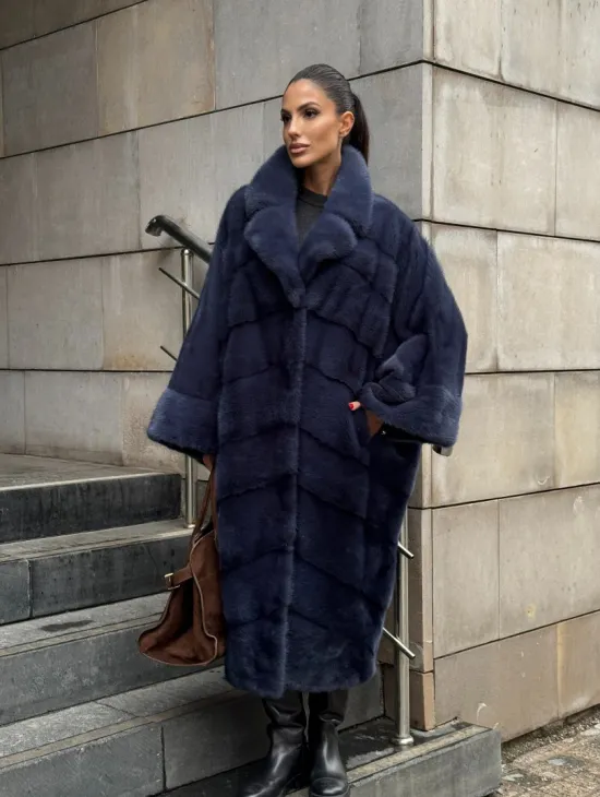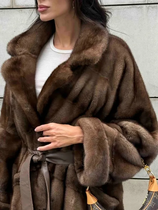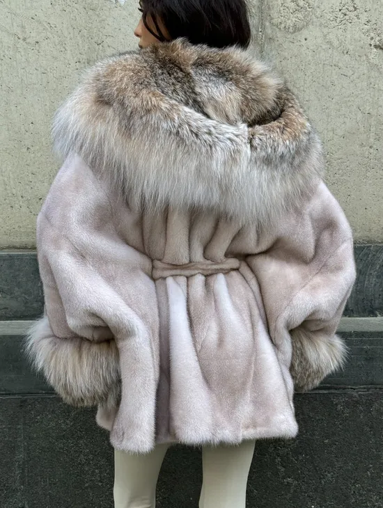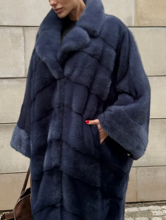 Шуба из канадской норки с капюшоном кобра, фасон летучая мышь