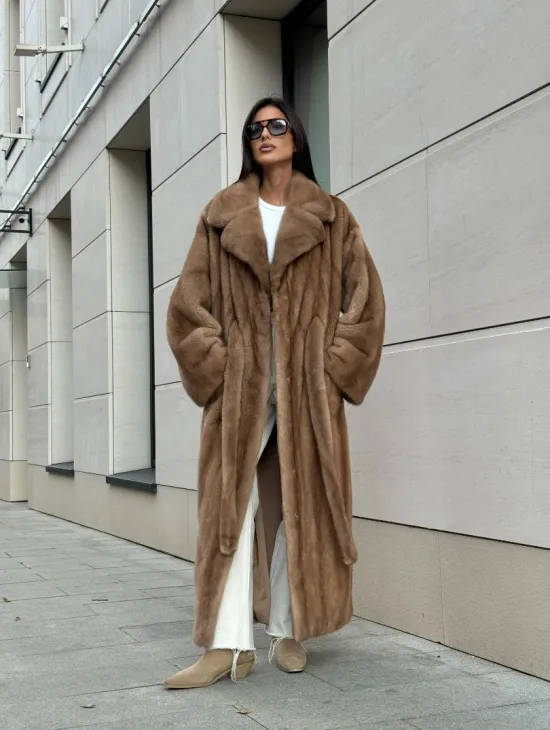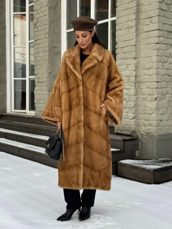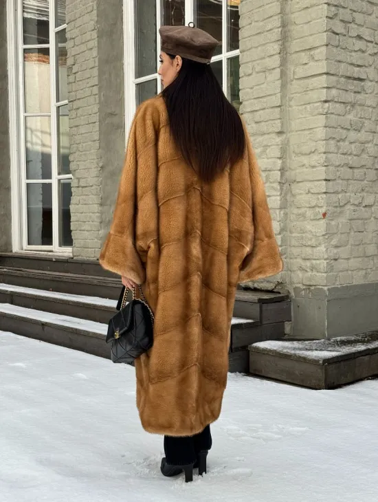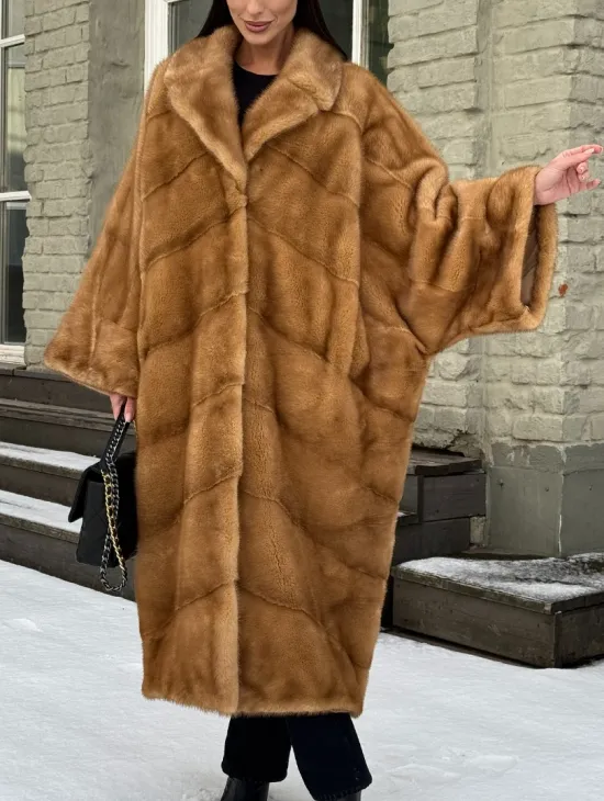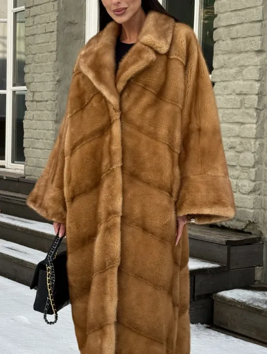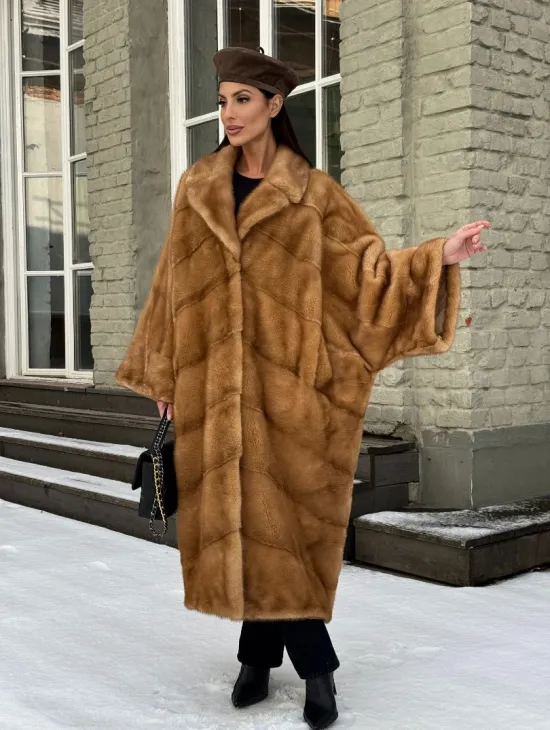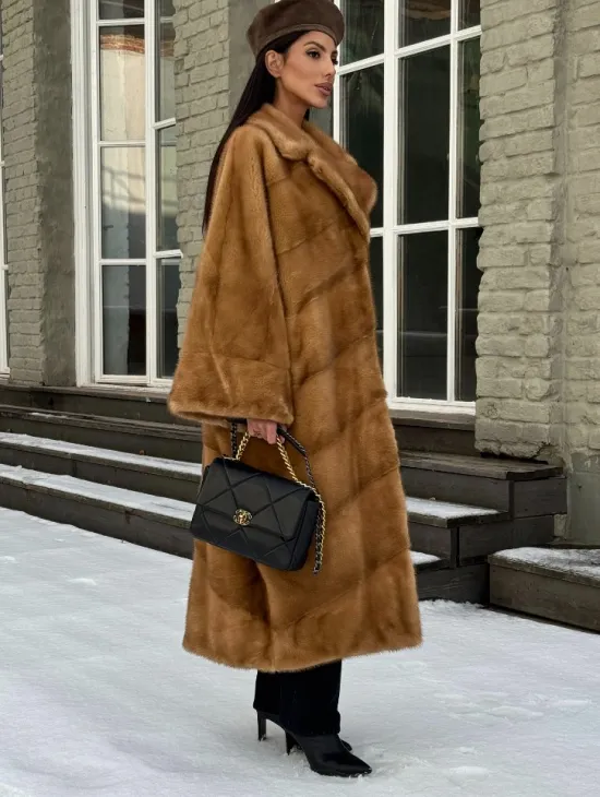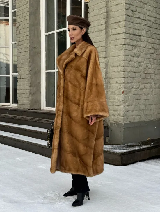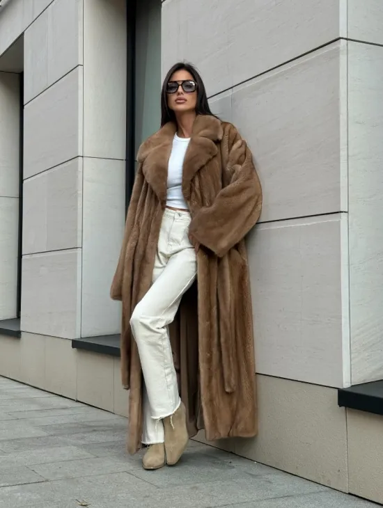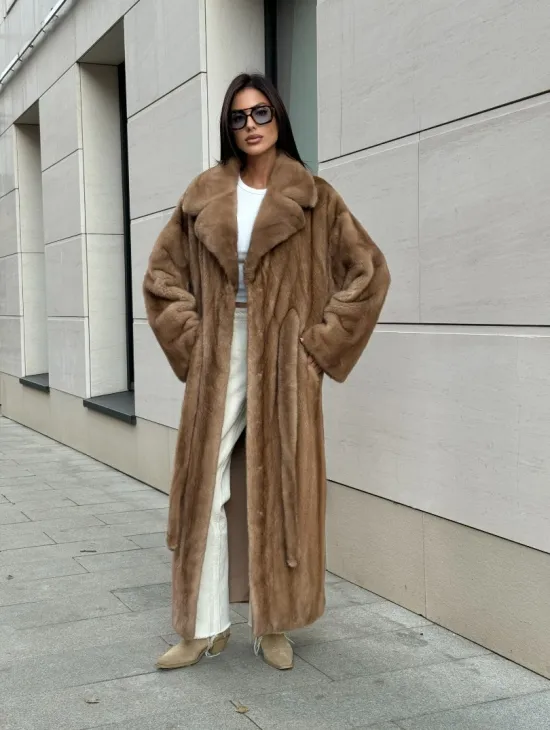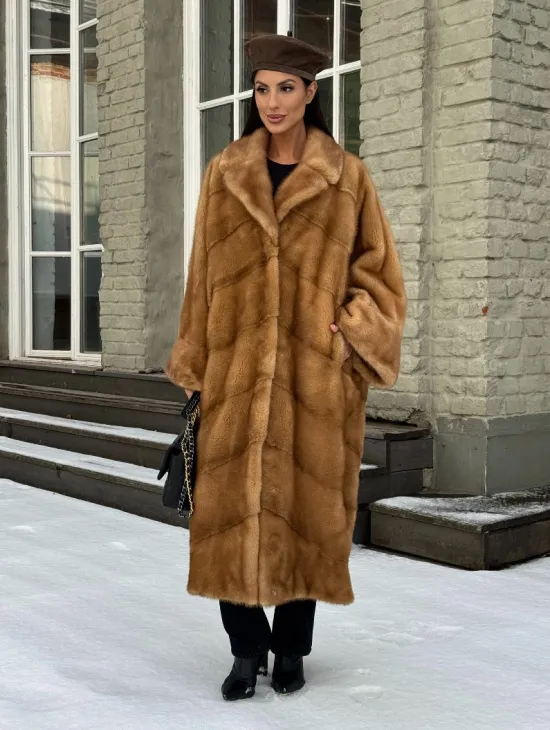 Женское меховое пальто оверсайз, стиль - Бохо из скандинавской норки GOLD