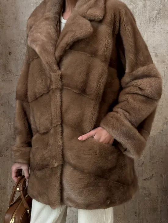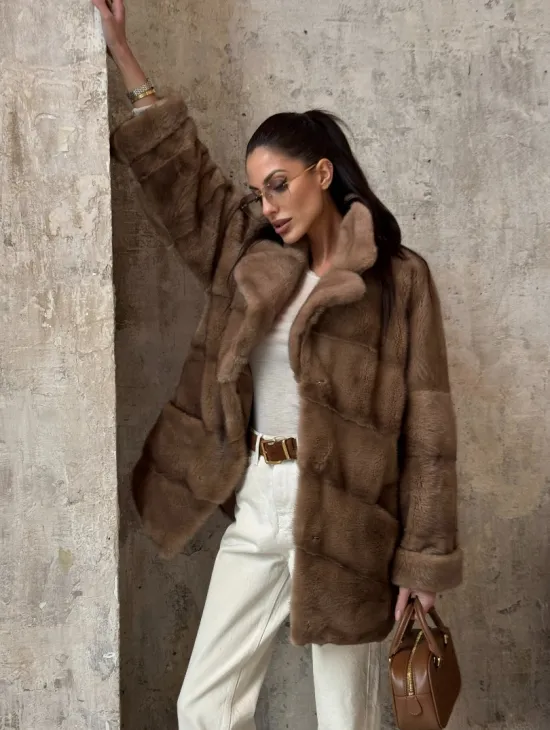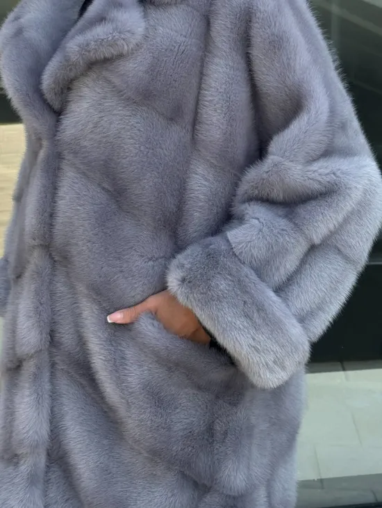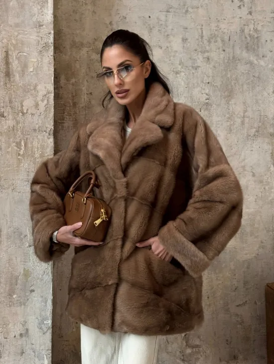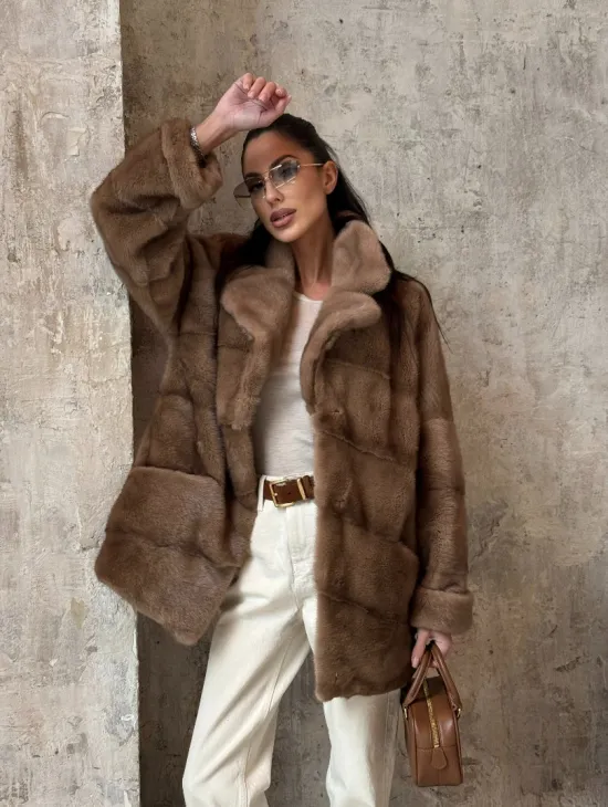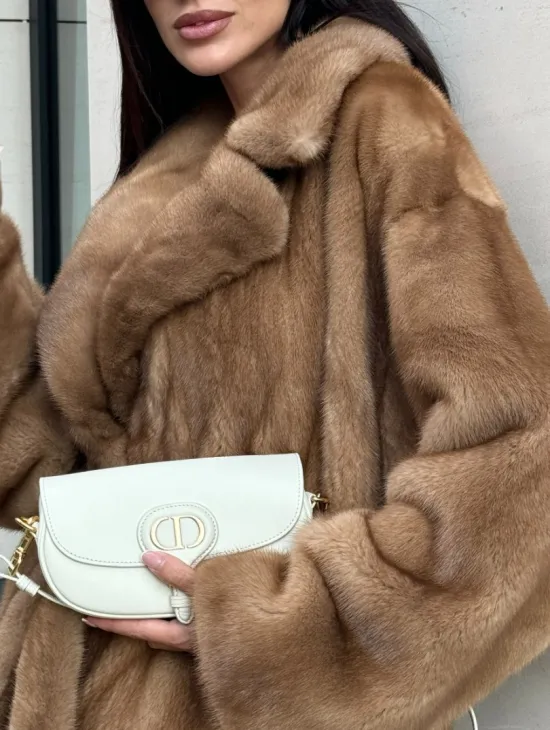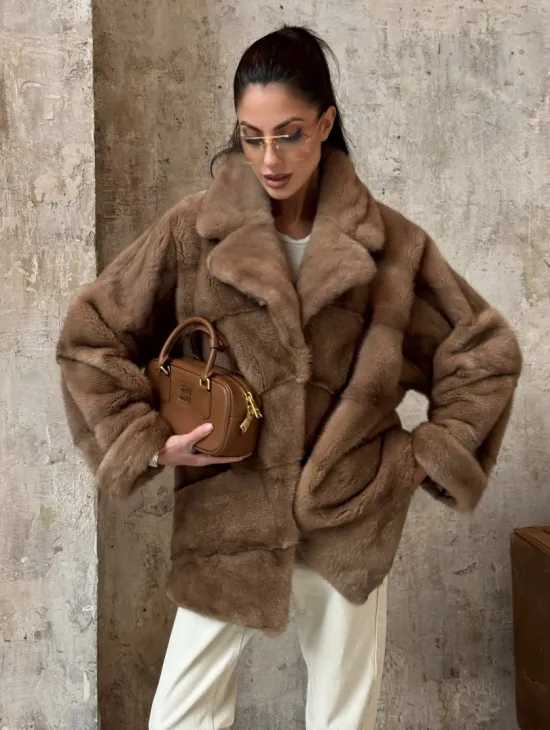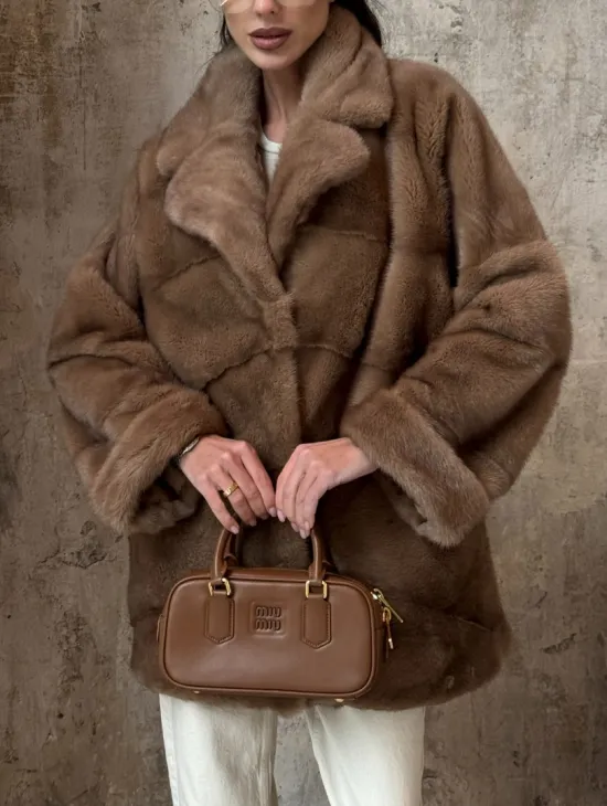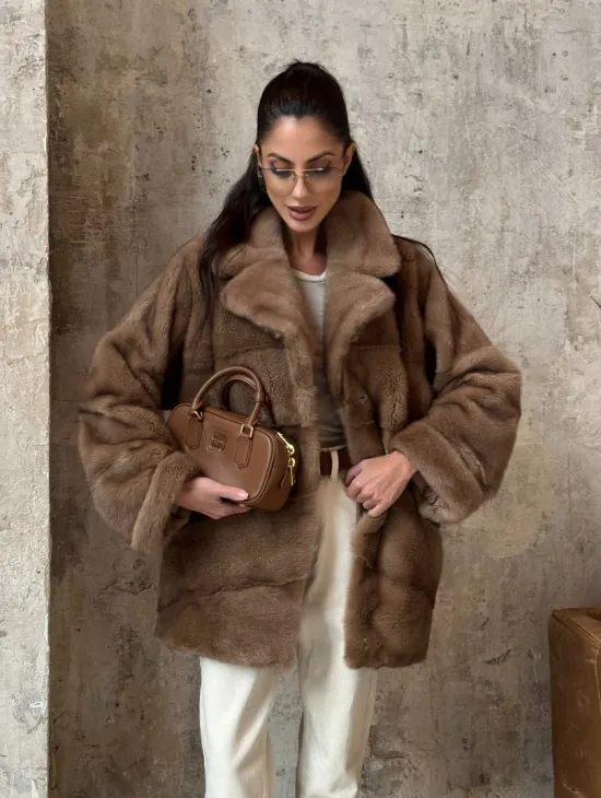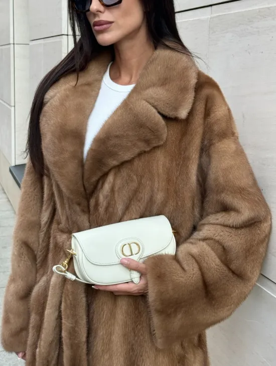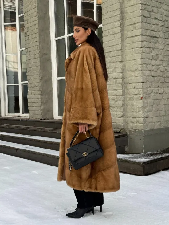 Женское меховое пальто оверсайз, стиль - Бохо из скандинавской норки GOLD