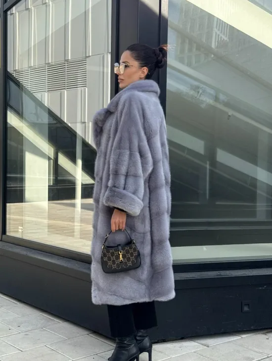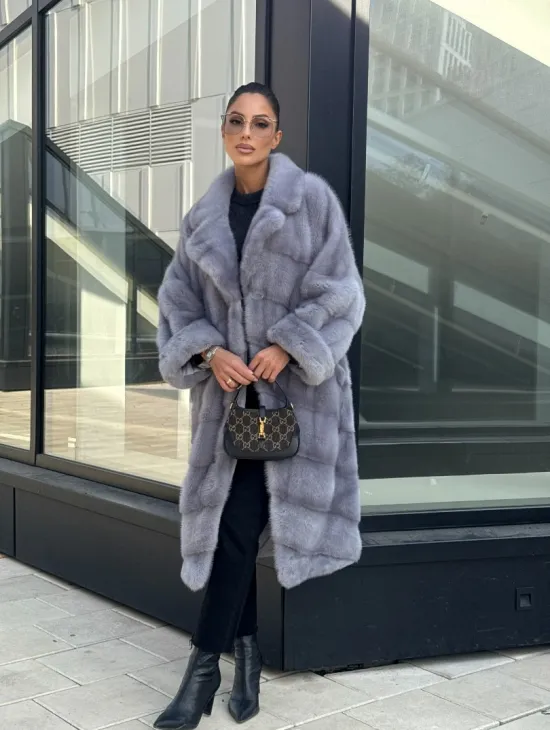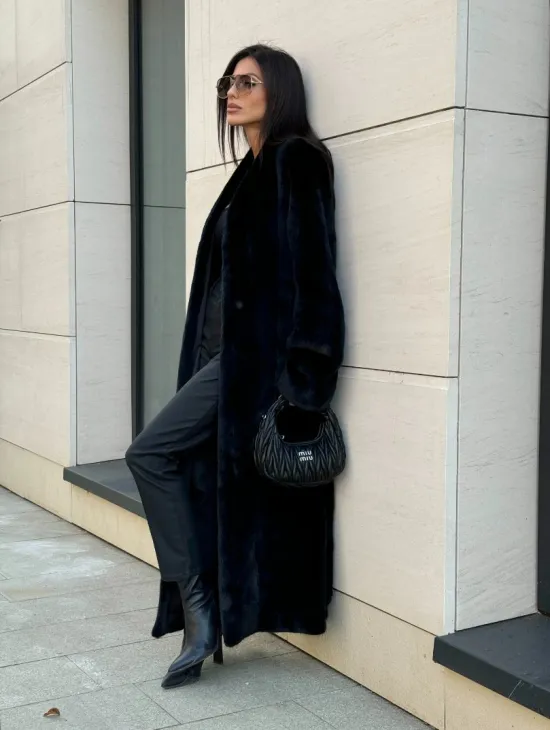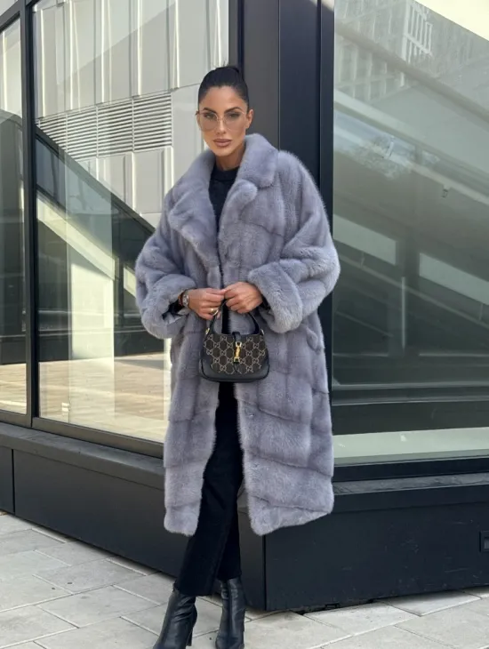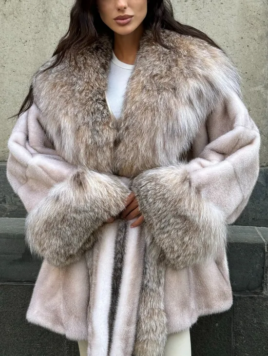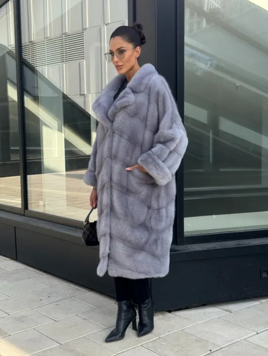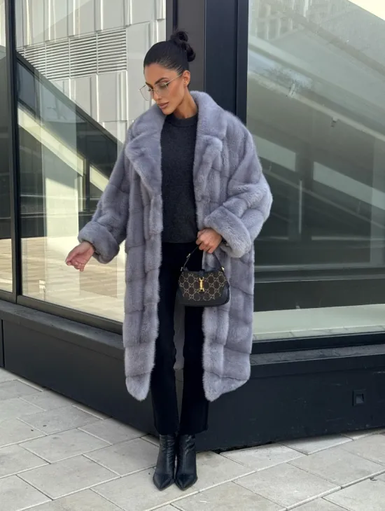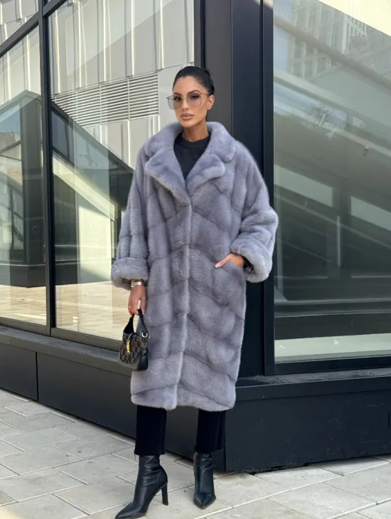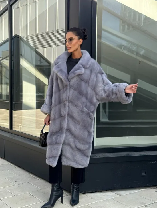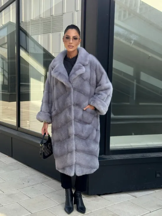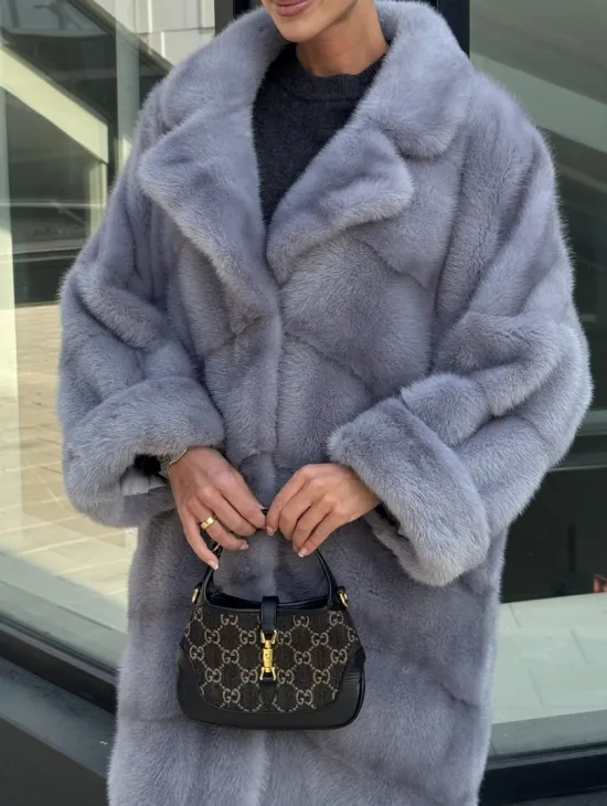 Женское меховое пальто оверсайз, стиль - Бохо из скандинавской норки GOLD