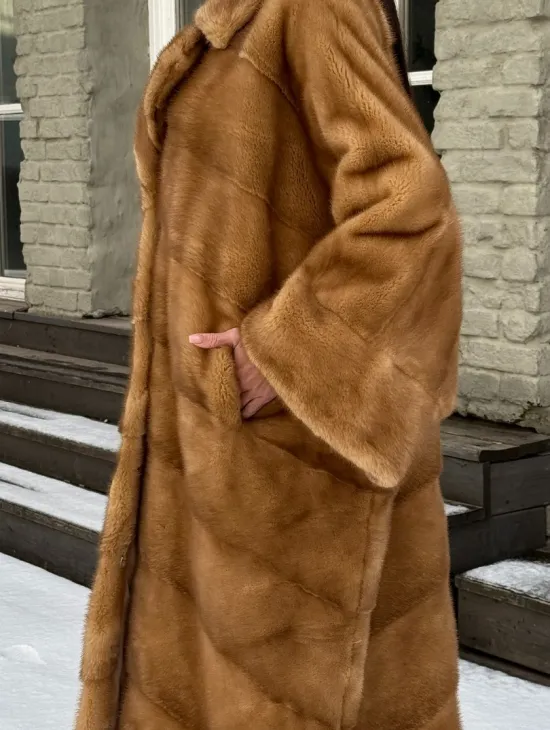 Норковая шуба Vintage Gold с английским воротником - цельные пластины