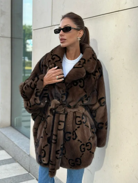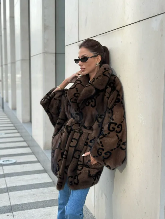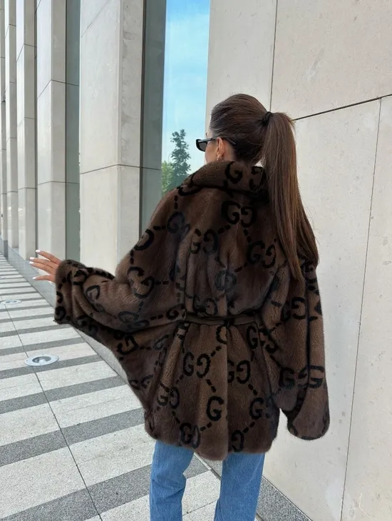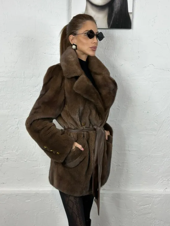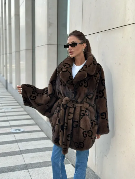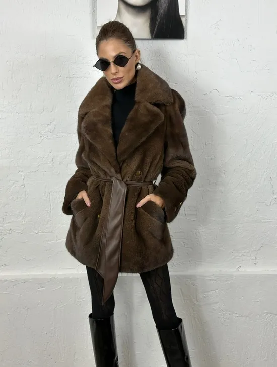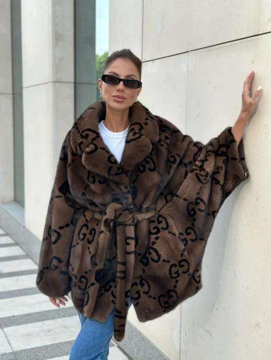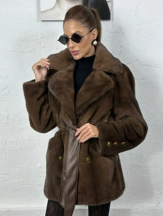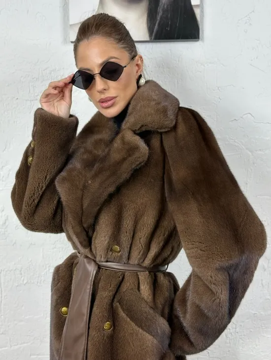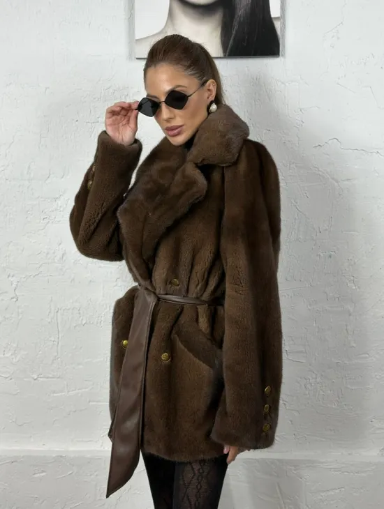 Шуба летучая мышь плюшевая норка VELVET - цвет орех