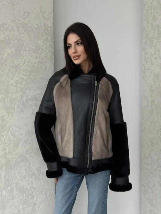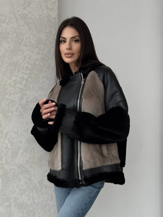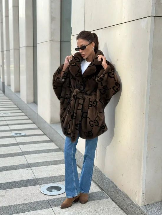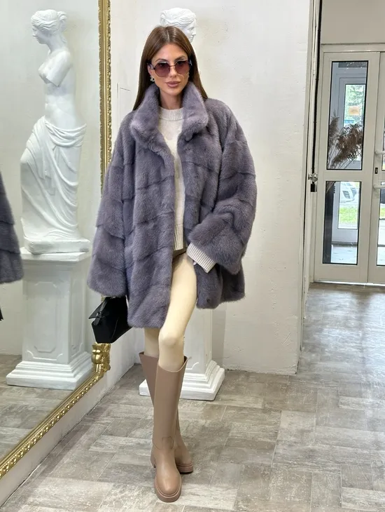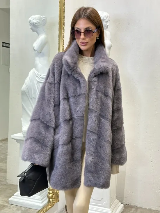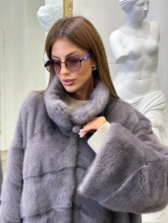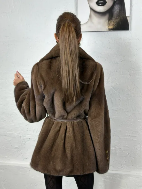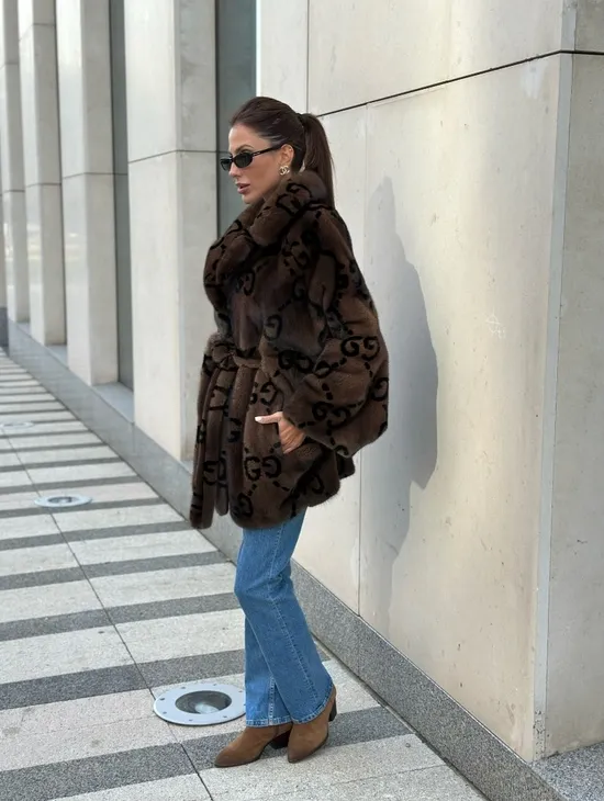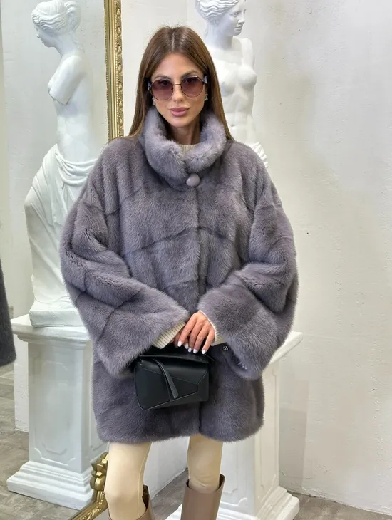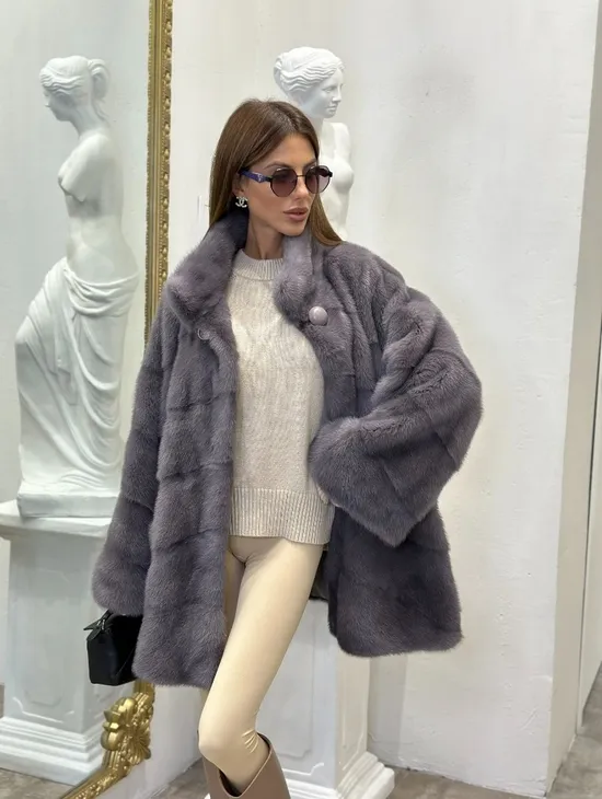 Шуба летучая мышь плюшевая норка VELVET - цвет орех