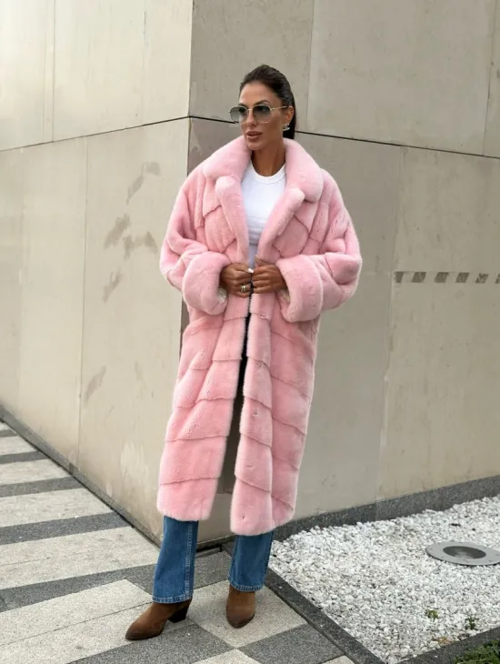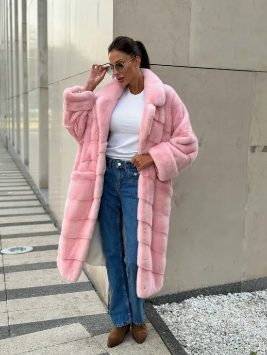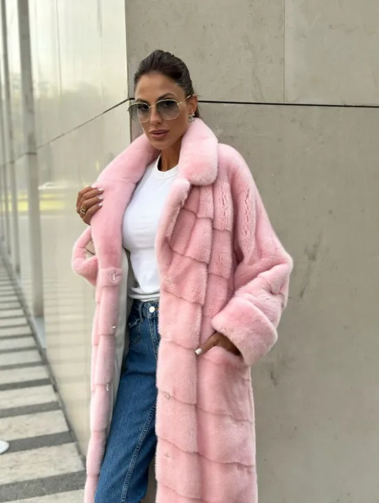 Шуба из плюшевой норки Velvet - цвет светло-розовый