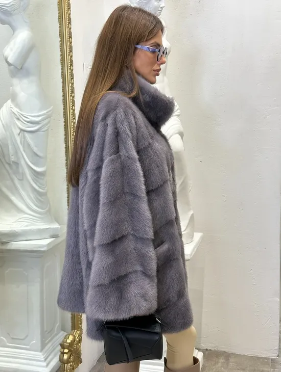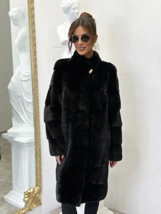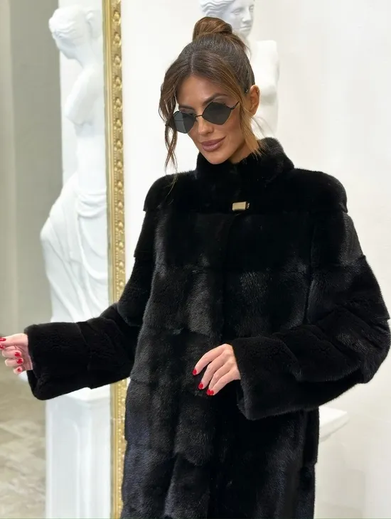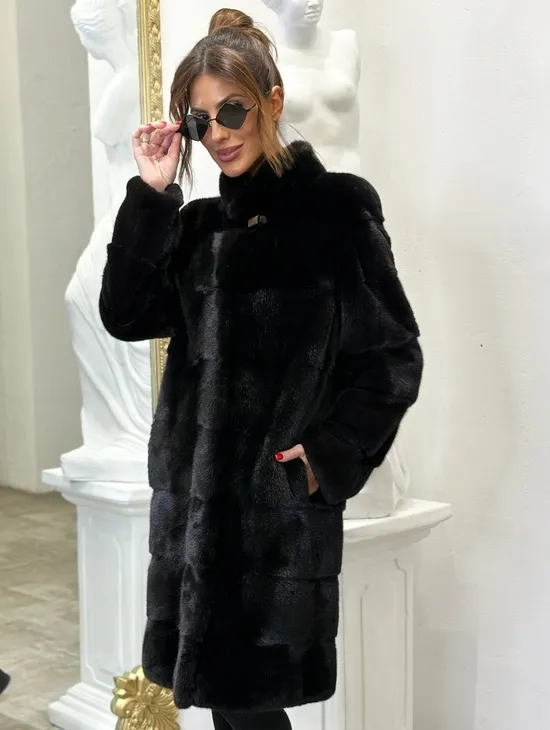 Норка NAFA поперечка стойка воротник - цвет черный бриллиант