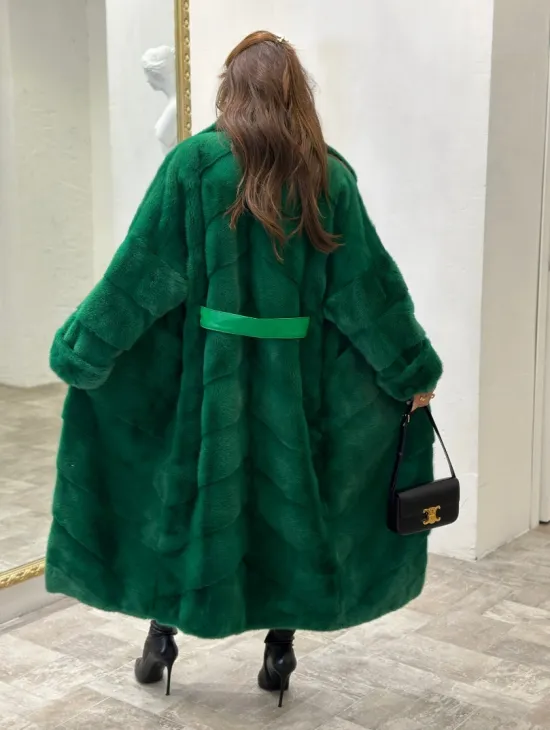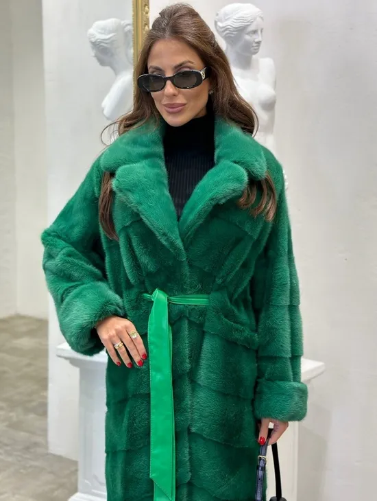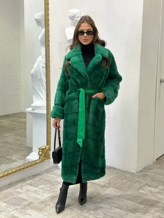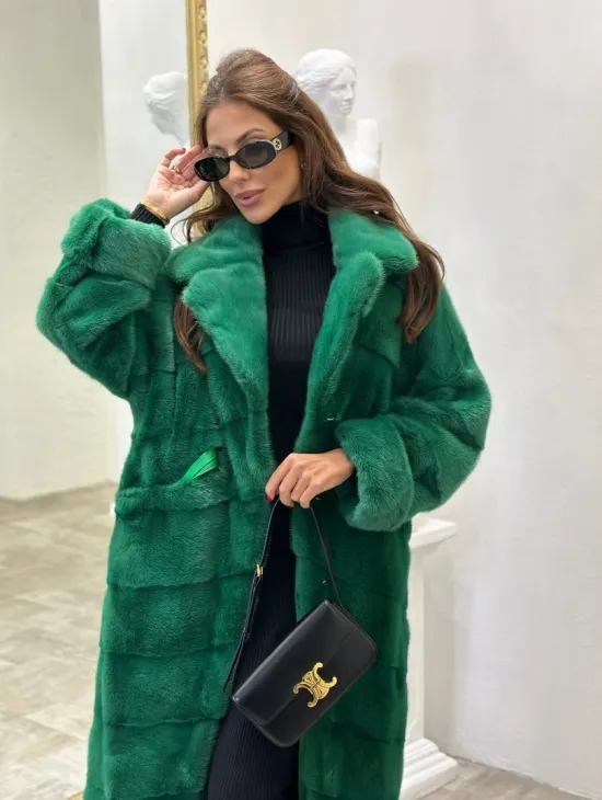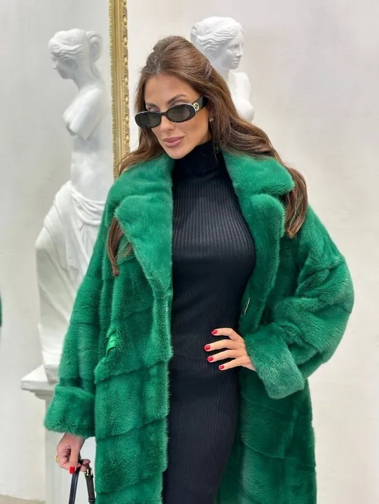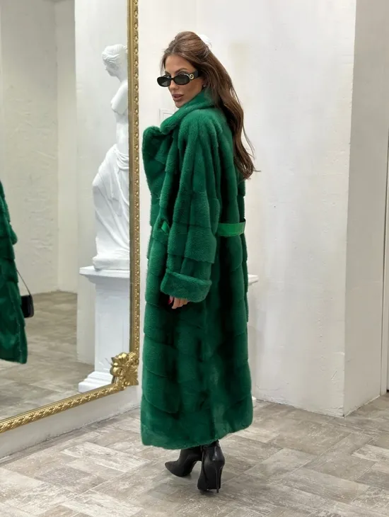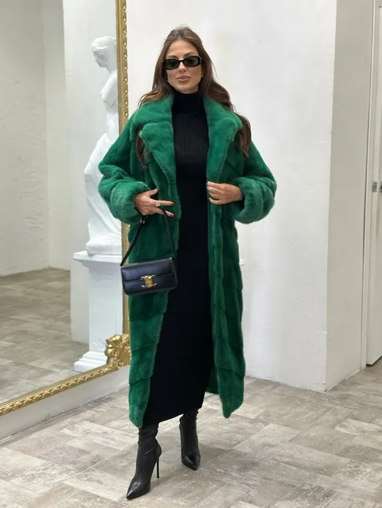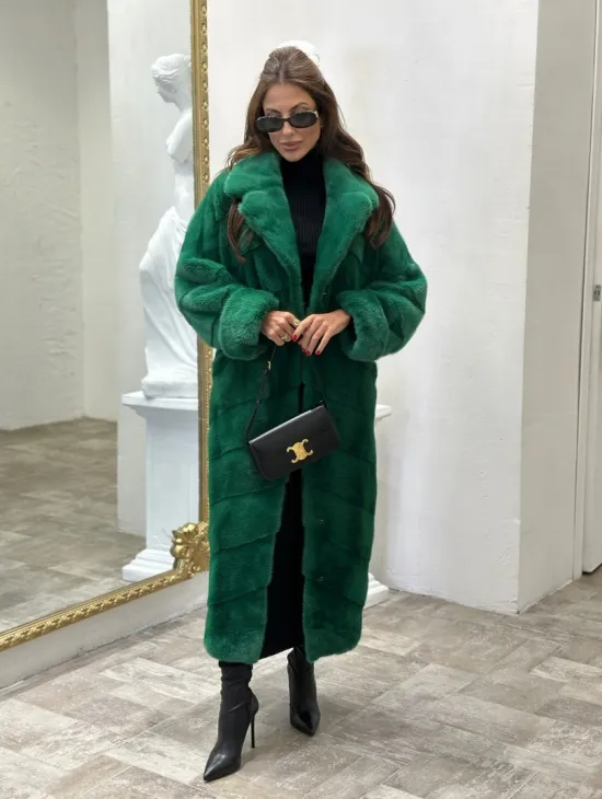 Шуба из аукционной норки с английским воротником - цвет изумруд