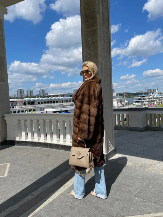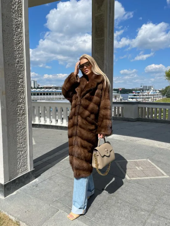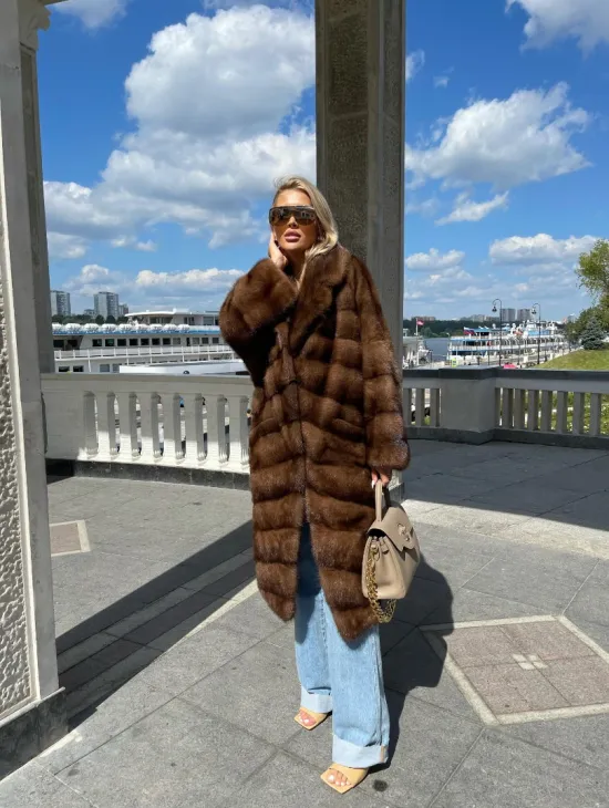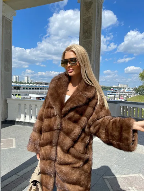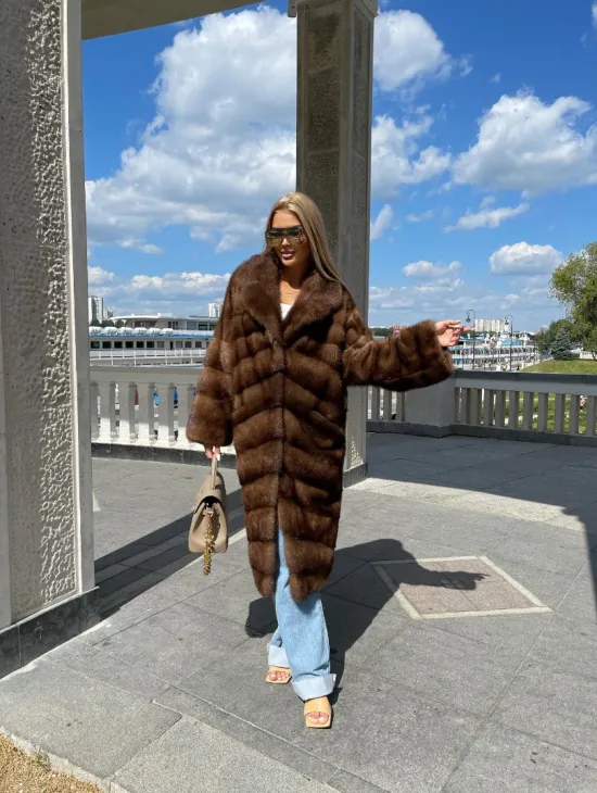 Удлиненная норковая шуба в цвете соболь