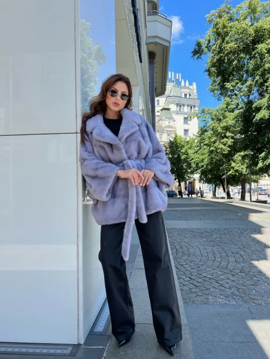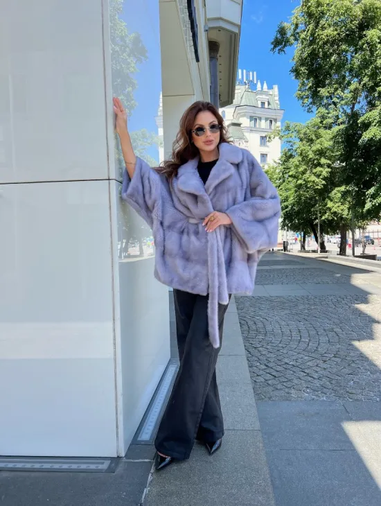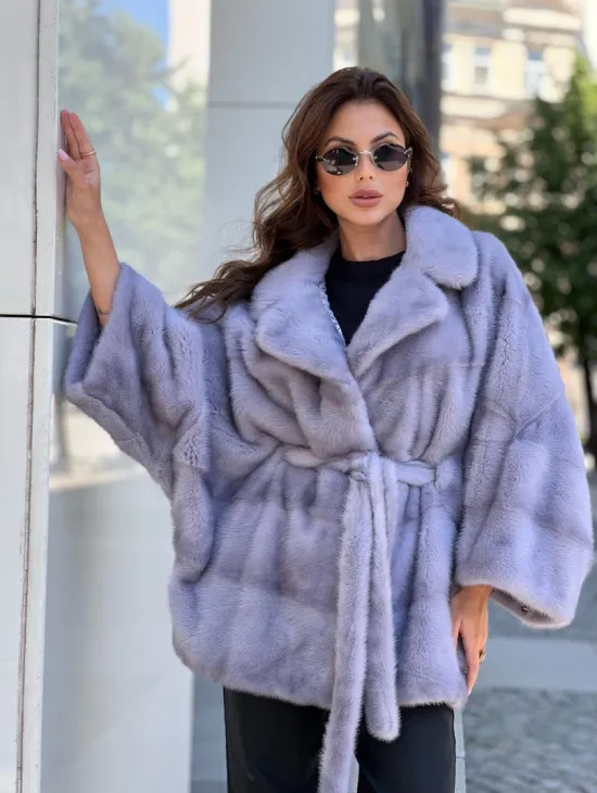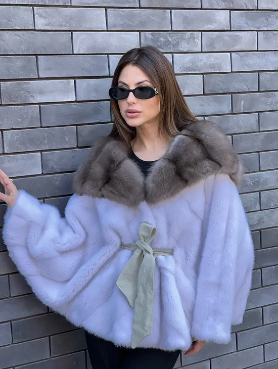 Норковое пончо из меха голубой норки
