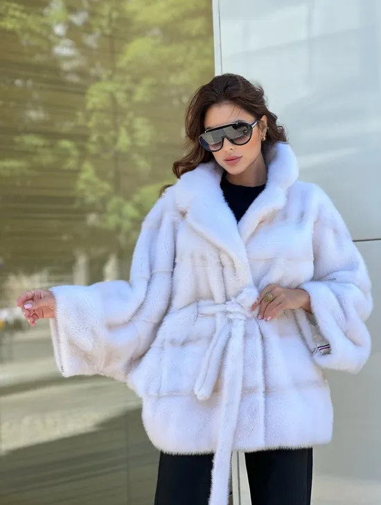 Белая короткая норковая шуба
