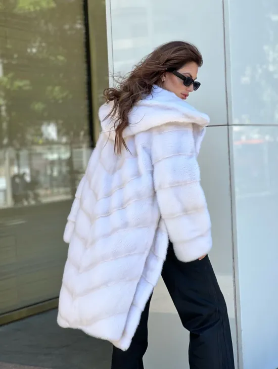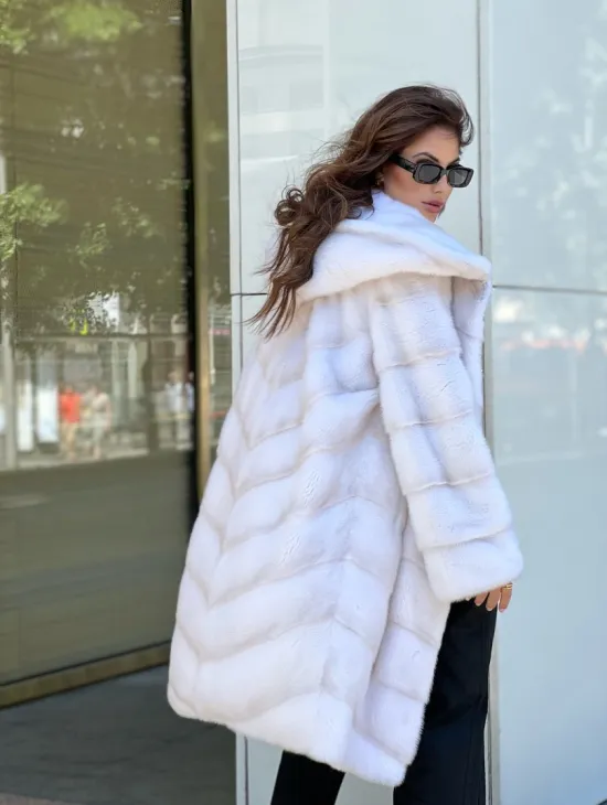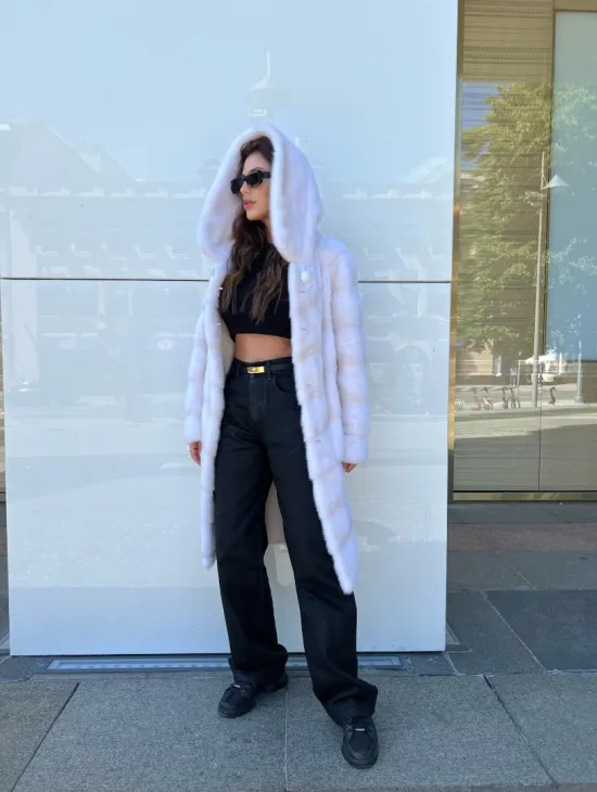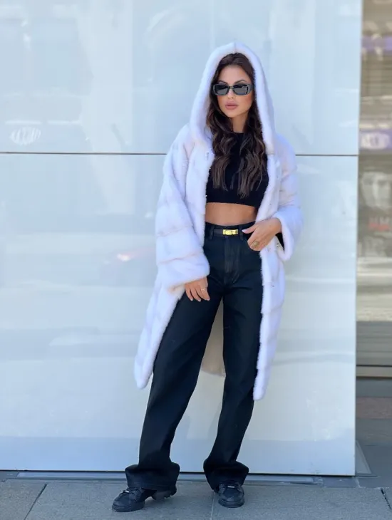 Белые норковые шубы с капюшоном из рыси