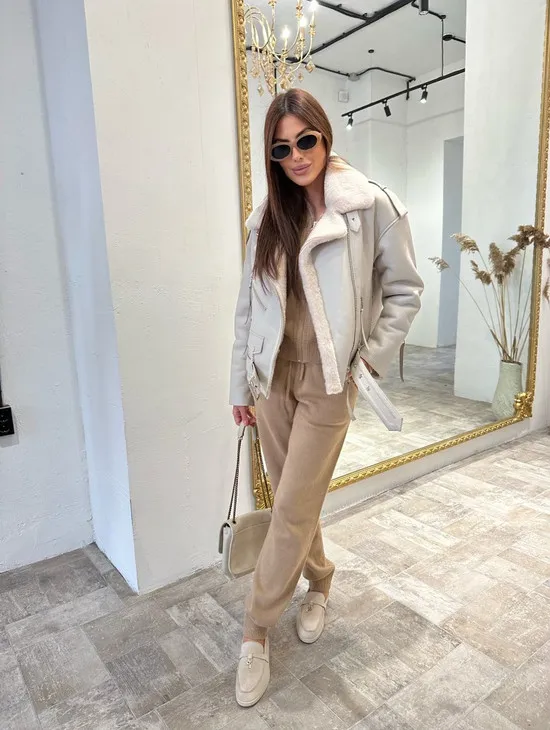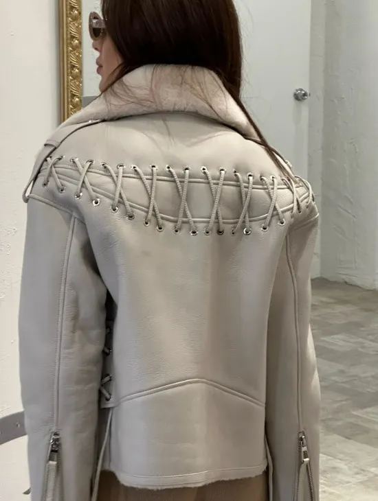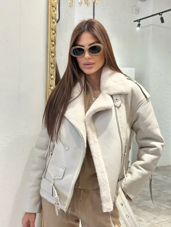 Дубленка-авиатор из натуральной овчины со шнуровкой