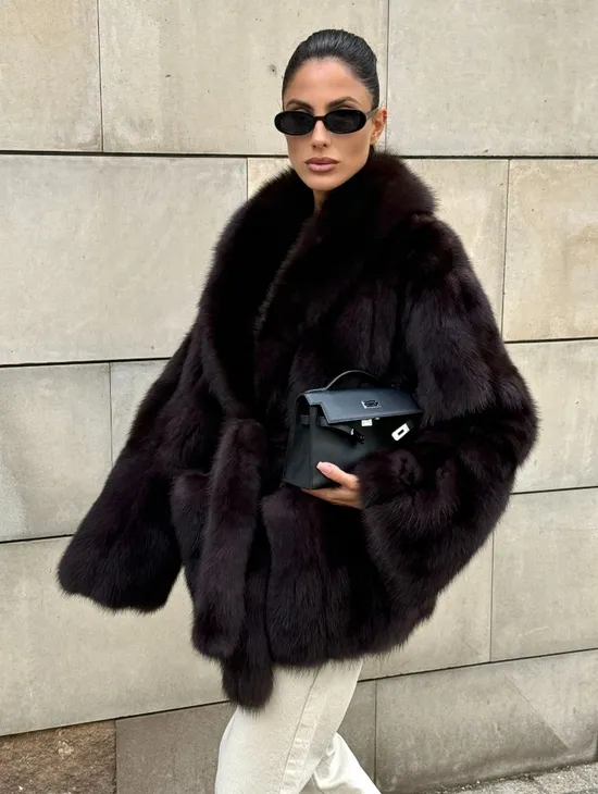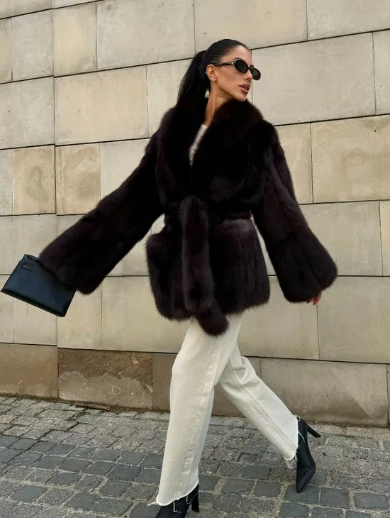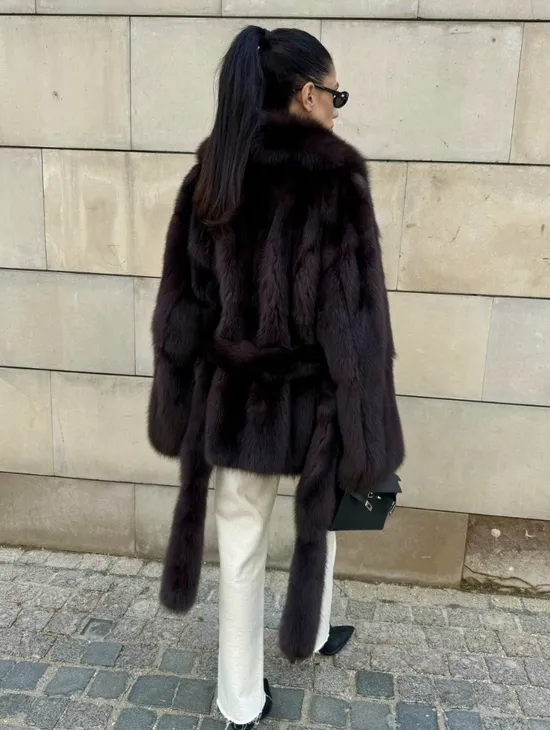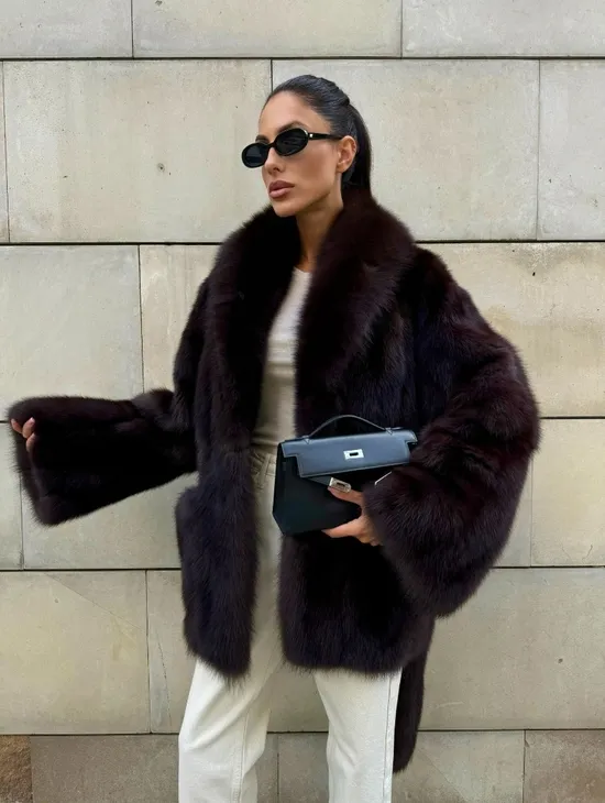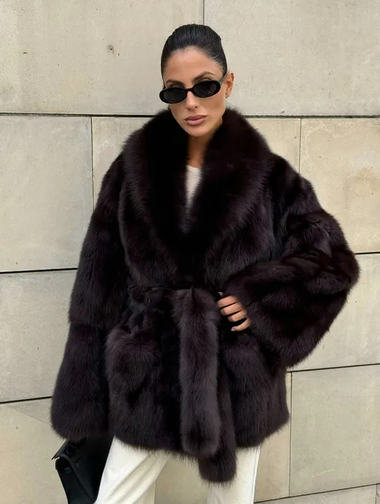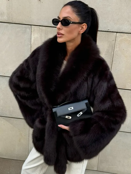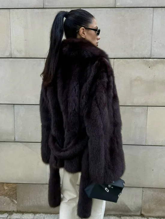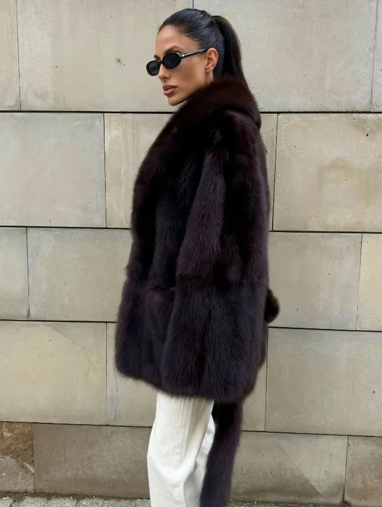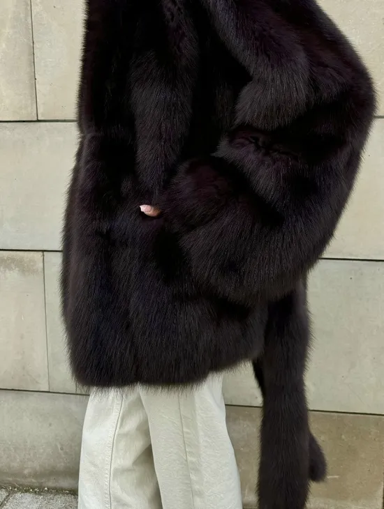 Шуба - жакет из меха куницы в цвете BURGUNDY