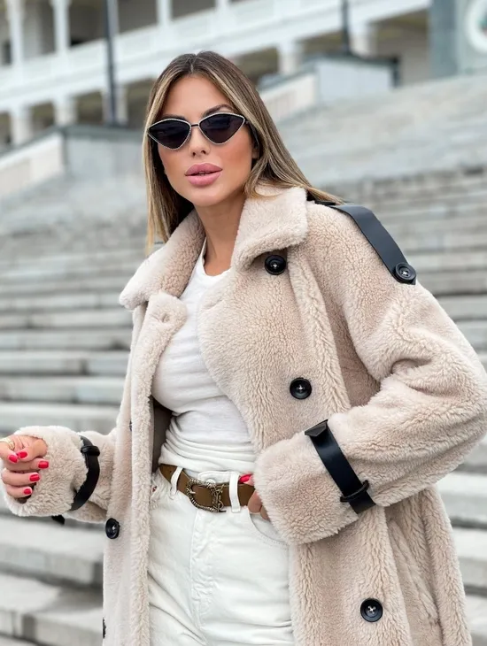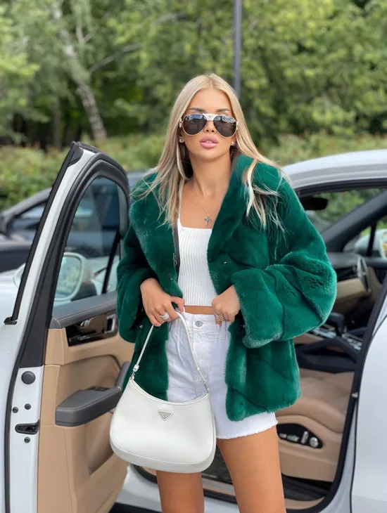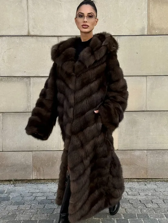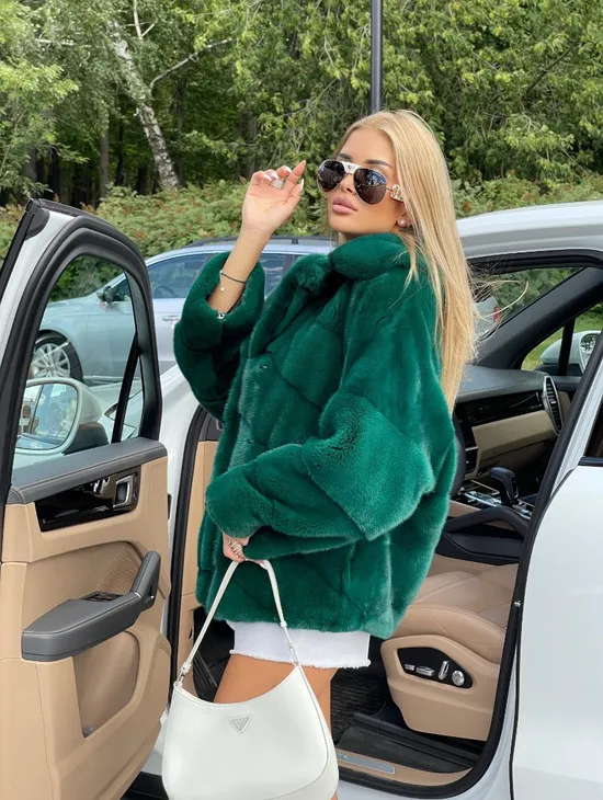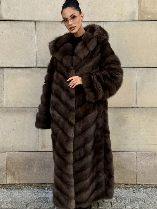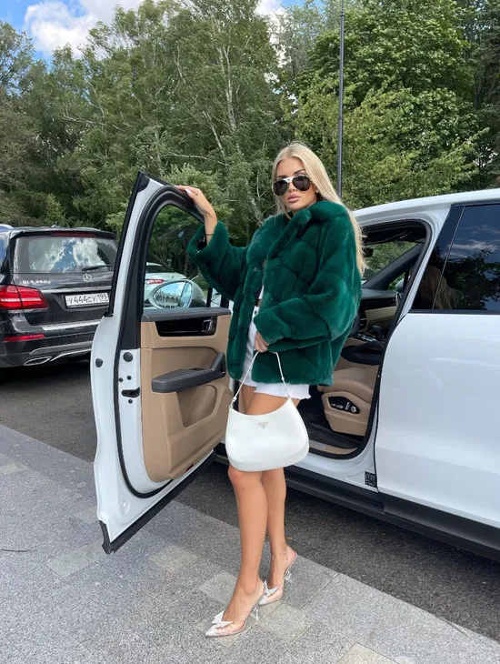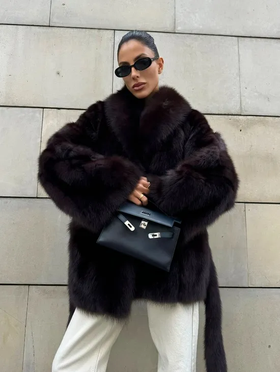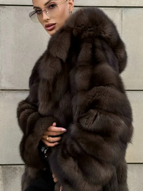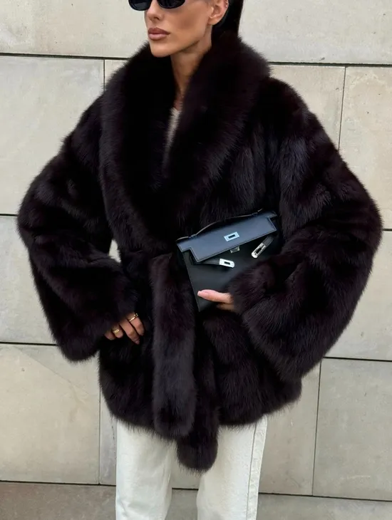 Шуба - жакет из меха куницы в цвете BURGUNDY