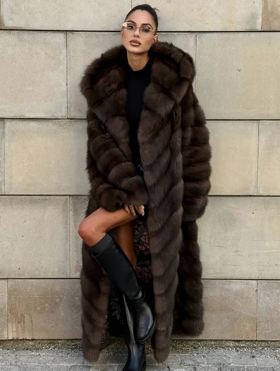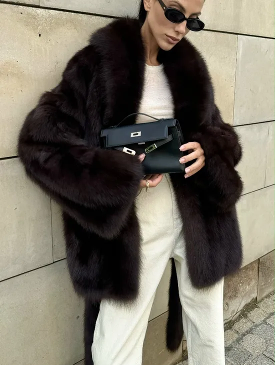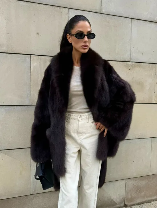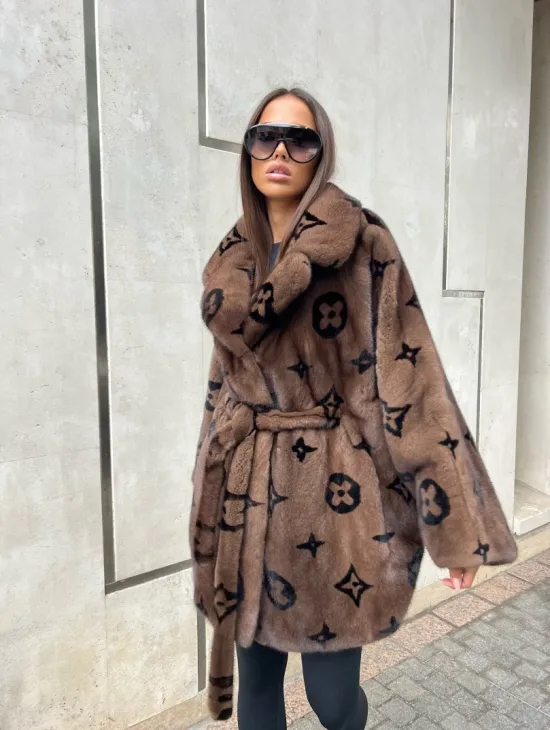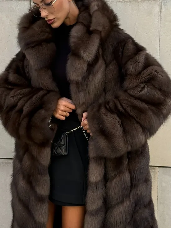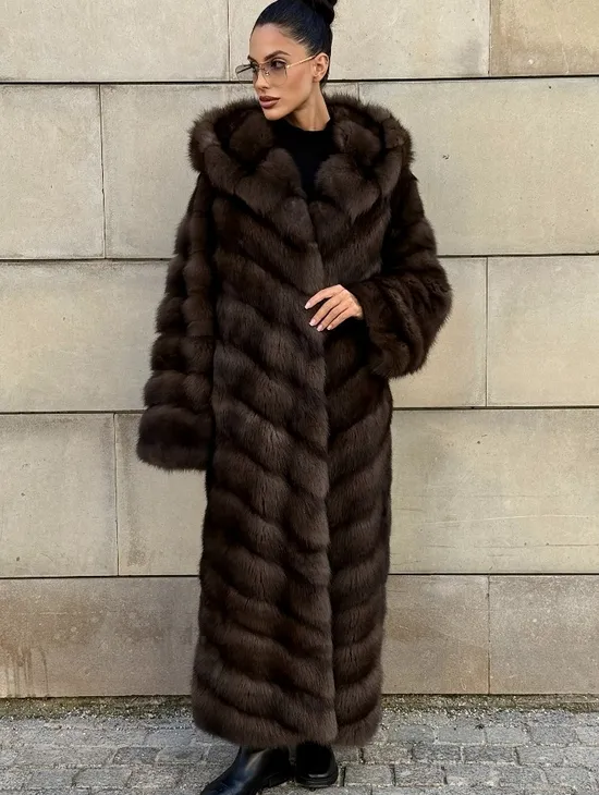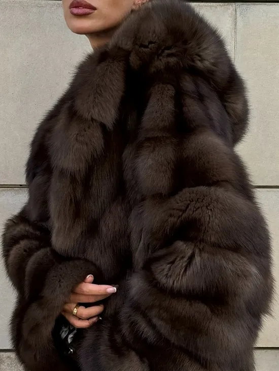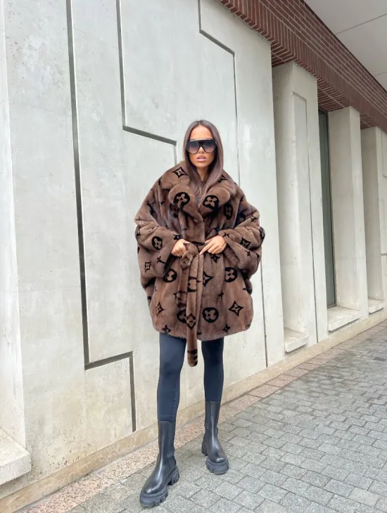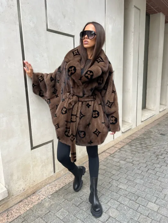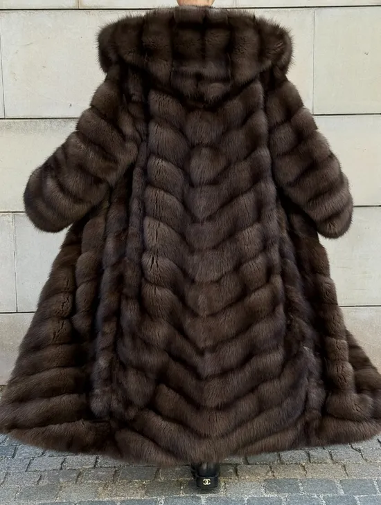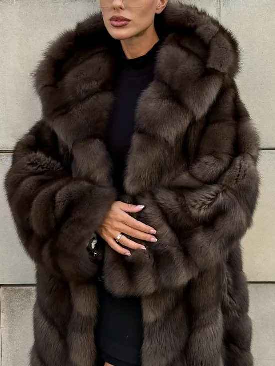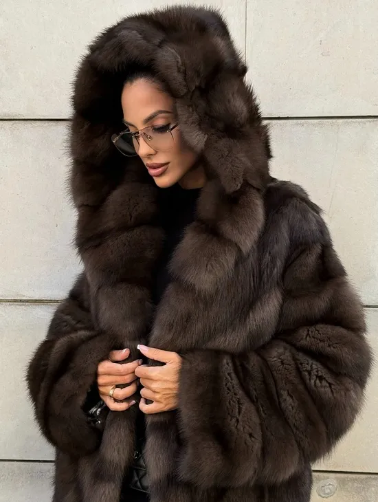 Норковое пончо из меха аукционной норки Velvet в цвете соболь