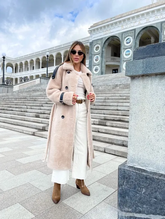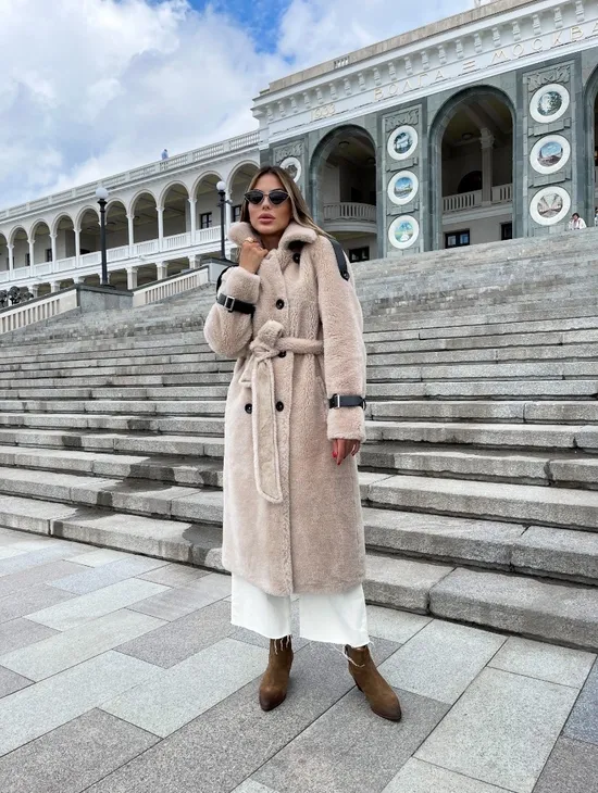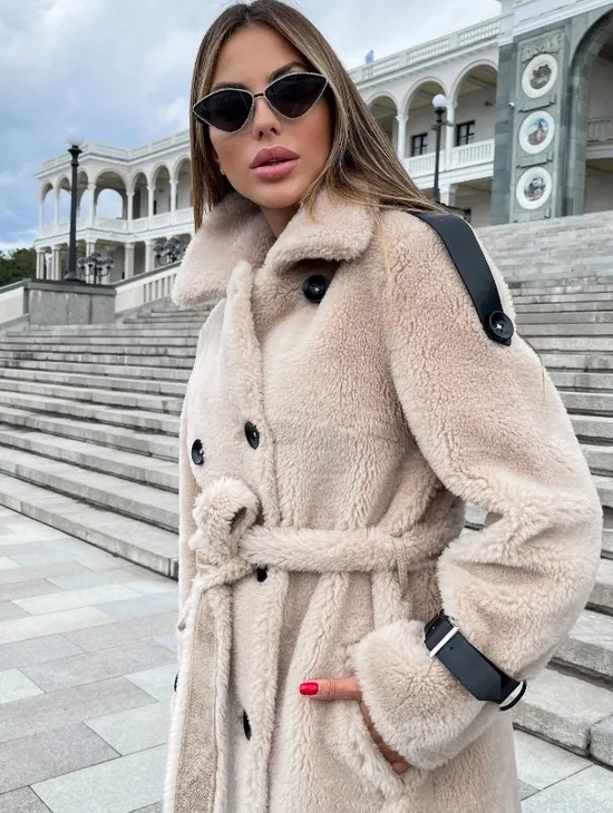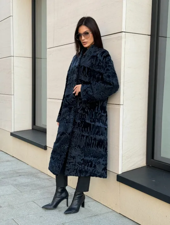 Пальто из меха каракуля с V-образным воротником, цвет Indigo Blue
