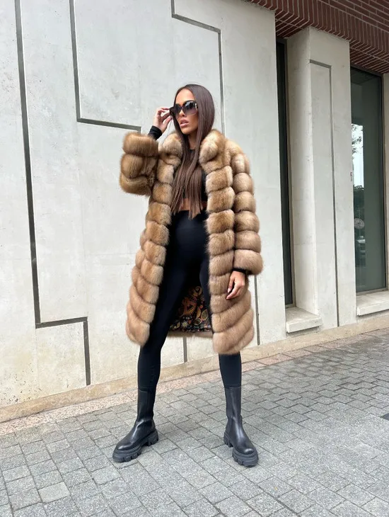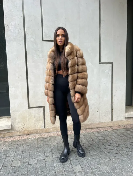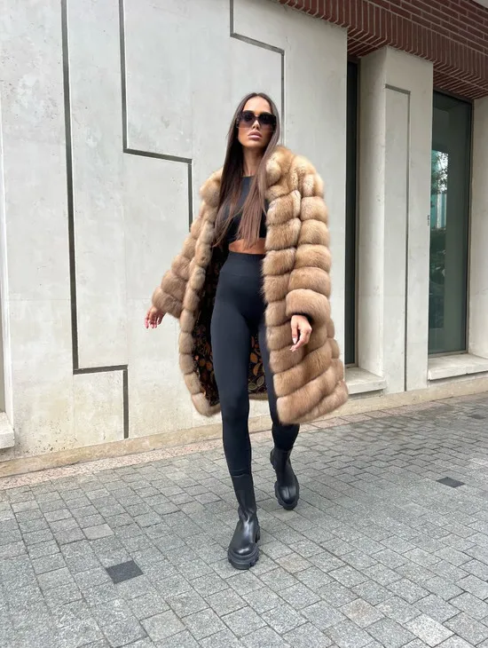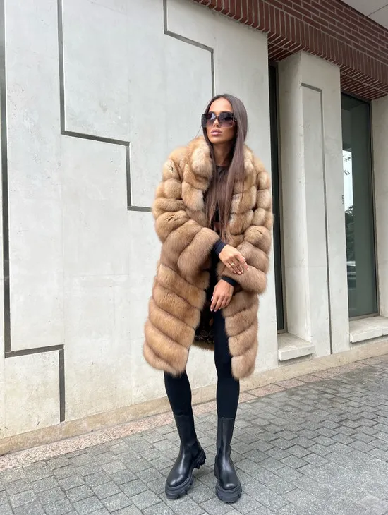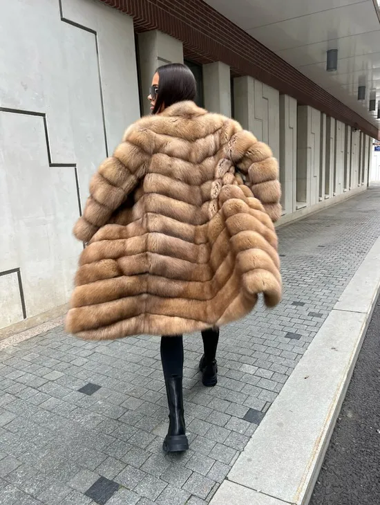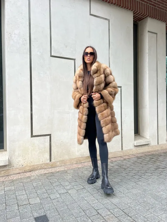 Удлиненный бомбер из меха скандинавской норки с капюшоном на молнии