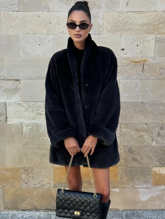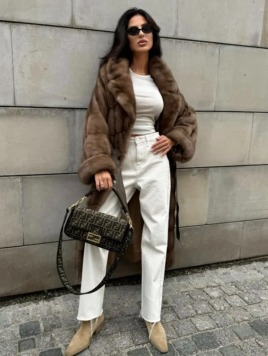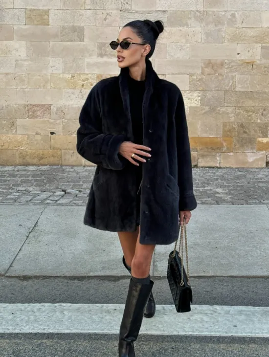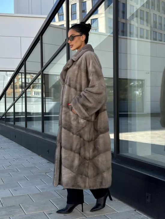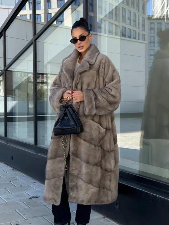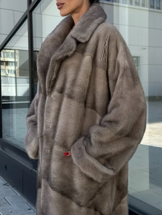 Шуба из меха норки в стиле «Oversize» - цвет сильвер