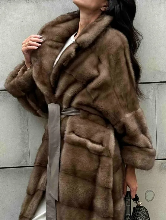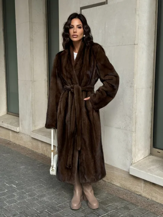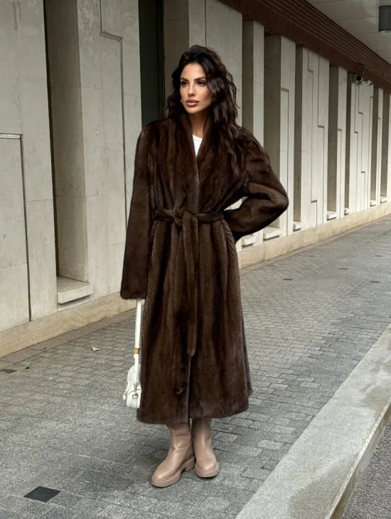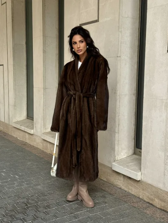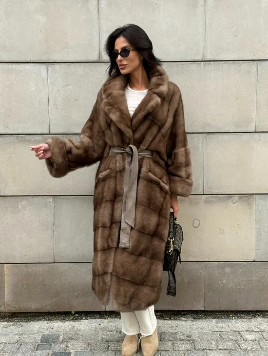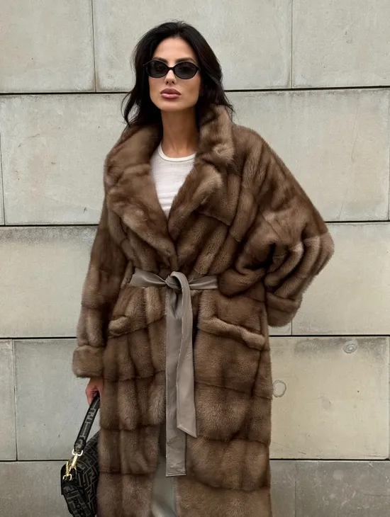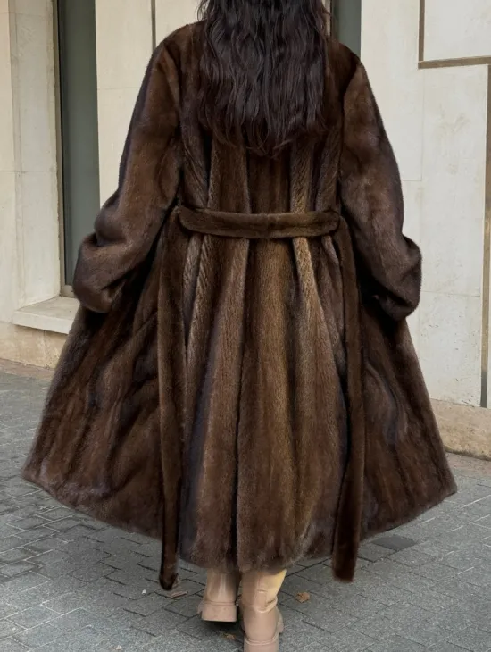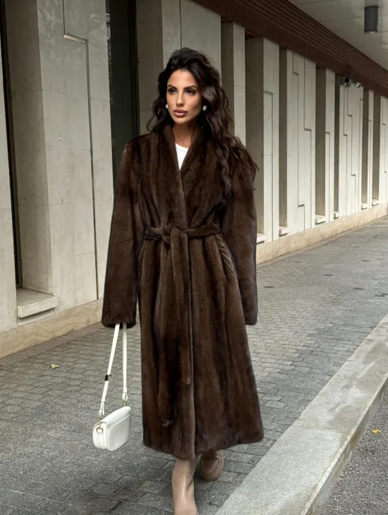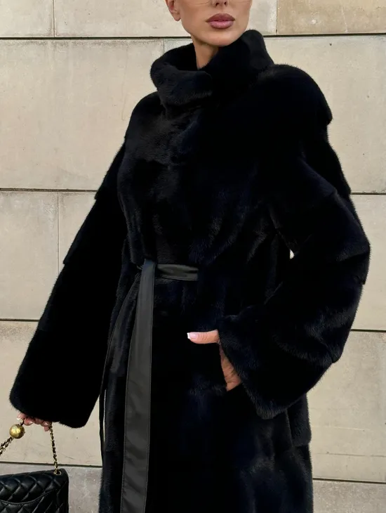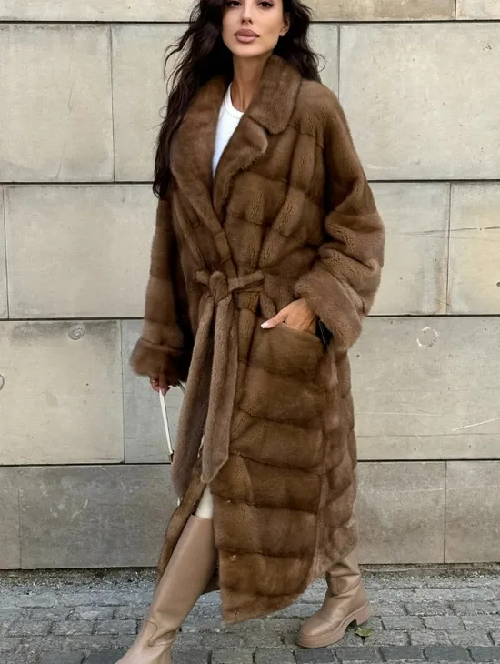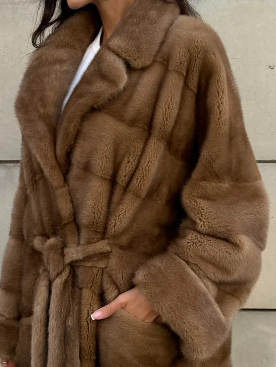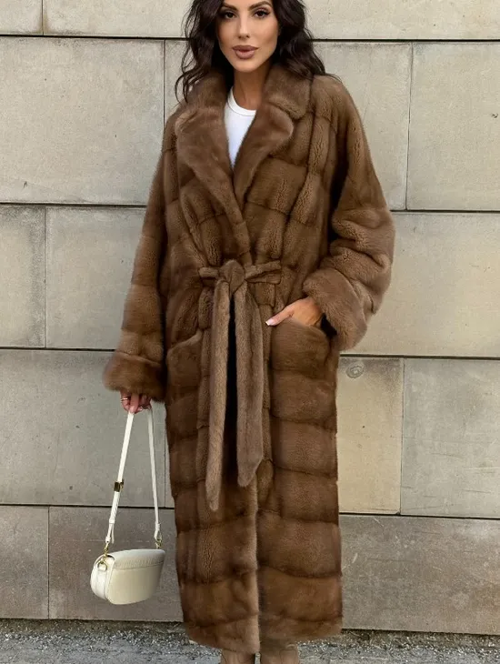 Шуба из меха аукционной норки Vintage Gold с меховым поясом