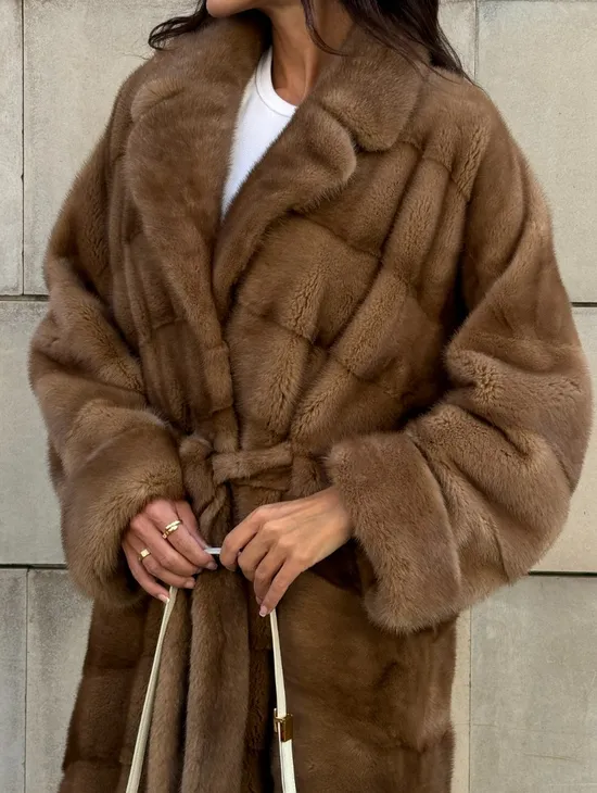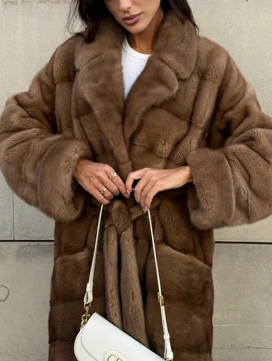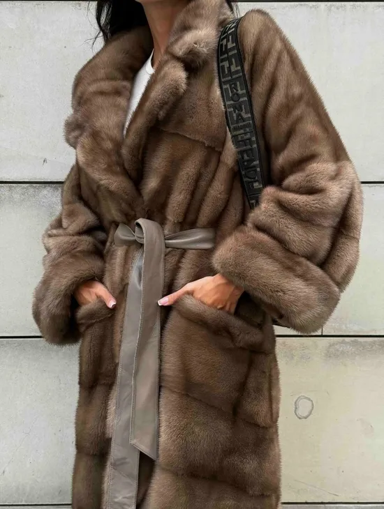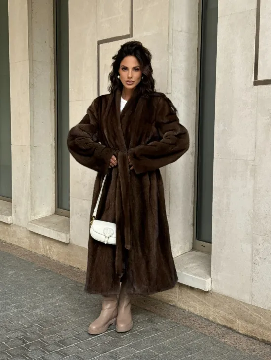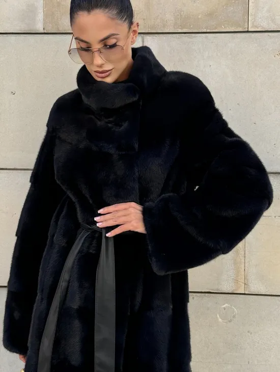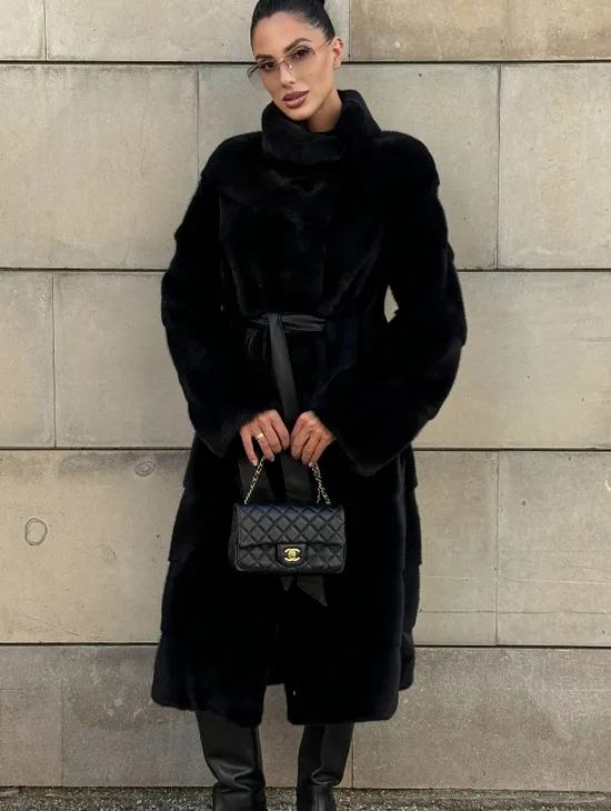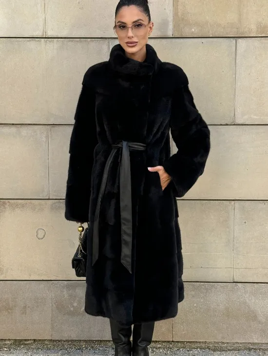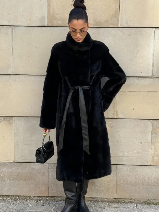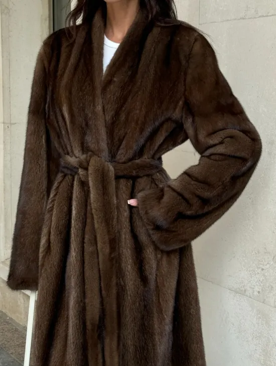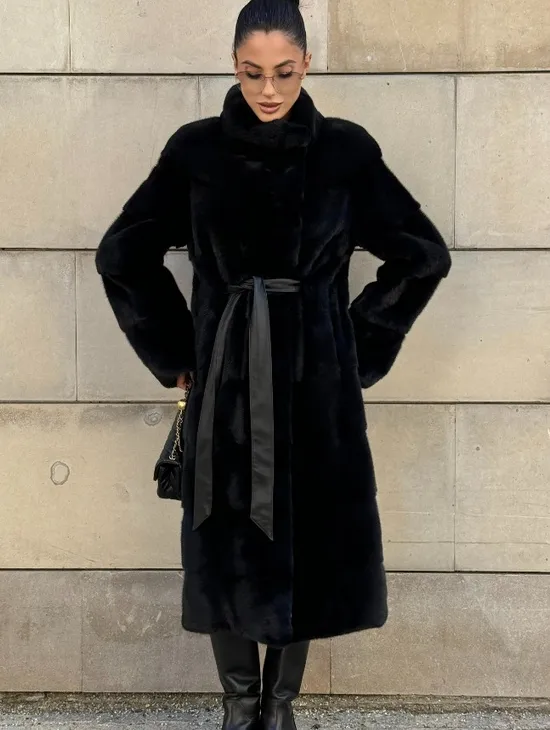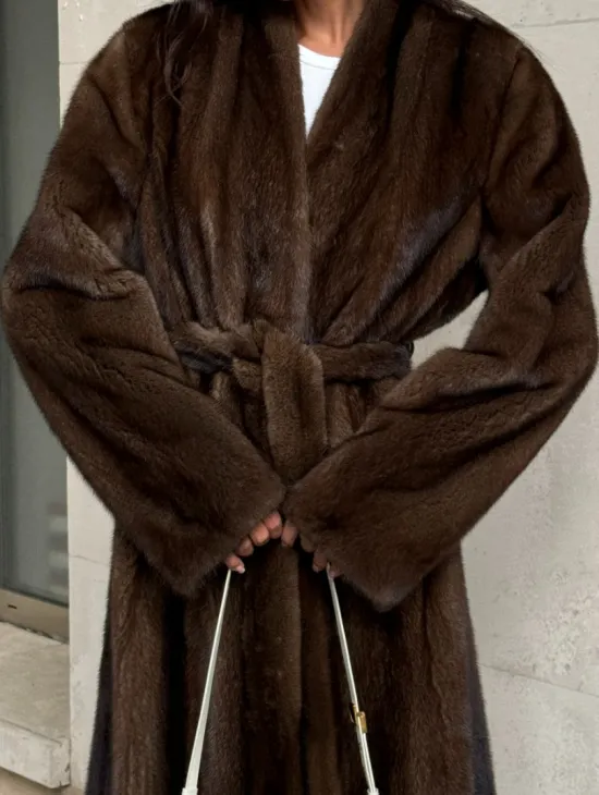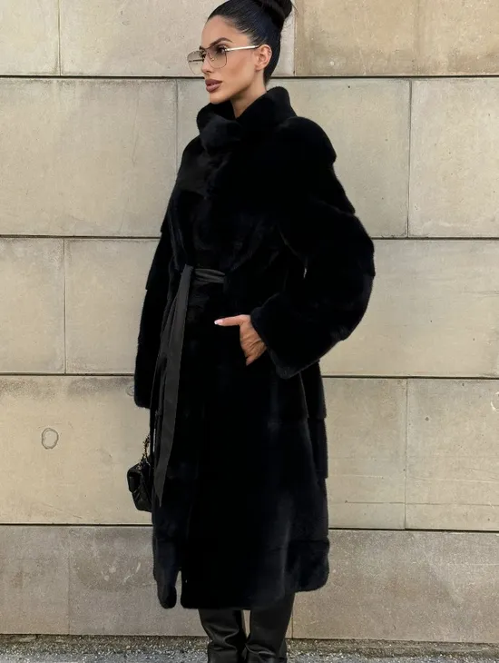 Шуба из меха аукционной норки Vintage Gold с меховым поясом