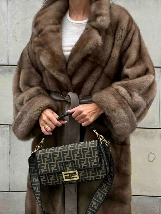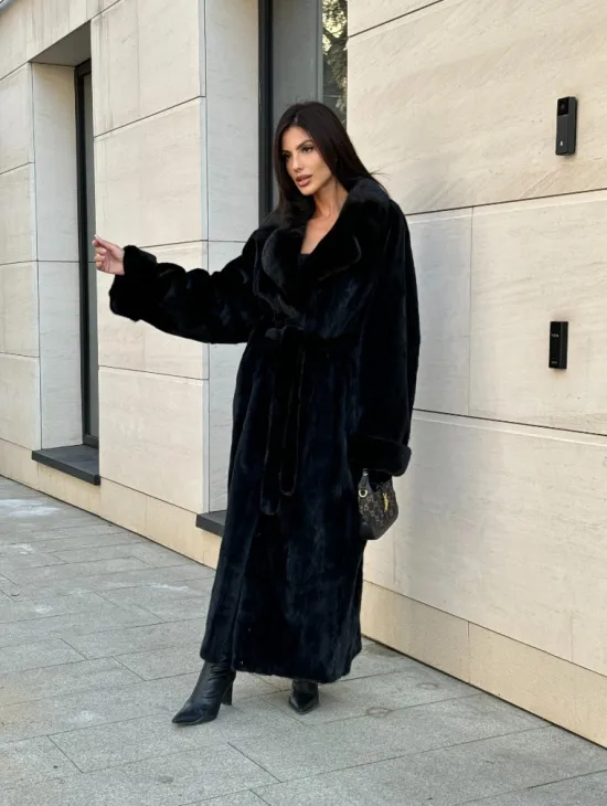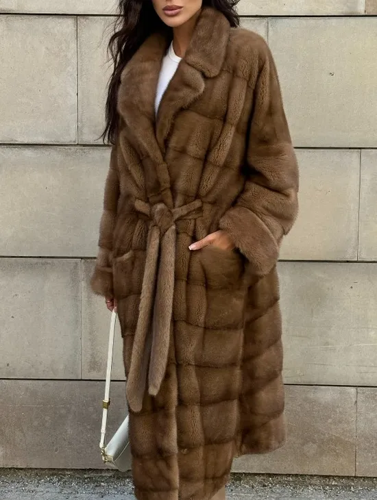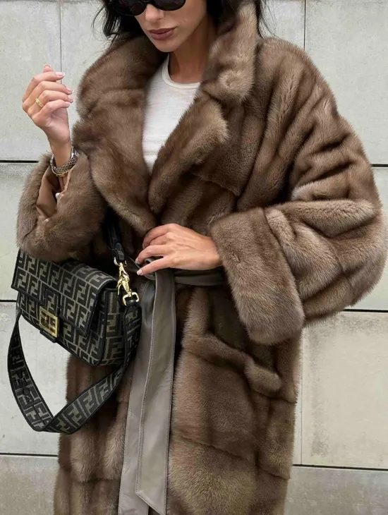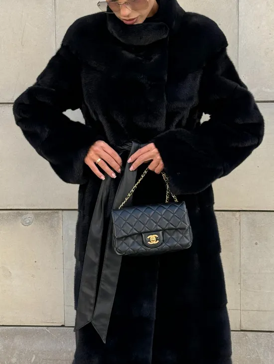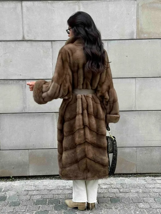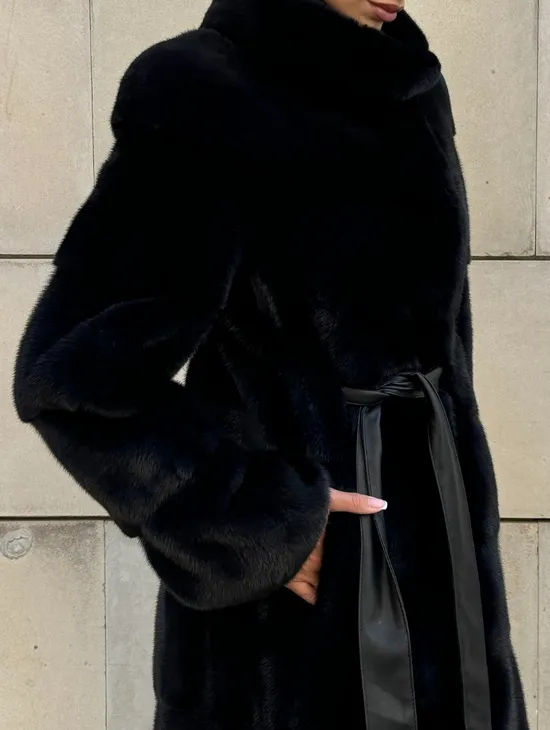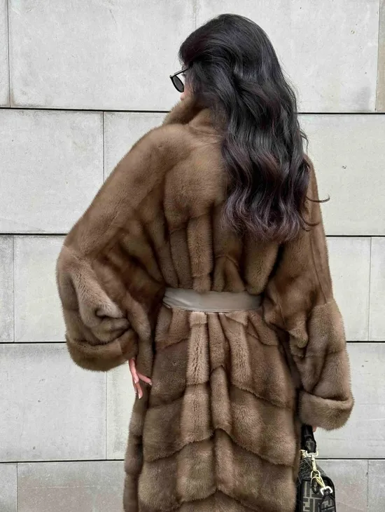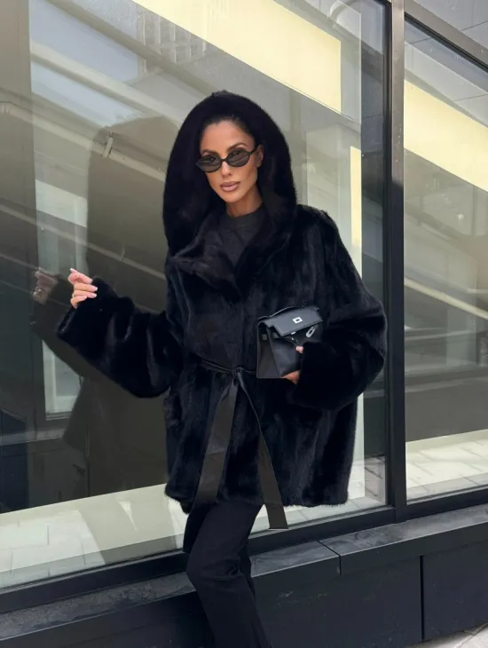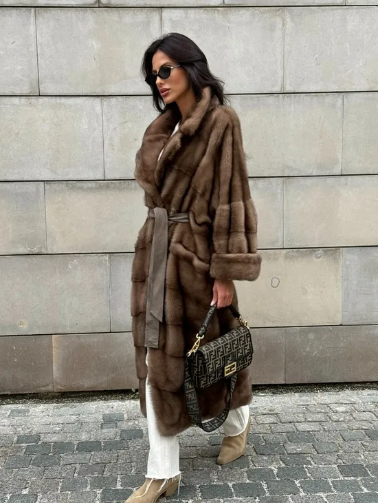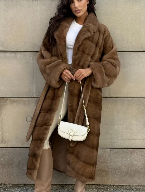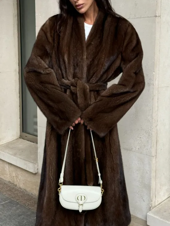 Шуба из меха аукционной норки Vintage Gold с меховым поясом