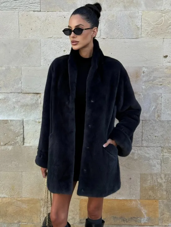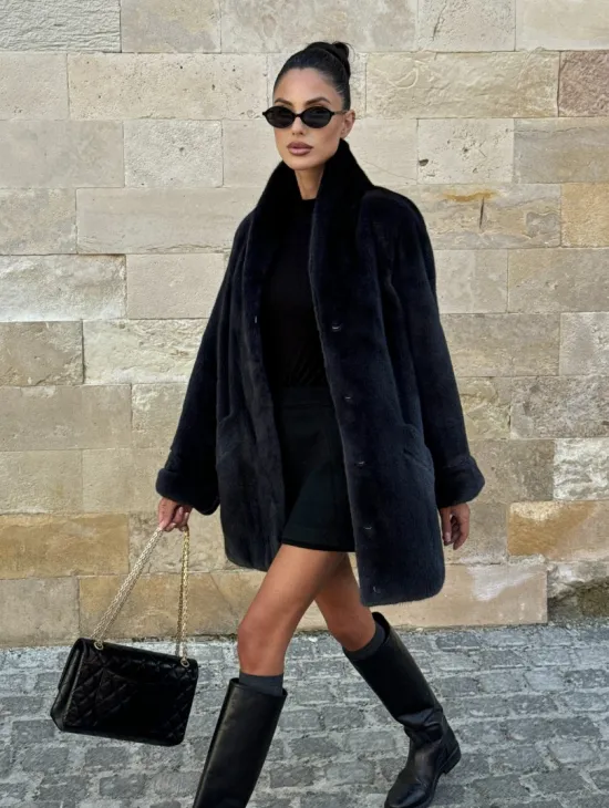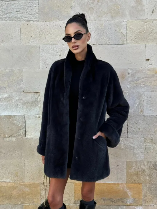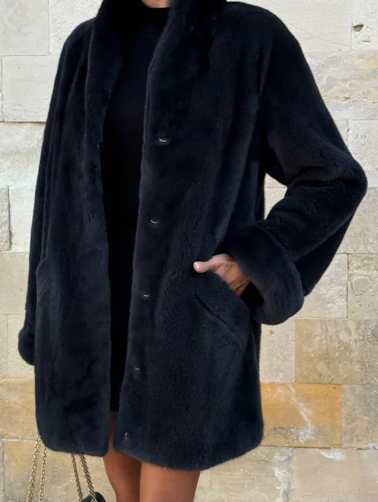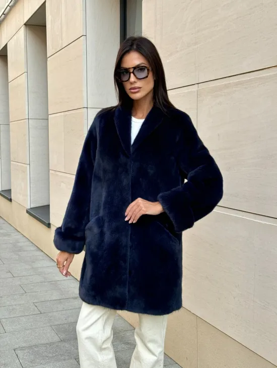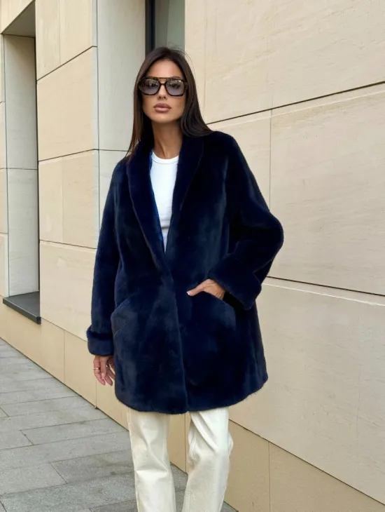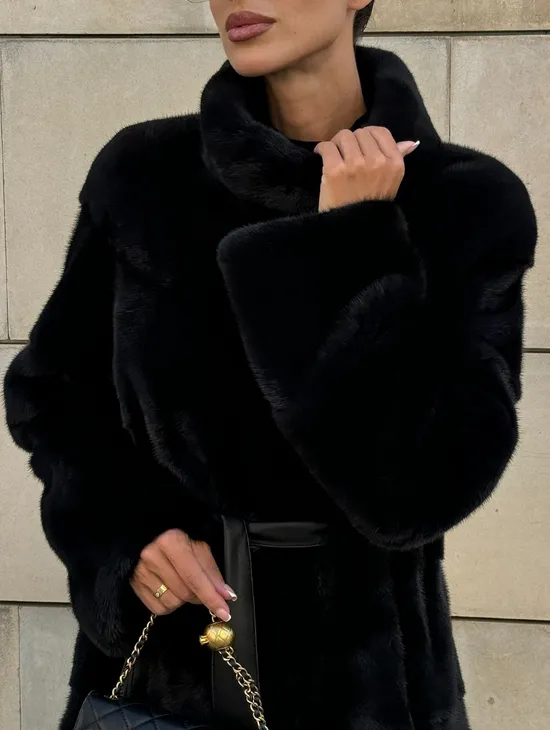 Шуба из скандинавской(плюшевой) норки - стойка воротник